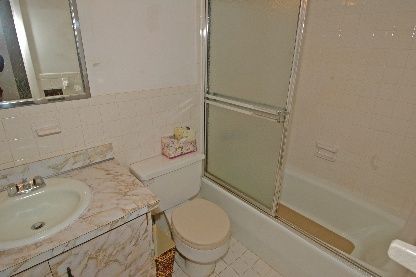 floor plan with master bedroom & bathroom on one side of living room/dining area and