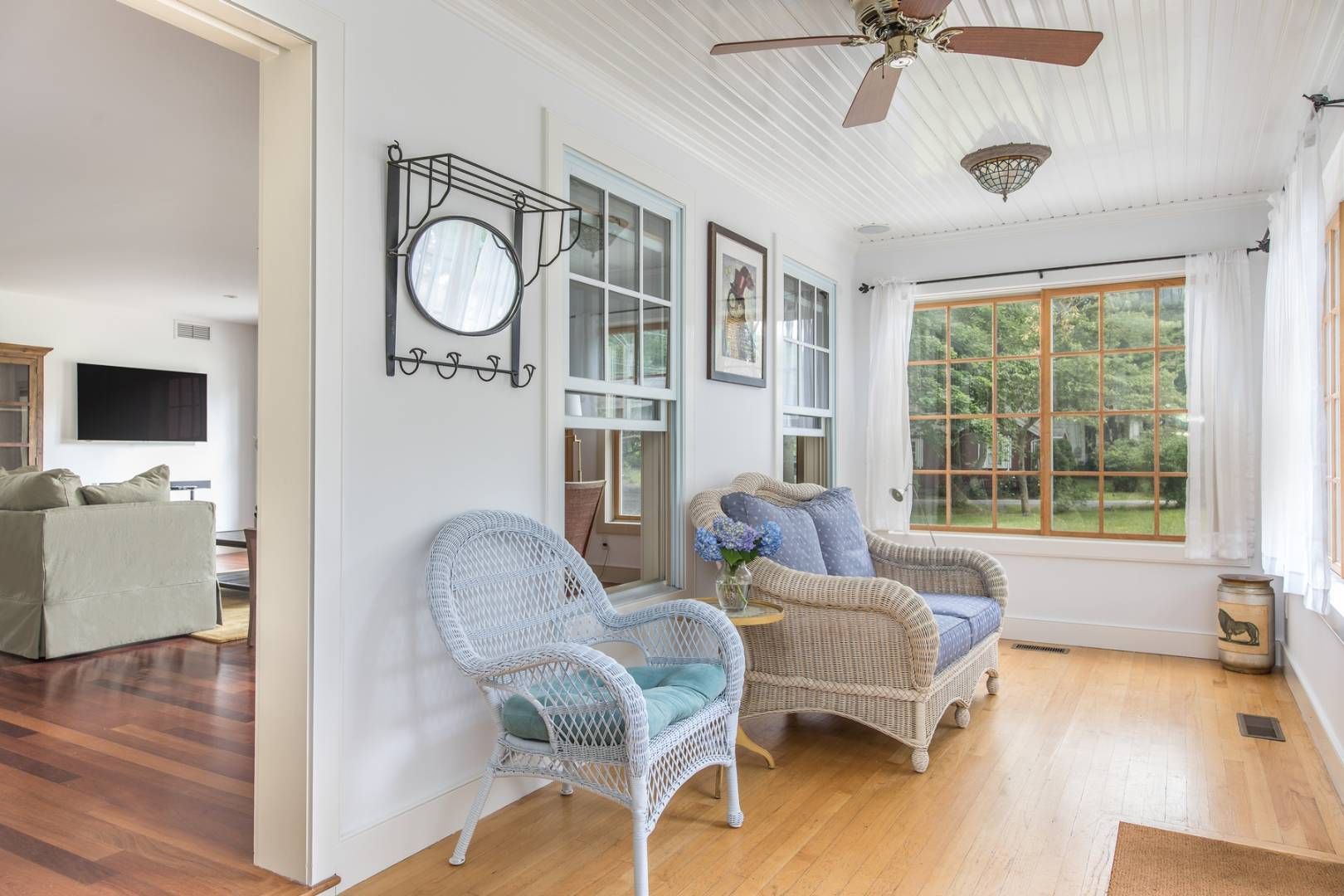 Updated Village home on a quiet street with 3 bedrooms, 21/2 baths, fireplace, central air, wood floors, large living space and great sun porch. Detached garage and large lawn. Close to Havens Beach, Sag Harbor Village and easy access to East Hampton.