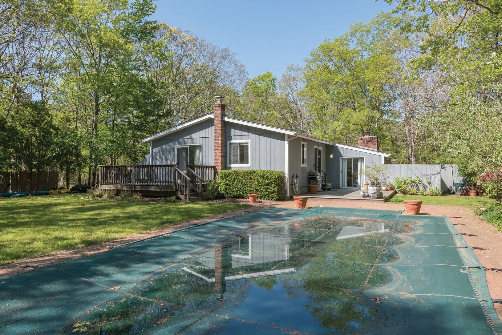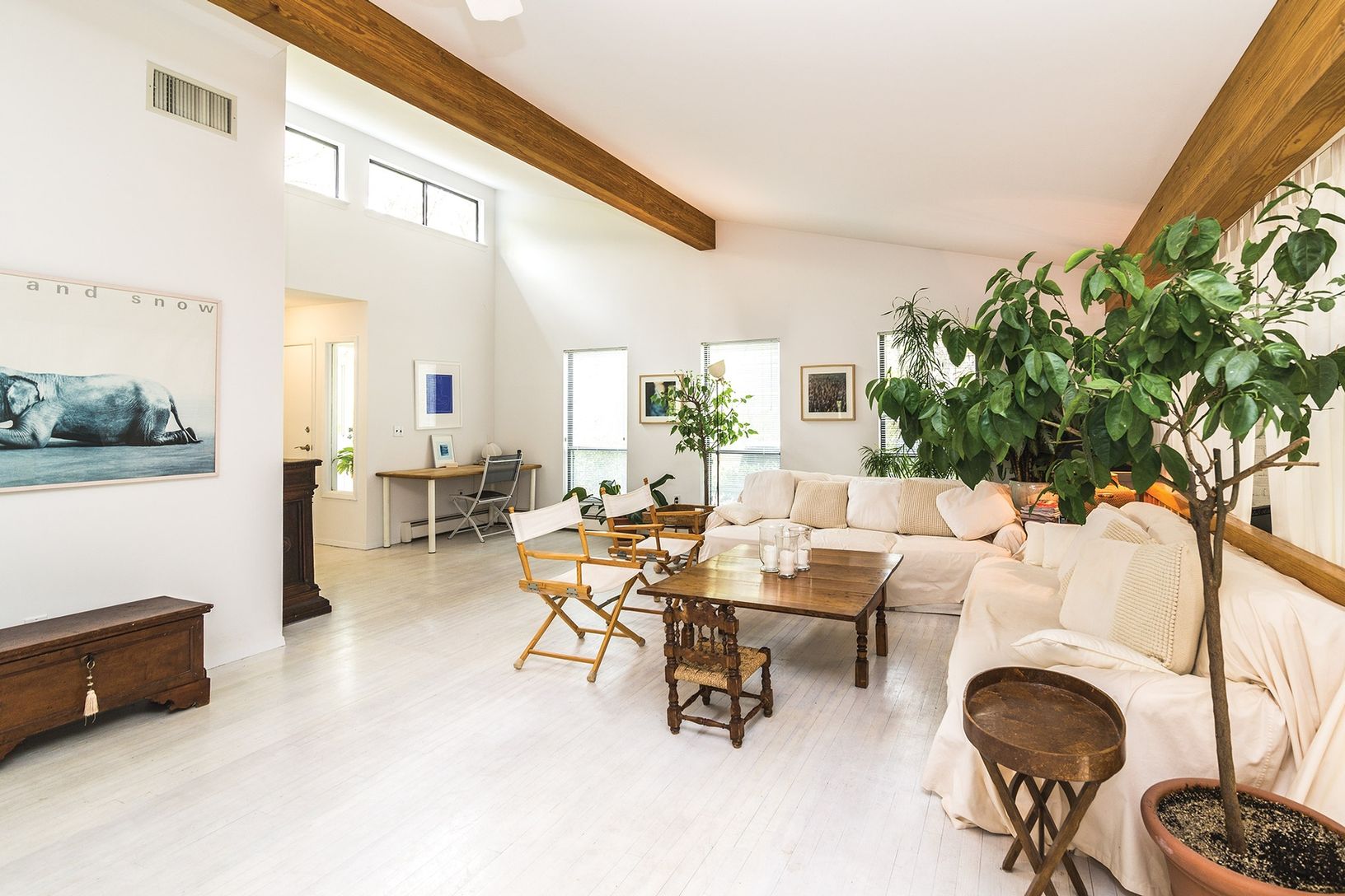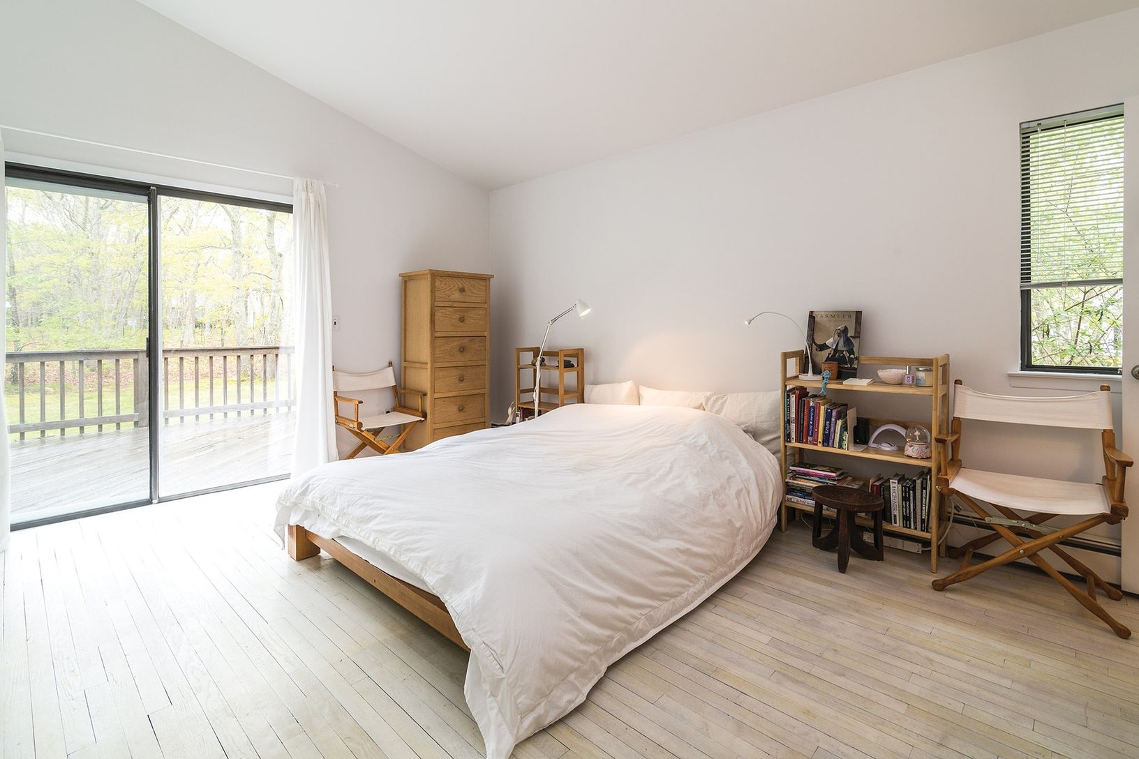 Located on a full acre in East Hampton's Springs, this bright one-level contemporary has everything you need in a free-flowing East End home. Flooded with natural light and with modern amenities, interior features include an open living & dining space with whitewashed hardwood floors and high ceilings, a sleek kitchen with silestone counters and porcelain tile floor, separate sunken den with white brick wood burning fireplace, master suite