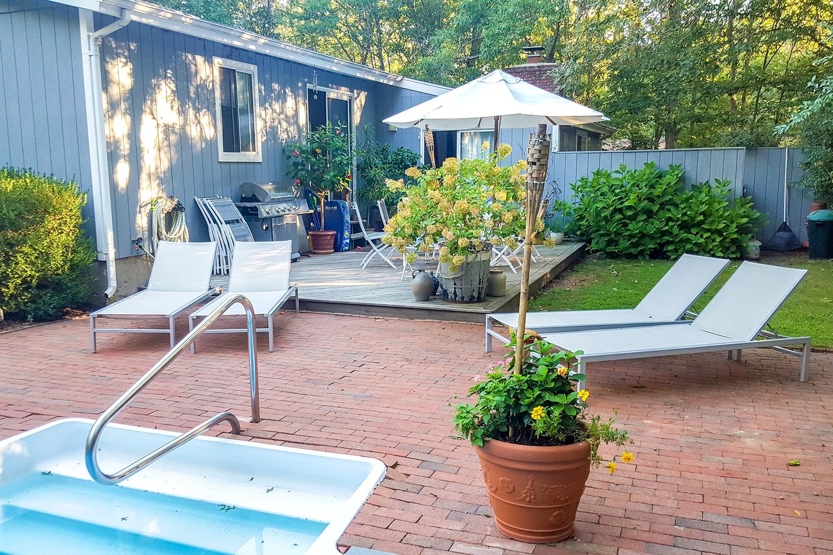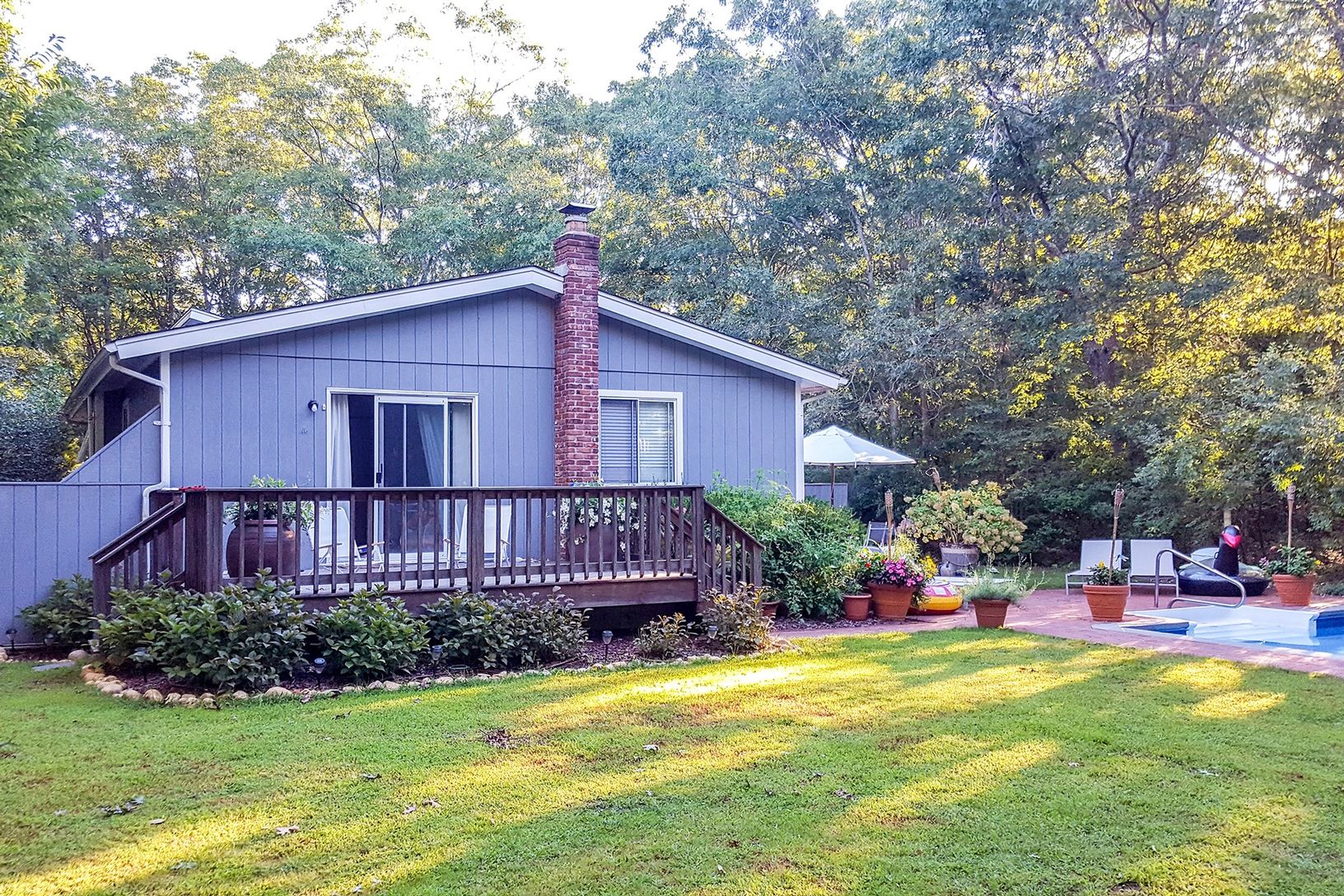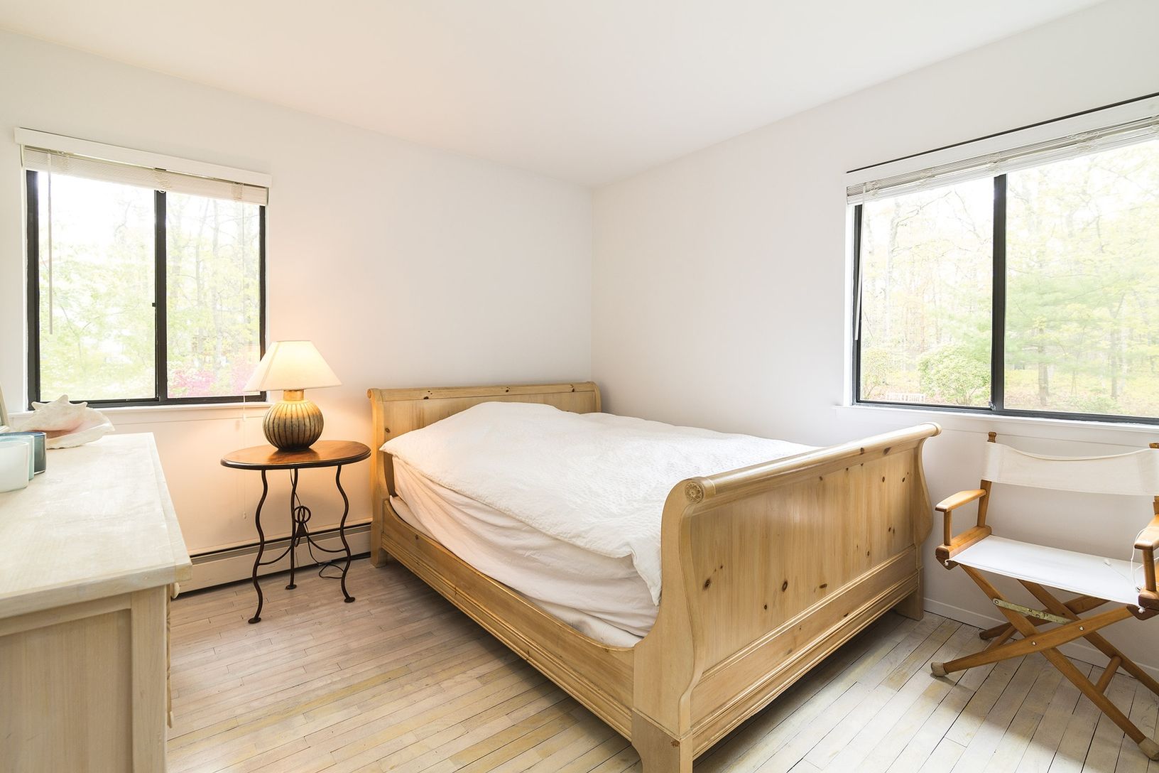 Located on a full acre in East Hampton's Springs, this bright one-level contemporary has everything you need in a free-flowing East End home. Flooded with natural light and with modern amenities, interior features include an open living & dining space with whitewashed hardwood floors and high ceilings, a sleek kitchen with silestone counters and porcelain tile floor, separate sunken den with white brick wood burning fireplace, master suite