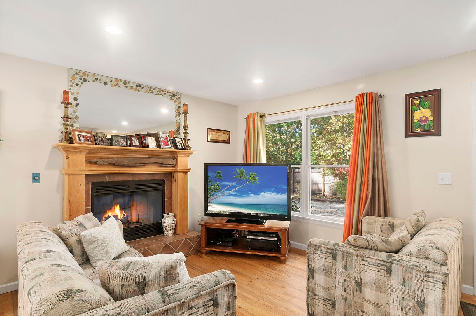 This turn-key home offers four bedrooms and two bathrooms on a private lot set back from the road. The main level has a bright and airy living room with a wood-burning fireplace, central vac, and two bedrooms with a full bathroom. The second level has two large bedrooms and a full bathroom. Room for pool.