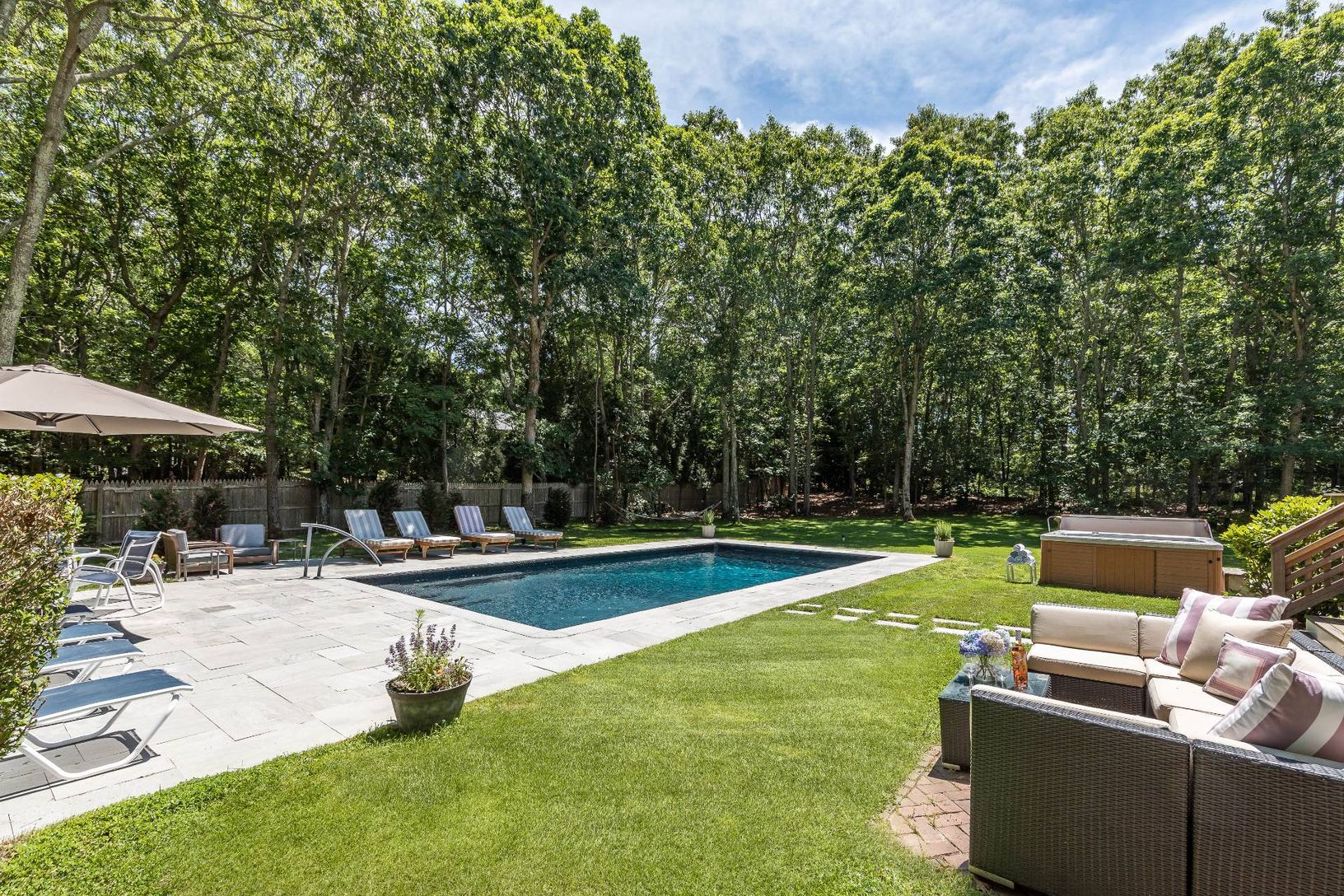 This three bedroom, two bath, located in the heart of East Hampton is the perfect home to boost your next vacation from fine to fantastic. With multiple living spaces, spacious bedrooms, and a fully stocked kitchen, this home is an entertainers dream. The living and dining area flows seamlessly into the carefully maintained backyard. Awaiting you is a large mahogany deck with a grill perfect for hot dogs and burgers. Jump into pool and enjoy a