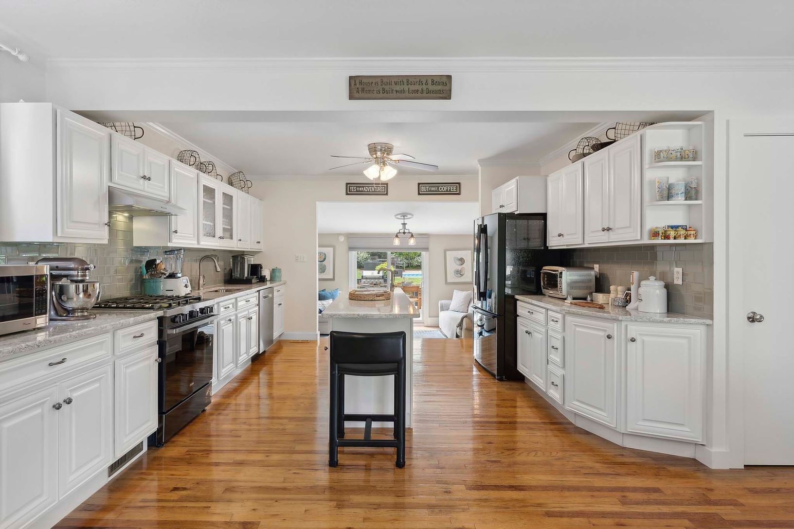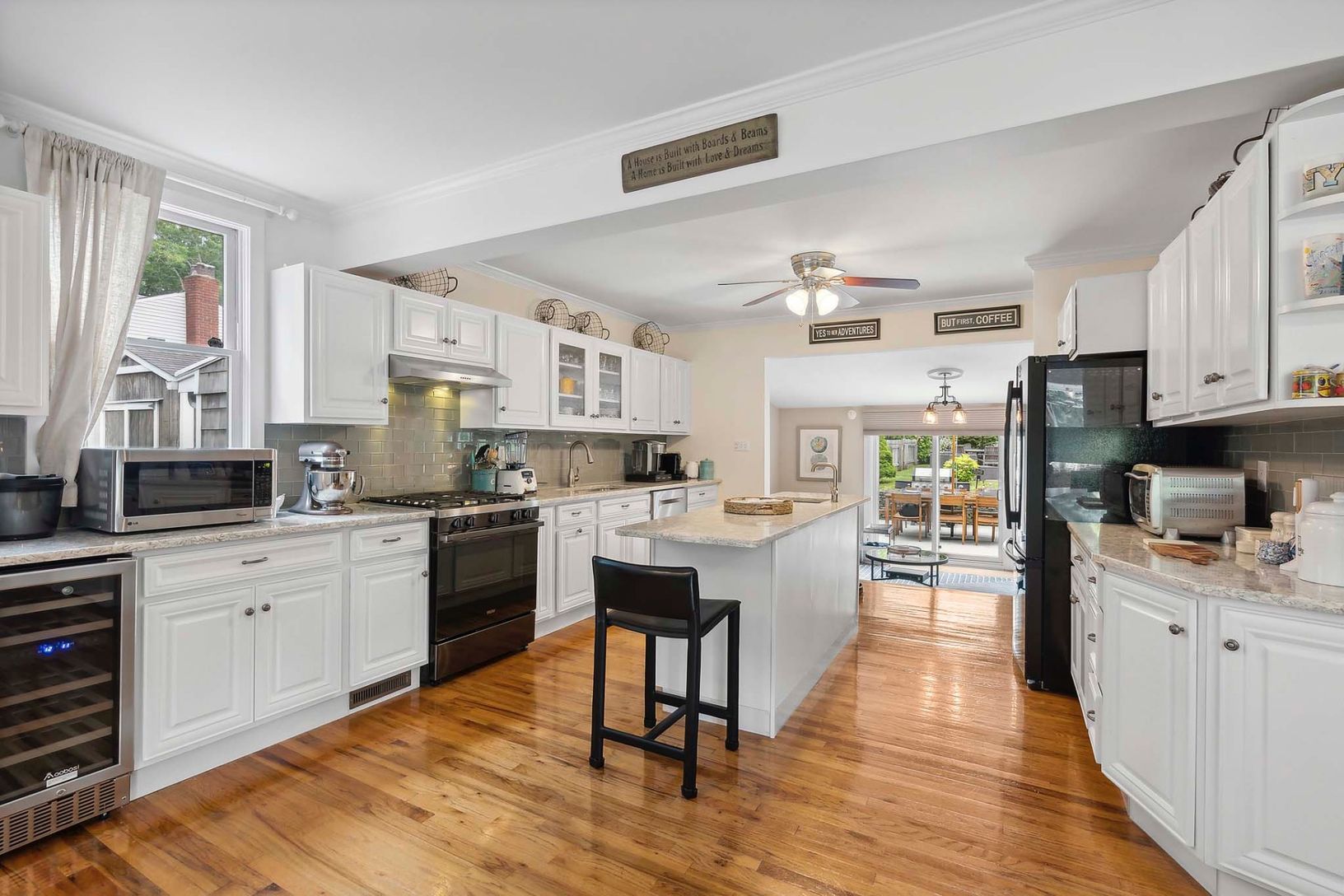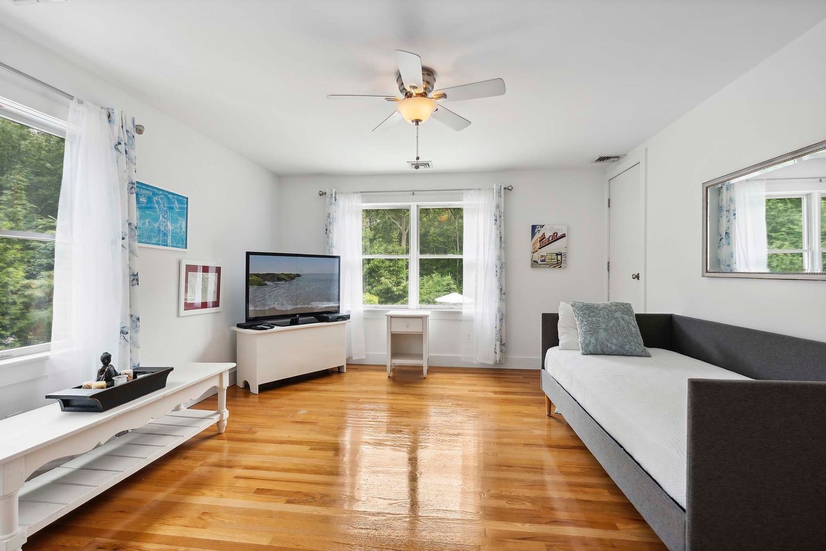 Just moments outside of the Village of Sag Harbor and up the road from Long Beach, this 4 bedroom beach house is new to the rental market. The main level of the home is centered upon the updated chef's kitchen which is spacious and well equipped. Flanking the kitchen is an open dining area and den and secondary living room. The main floor has a private en suite guest room, second bedroom and full bathroom. Upstairs there is a third bedroom and