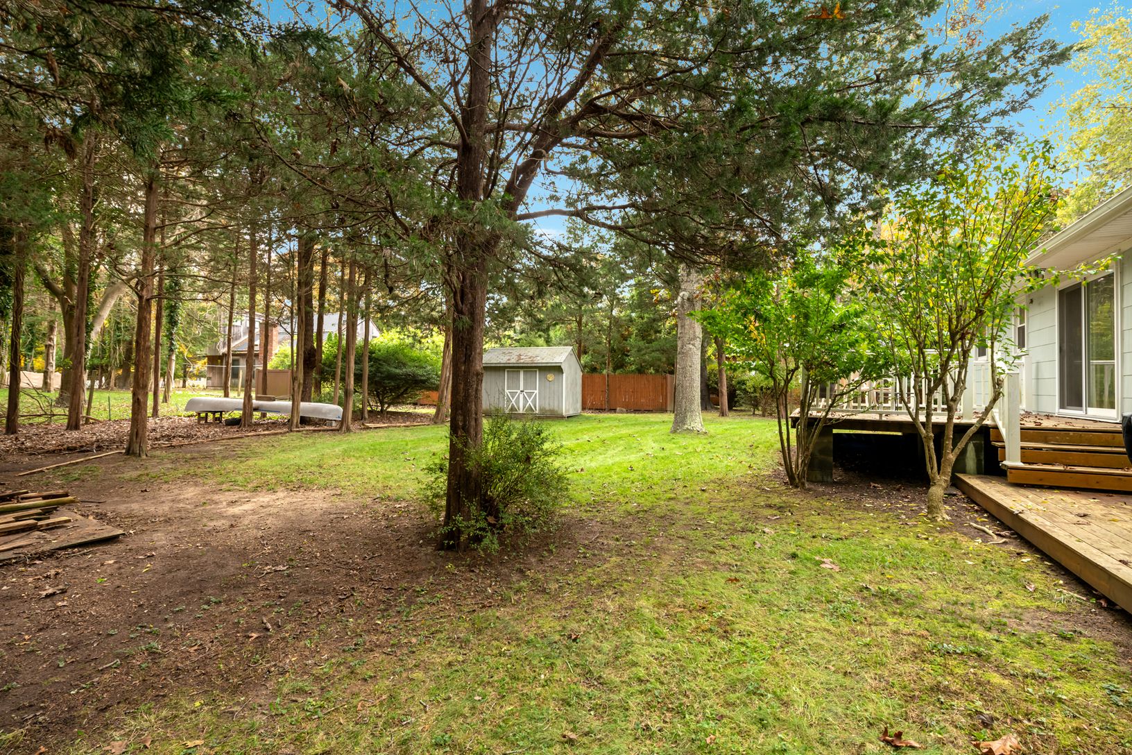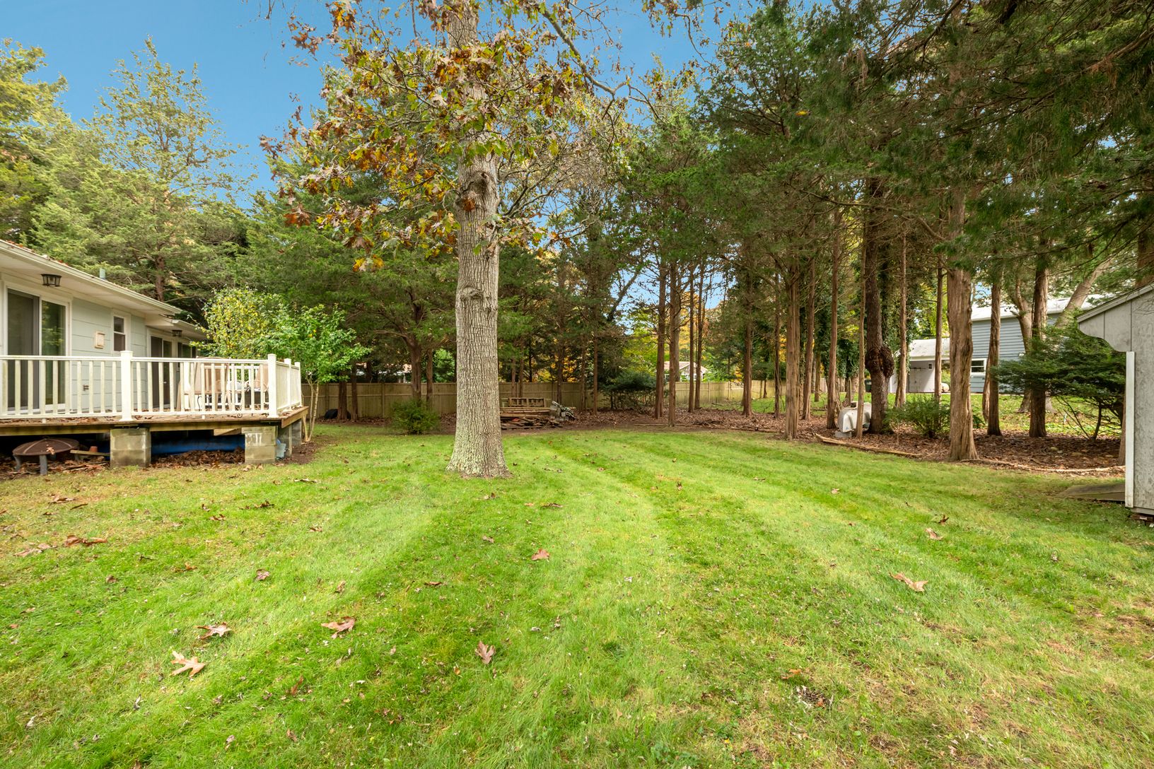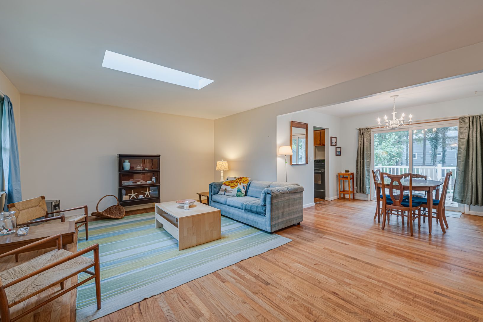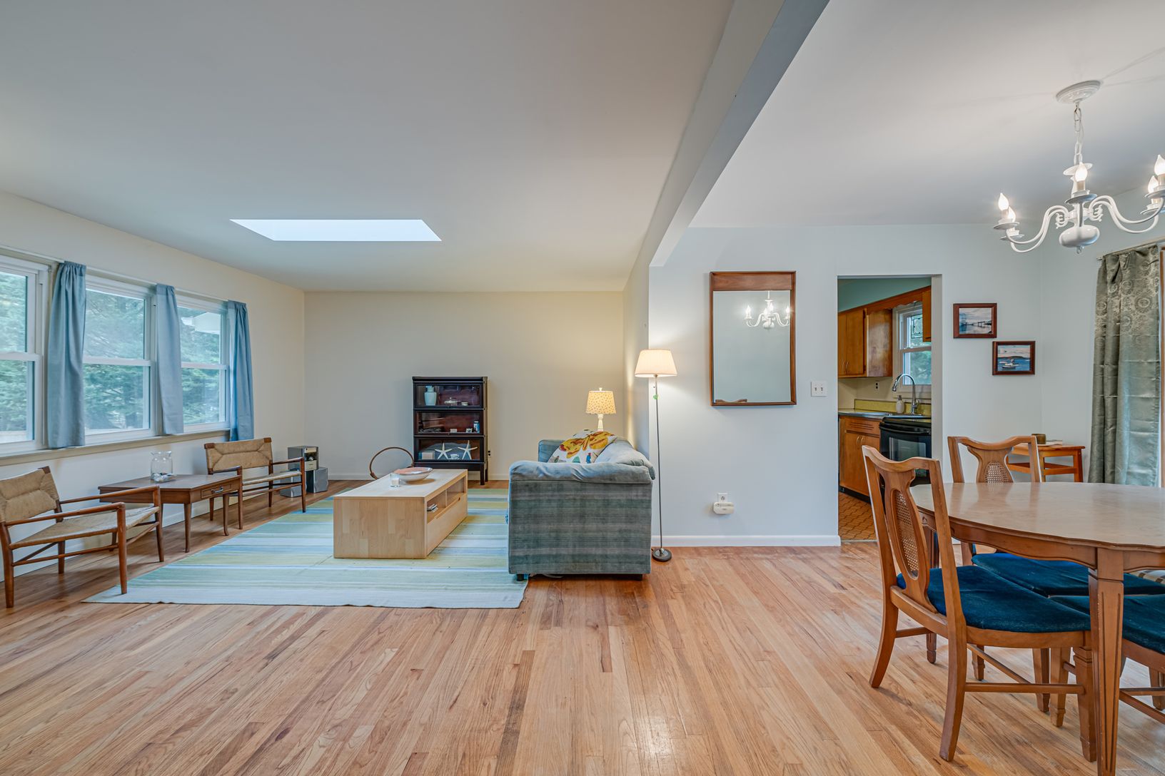 Well-cared for and maintained 1960's one-level home that presents an ideal, clean home for seasonal or year-round living in the heart of East Hampton Springs' Clearwater Beach Association. Features include a front living room with skylight and open dining space, separate kitchen with plenty of storage, master bedroom with its own renovated bath, three additional guest bedrooms and two more full baths. Glass sliding doors lead to the rear woode