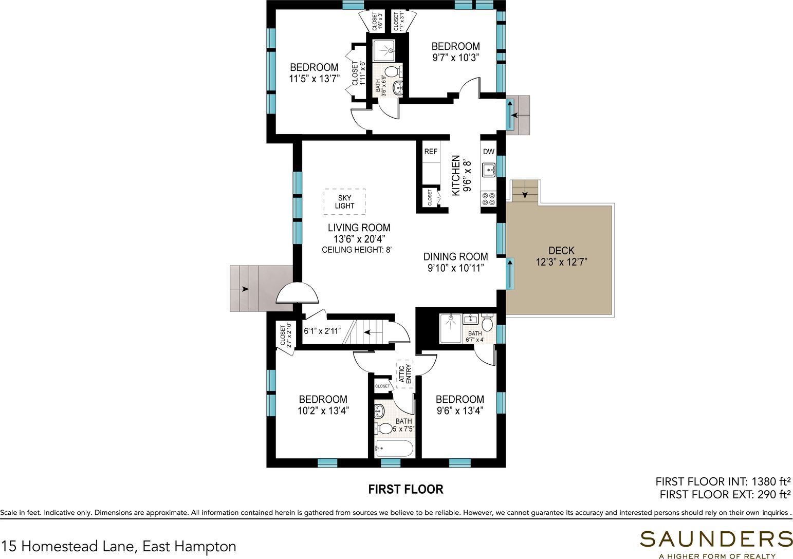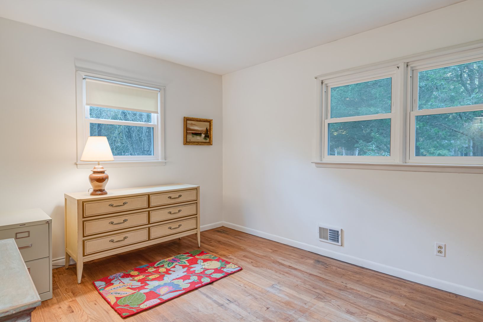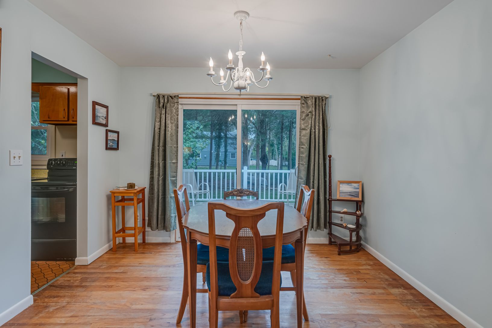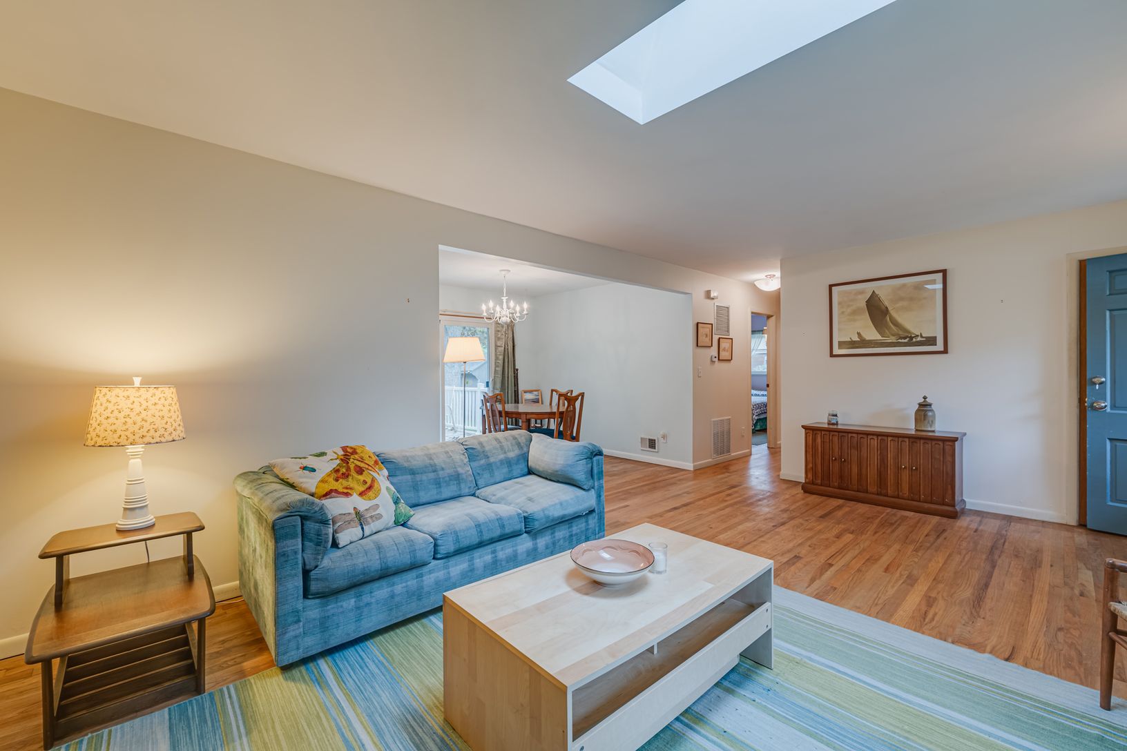 Well-cared for and maintained 1960's one-level home that presents an ideal, clean home for seasonal or year-round living in the heart of East Hampton Springs' Clearwater Beach Association. Features include a front living room with skylight and open dining space, separate kitchen with plenty of storage, master bedroom with its own renovated bath, three additional guest bedrooms and two more full baths. Glass sliding doors lead to the rear woode