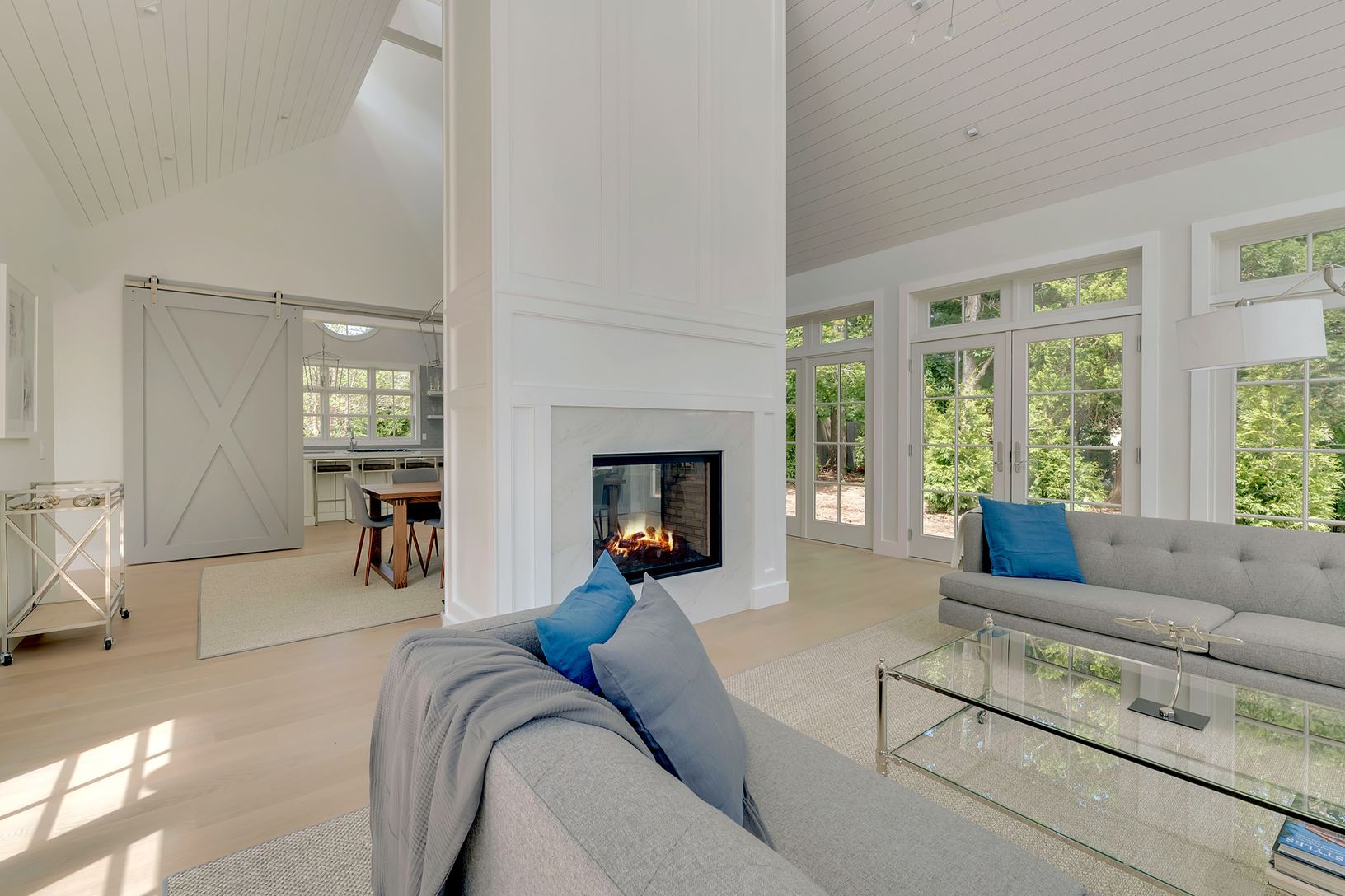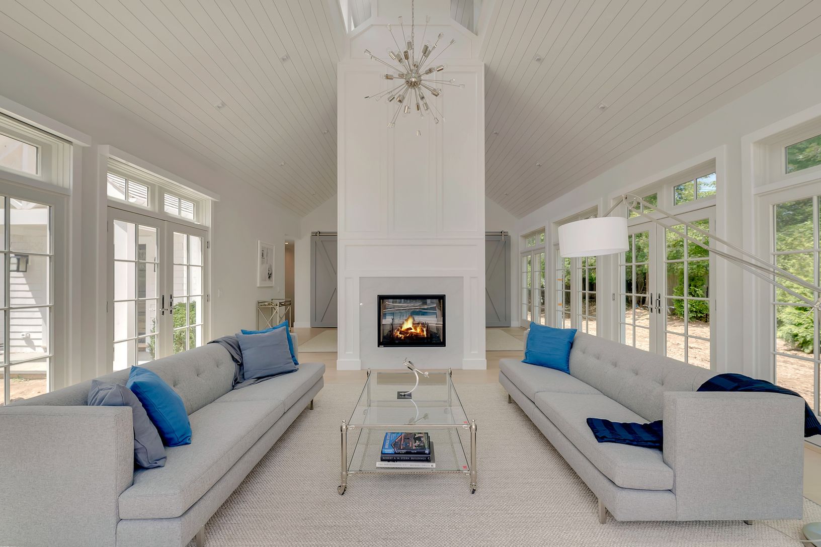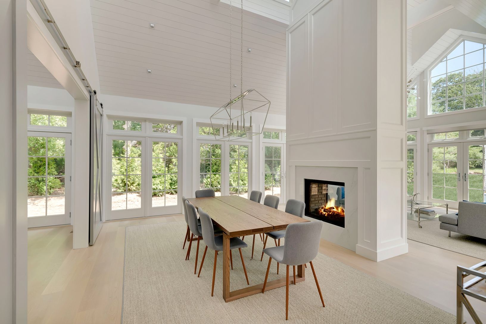 Welcome to Jericho Farm, a brand new home south-of-the highway in East Hampton! Bright and brand new, features include 5 bedrooms, 5 full and two half baths, and spectacular entertaining spaces throughout. The main level boasts a master suite with separate office, guest bedroom suite, and a spectacular gourmet eat-in kitchen, dining area and great room with double sided fireplace, soaring ceilings and walls of glass. The lower level feature