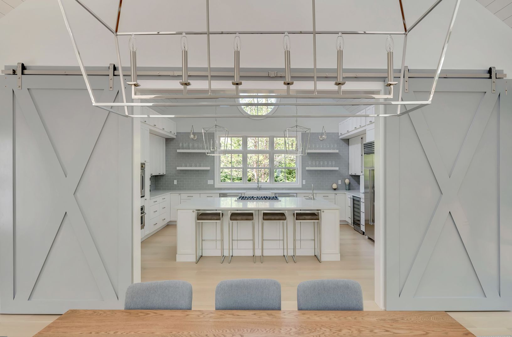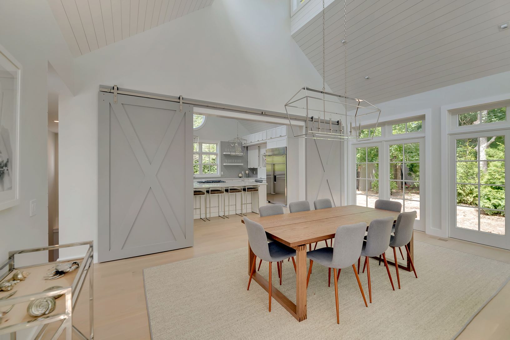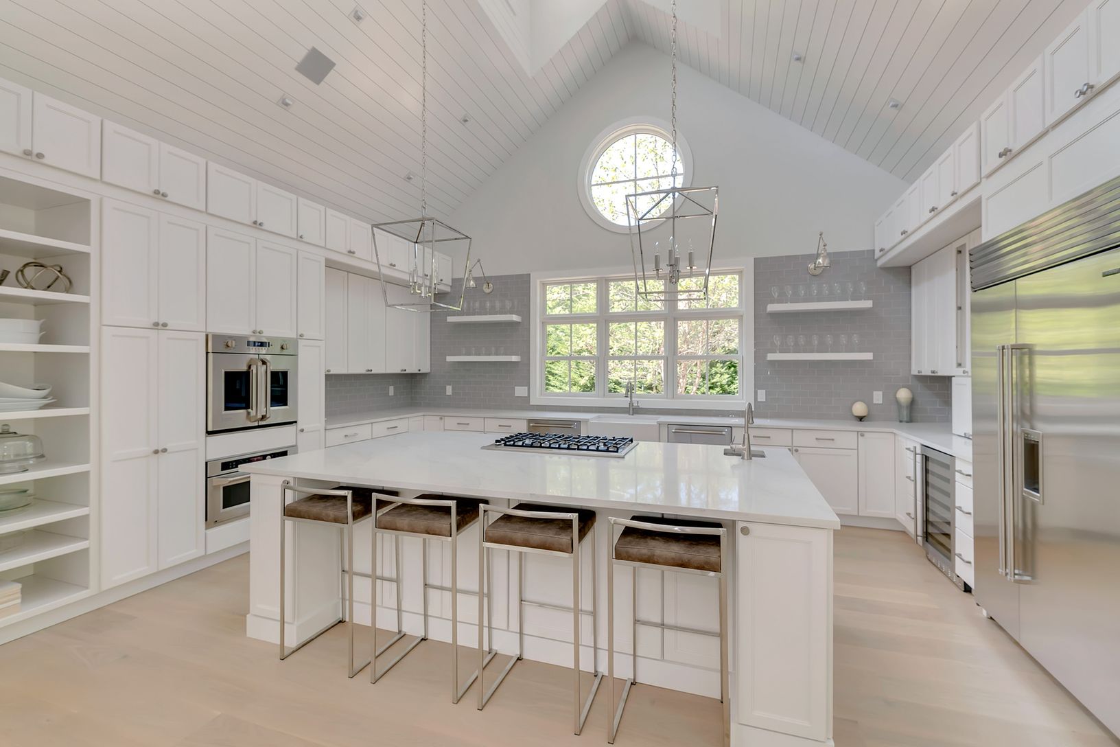 Welcome to Jericho Farm, a brand new home south-of-the highway in East Hampton! Bright and brand new, features include 5 bedrooms, 5 full and two half baths, and spectacular entertaining spaces throughout. The main level boasts a master suite with separate office, guest bedroom suite, and a spectacular gourmet eat-in kitchen, dining area and great room with double sided fireplace, soaring ceilings and walls of glass. The lower level feature