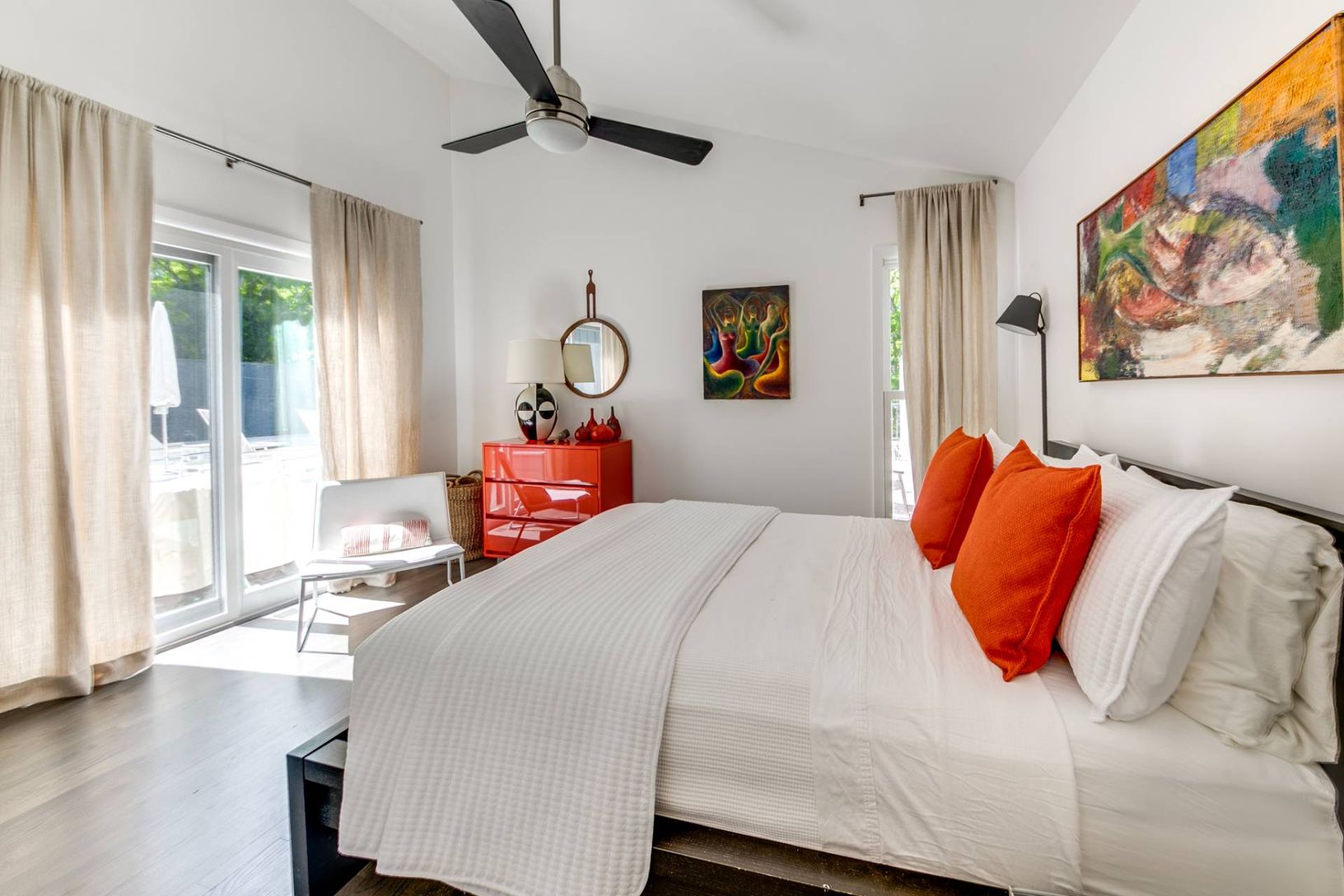 Tucked away in the serene near northwest of East Hampton, this recently renovated 3-bedroom, 3-bath contemporary offers a seamless blend of modern design and natural light. Bright, lofty interiors create an inviting atmosphere, with soaring ceilings, clean lines, and expansive windows that bring the outdoors in. The open-concept living space flows effortlessly from a sleek kitchen with updated appliances to a spacious dining and living area, p