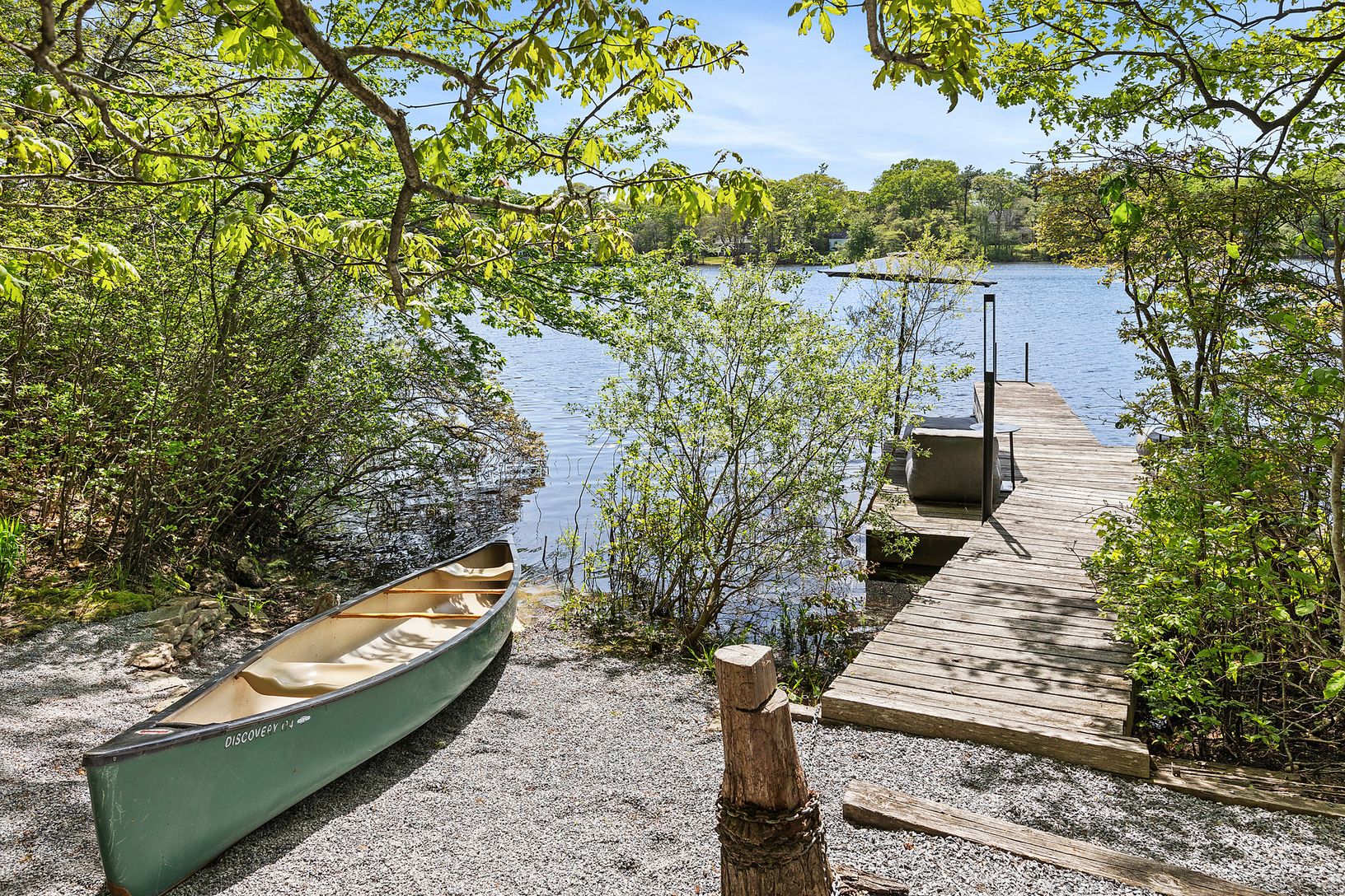 Explore the water by canoe or paddle board - provided by owner. Sit back and sunbath on the dock, or dine al fresco on the deck - your outdoor adventures await you here this summer! Plush outdoor couches welcome you to unwind in the shade, while sun-kissed water will call you to the dock. At night,
