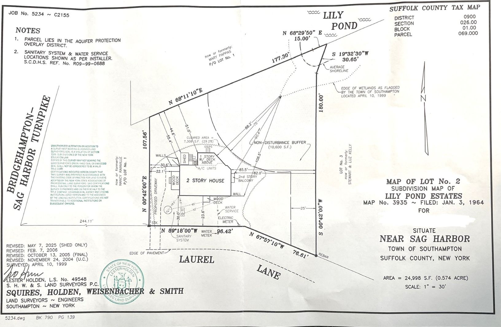 Perfect Location on Lily Pond in Sag Harbor, close to the exact middle of The Hamptons, moments from the year round village. Idyllic views from all three levels of Lily Pond. Room for a pool, garage, pool house (zoning analysis in hand), and a dock is approved. Greeted by the 28' entrance with balcony, floating fireplace, and steps down to the country kitchen with radiant heated floors. Stainless appliances, Corian Kitchen & Bar. The main