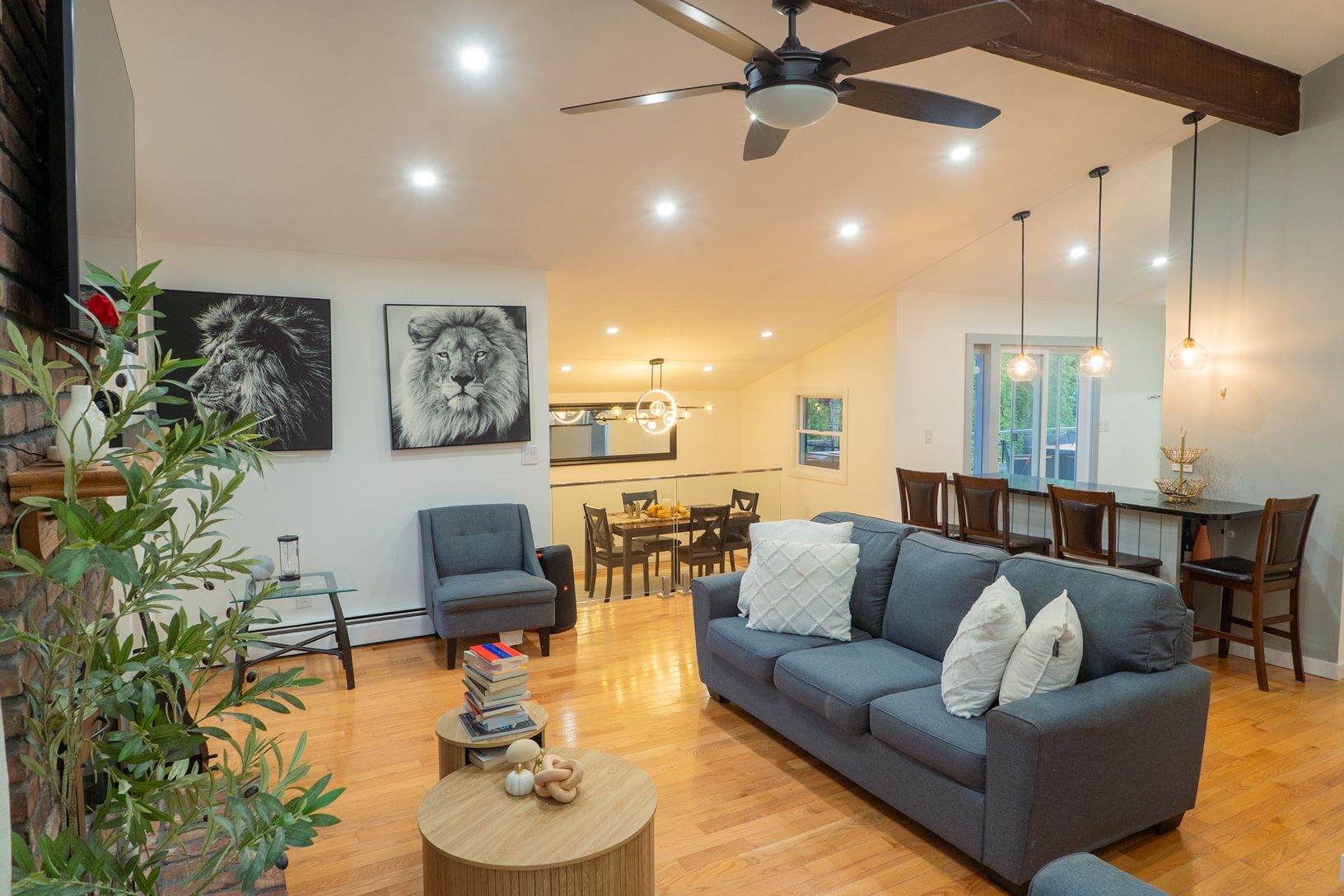 Slip into summer in this sleek, fully refreshed contemporary—where clean lines, luxe finishes, and effortless indoor-outdoor living set the tone. This 4-bedroom, 3-bath retreat features an airy open-concept layout with a designer kitchen, recessed dining area, and a stunning living room anchored by a cozy fireplace. Escape to your own private oasis—lushly wrapped in a privet hedge for total seclusion. Enjoy a sparkling pool, spa, expansive wra