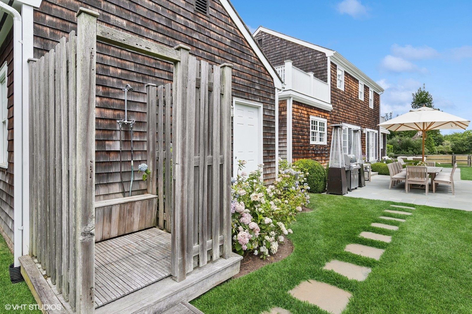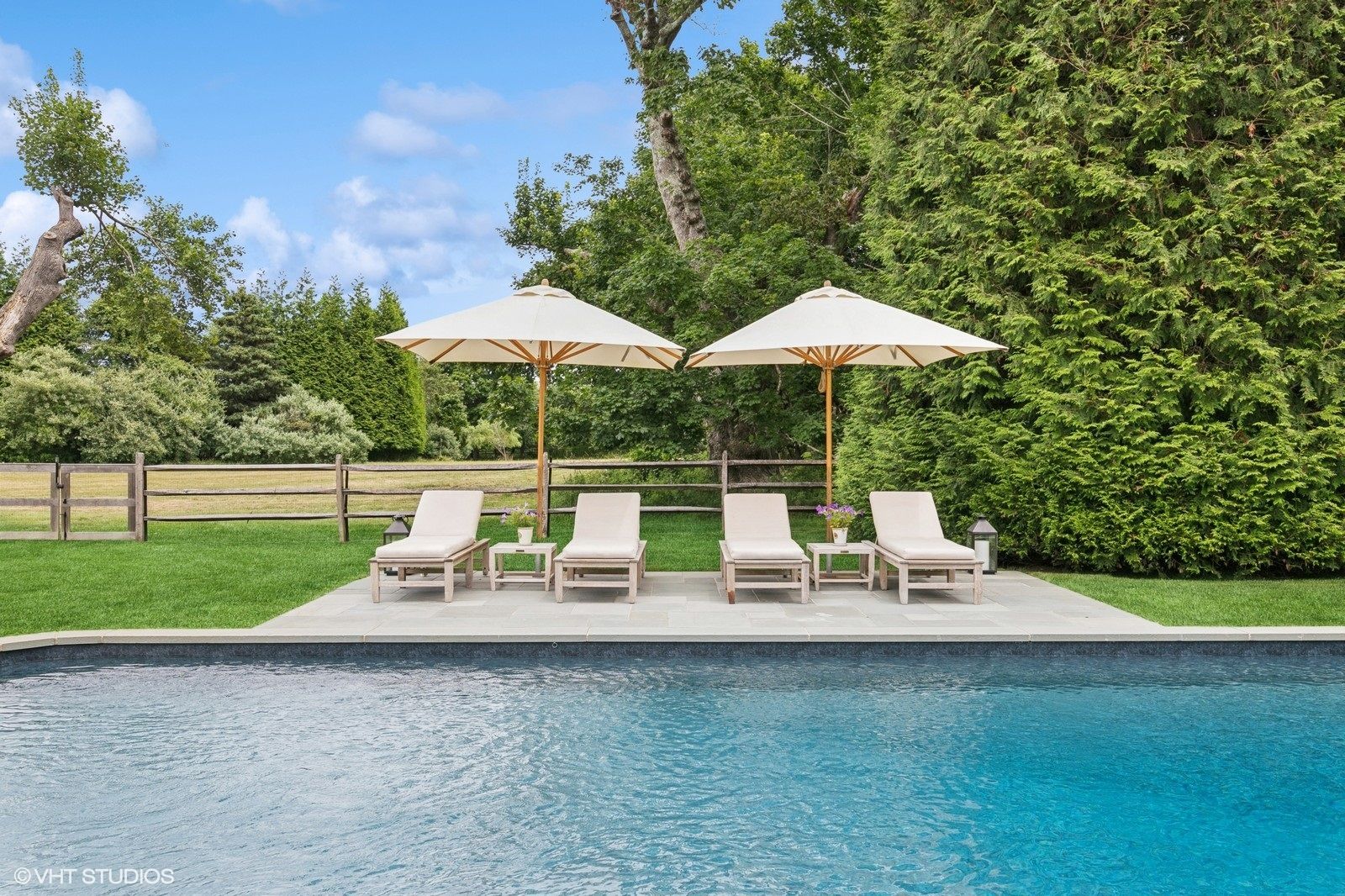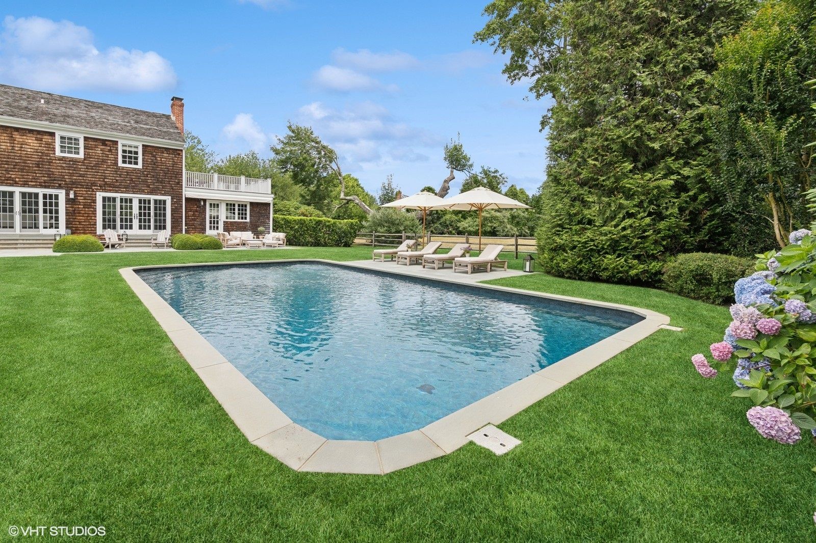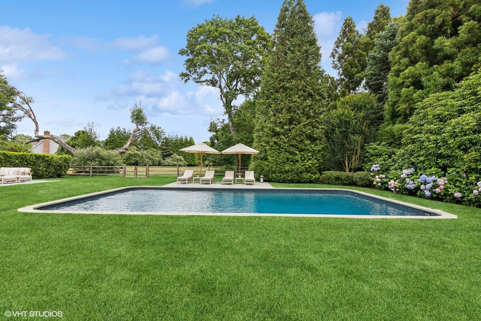 Discover an elevated Bridgehampton summer retreat set within a quiet, sought-after enclave marked by a charming covered bridge and a postcard-perfect pond. This beautifully furnished four-bedroom residence sits on a flat, fully cleared half-acre+, offering three-and-a-half baths, a heated pool, and multiple outdoor spaces designed for seamless al fresco living. Indoors, the spaces connect with purpose and style: a living room with fireplace, a