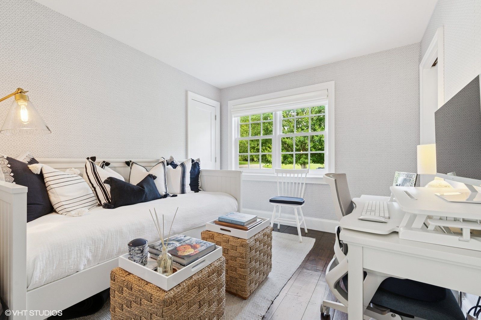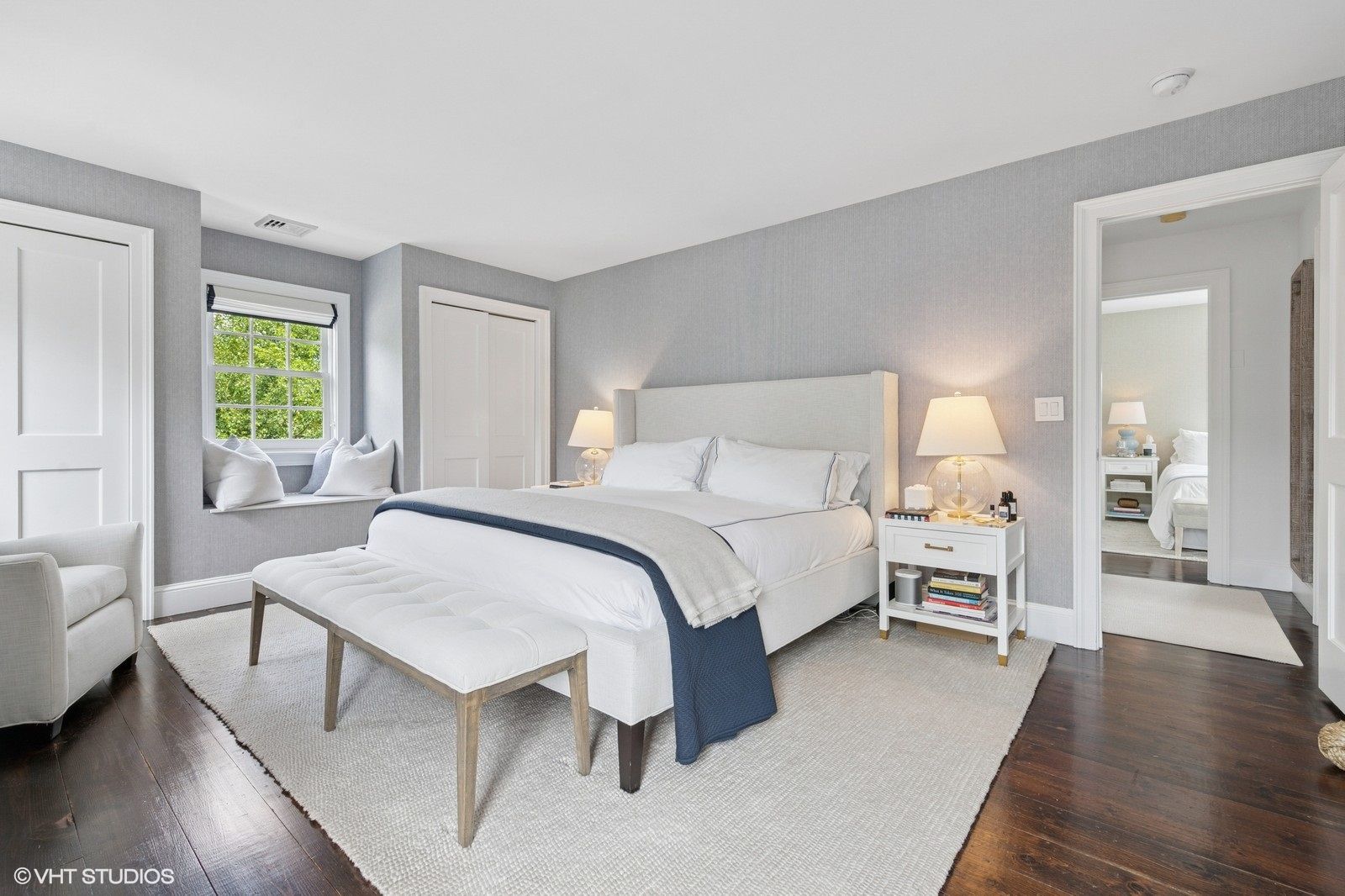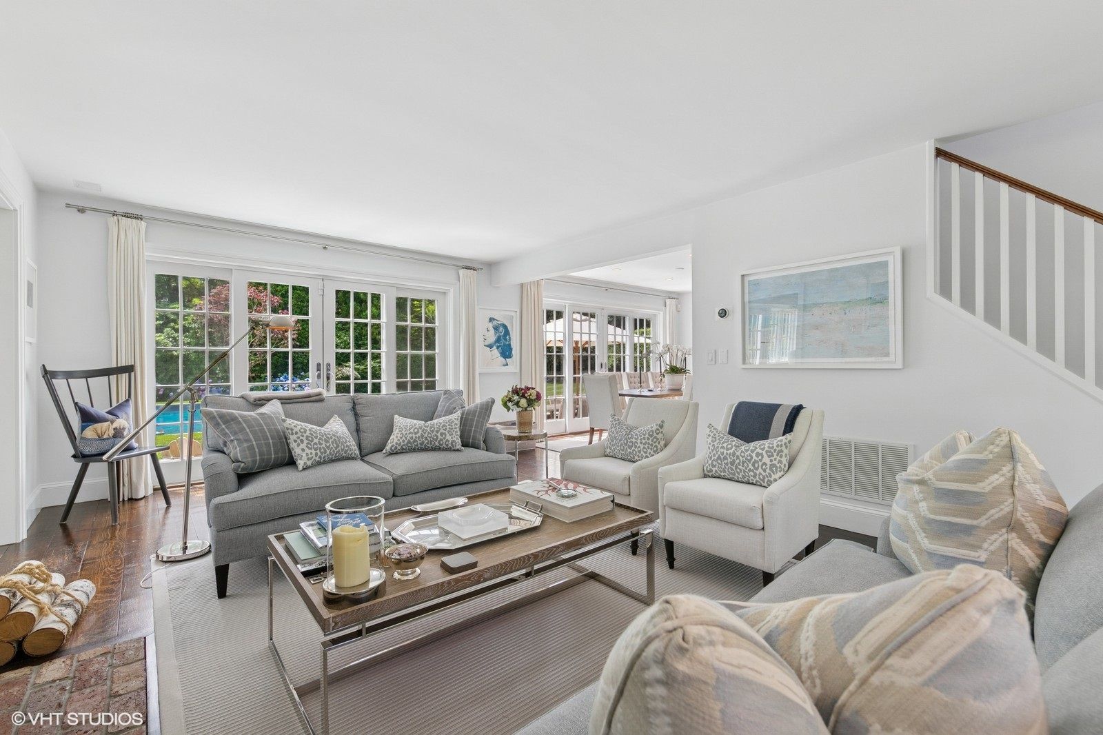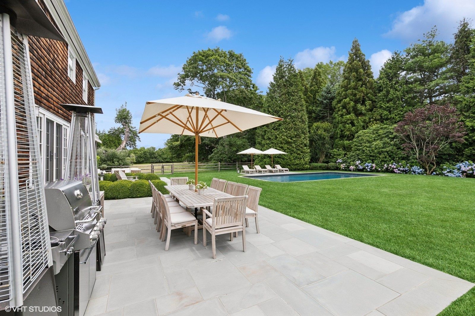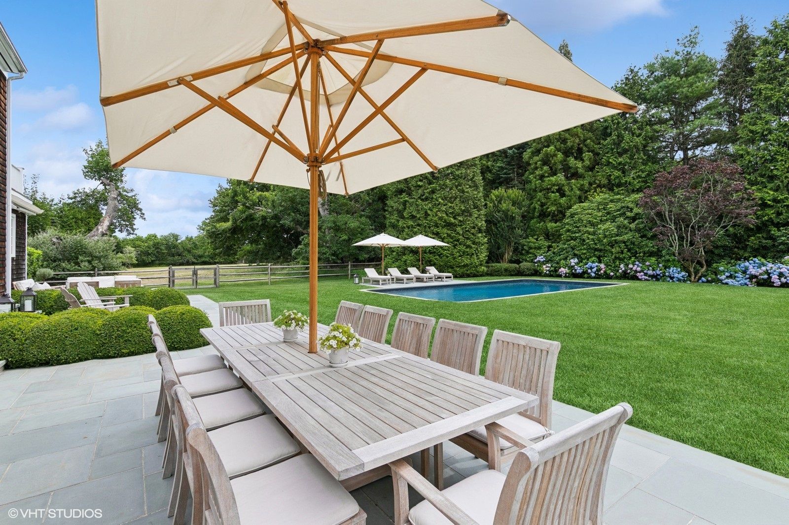 Discover an elevated Bridgehampton summer retreat set within a quiet, sought-after enclave marked by a charming covered bridge and a postcard-perfect pond. This beautifully furnished four-bedroom residence sits on a flat, fully cleared half-acre+, offering three-and-a-half baths, a heated pool, and multiple outdoor spaces designed for seamless al fresco living. Indoors, the spaces connect with purpose and style: a living room with fireplace, a