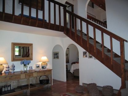 This immaculate 4 bedroom, 3 bath home has overtones of the American Southwest in its open design, terra cotta tiled floors, vaulted ceilings, stuccoed arches and living room fireplace. A spacious two story entry hall leads to a light filled living room, eat-in-kitchen, formal dining room, guest bedroom and bath. The second floor boasts a master bedroom with private bath and deck plus two additional bedrooms and bath. The yard is fenced and he