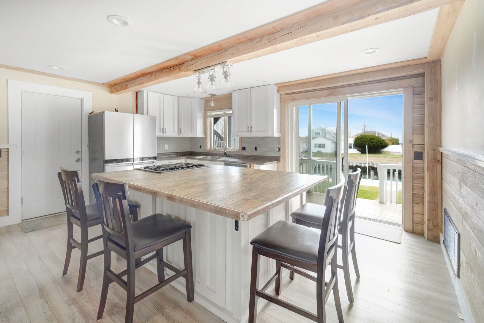 This two-story residence is perfect for dual-family living, boasting 4 bedrooms, an office, a bonus room, and 3 full bathrooms, all complemented by breathtaking bay views. The home features a 1 car garage and was raised to FEMA compliant height in 2014. The outdoor area is a paradise for water enthusiasts, featuring a private dock with a 75-foot vinyl bulkhead installed in 2021, a roomy shed, a cozy fire pit, and east-facing decks perfect for