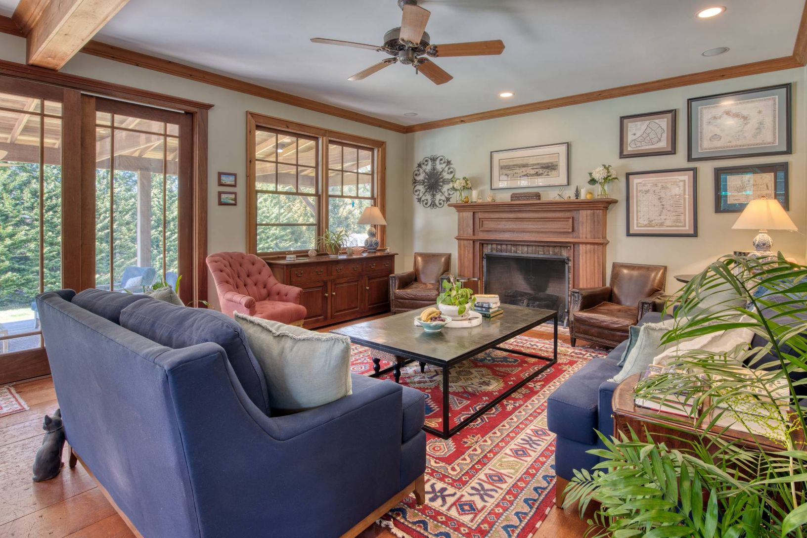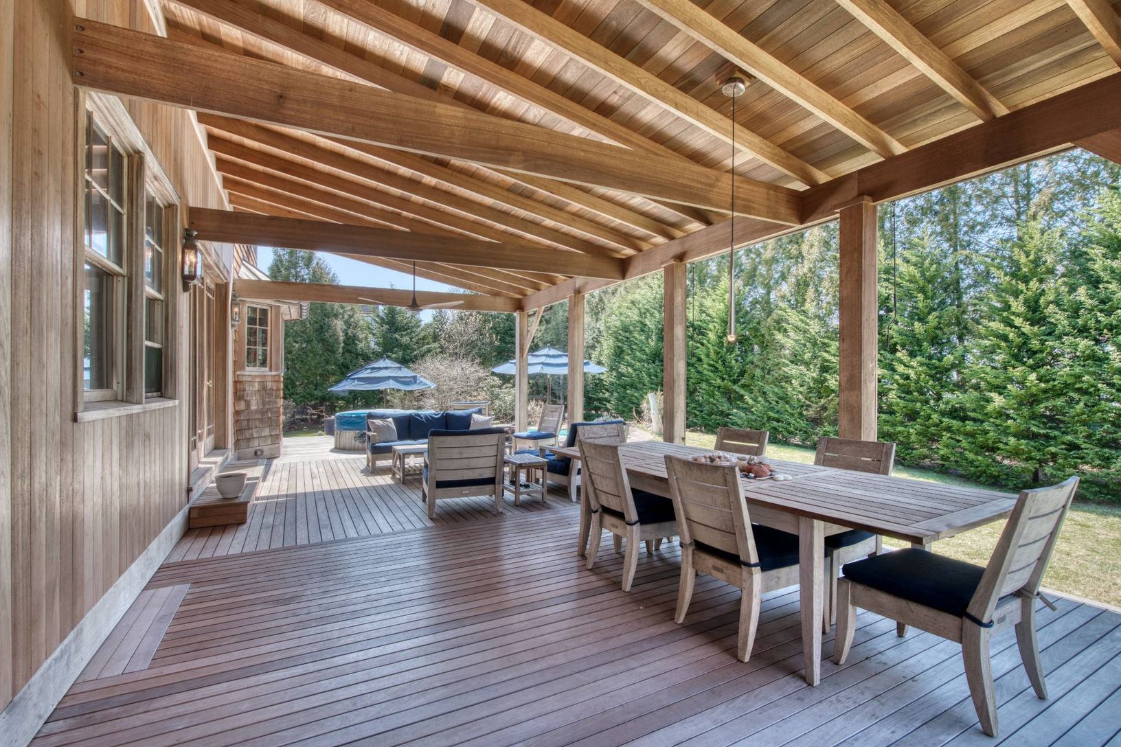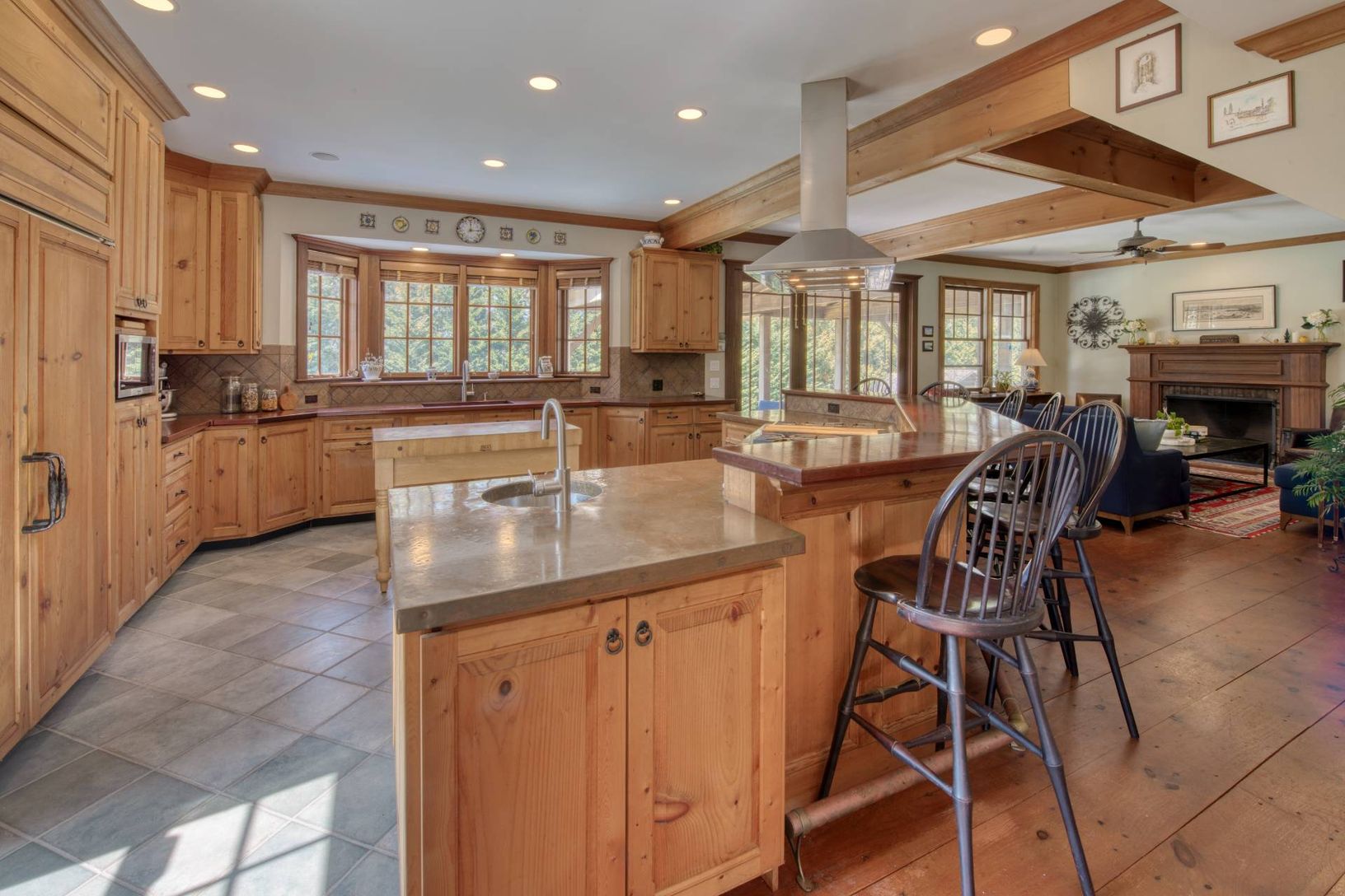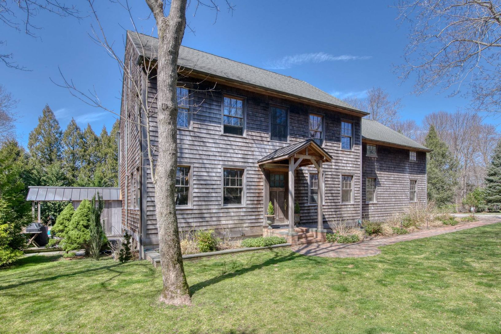 "Near North Haven" and squarely just off the circle, is a rare pre-existing compound. ~5500 SF heated volume includes the newer Main House, a free form, heated saltwater pool, a detached 973 SF workshop/ studio/ office; ~600 SF heated attached garage; an additional 200 SF detached garage, and a somewhat famous meteor of 80,000 lbs. where the blueberry bushes were. The Main House was built circa 1998, perfected & solid, including thicker t