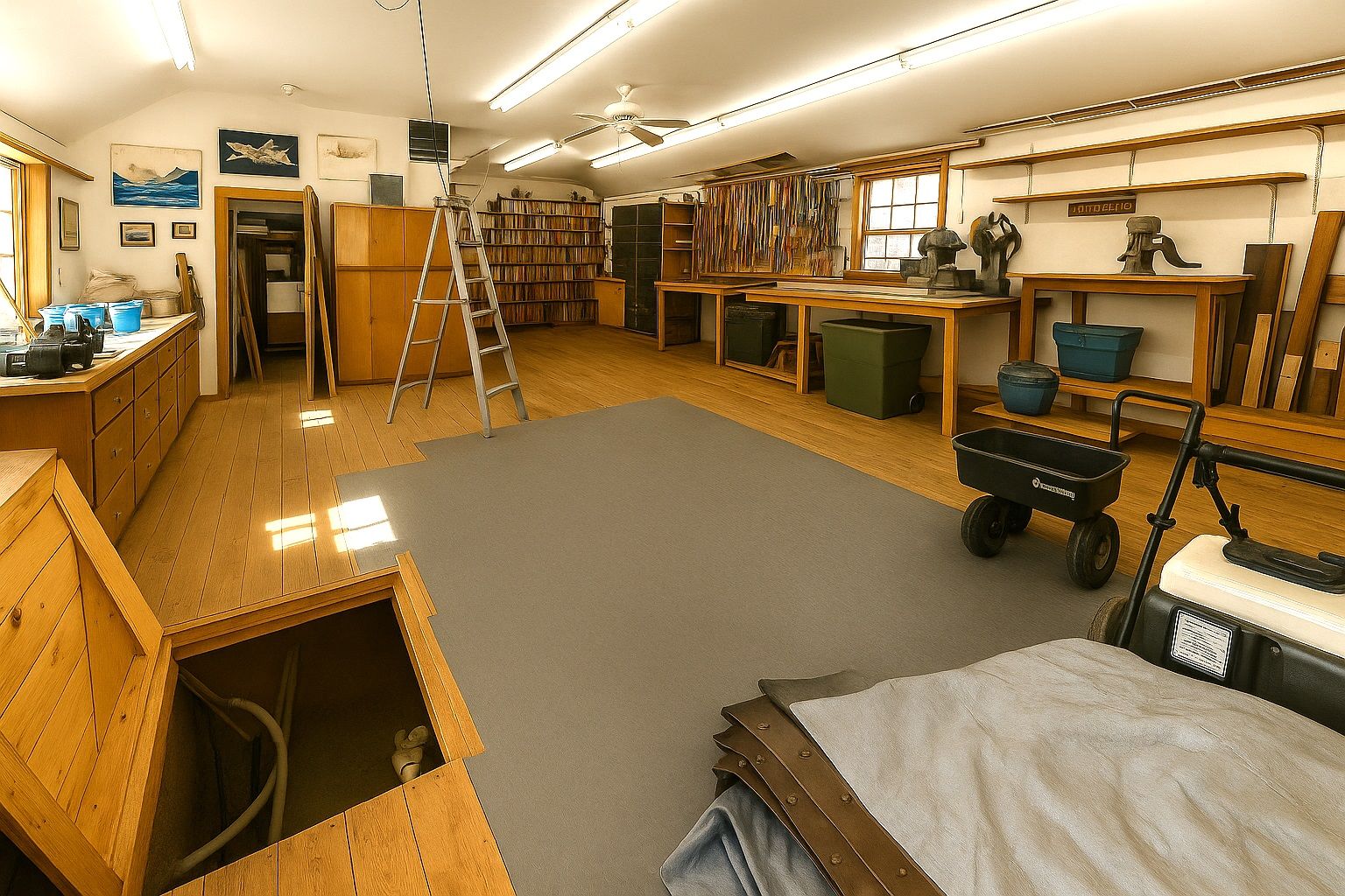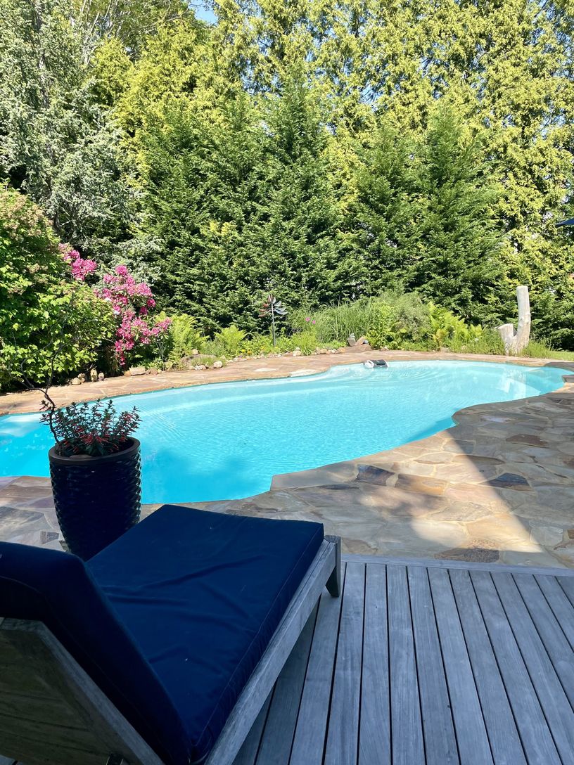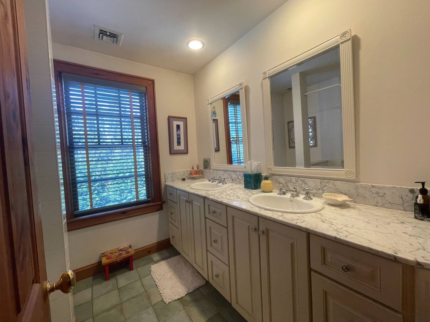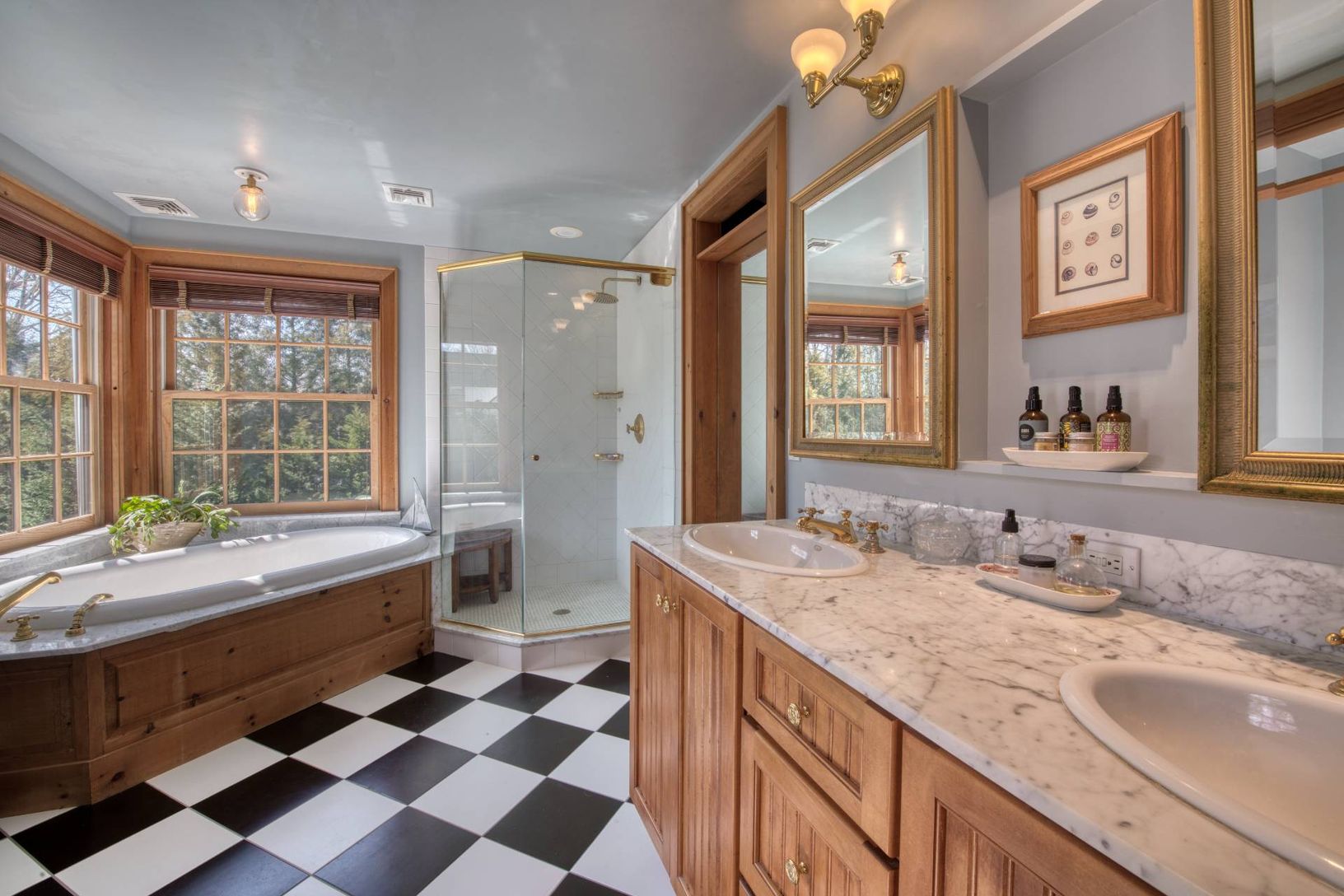 "Near North Haven" and squarely just off the circle, is a rare pre-existing compound. ~5500 SF heated volume includes the newer Main House, a free form, heated saltwater pool, a detached 973 SF workshop/ studio/ office; ~600 SF heated attached garage; an additional 200 SF detached garage, and a somewhat famous meteor of 80,000 lbs. where the blueberry bushes were. The Main House was built circa 1998, perfected & solid, including thicker t
