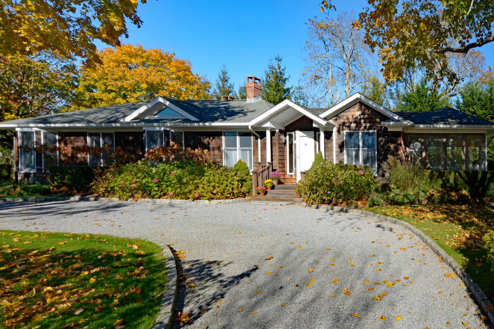 This immaculate single level home is centrally located south of the highway in the Village of Quogue, set on over a half acre of manicured grounds, providing an oasis of tranquility for seasonal and/or year-round living. Vaulted ceilings and south facing windows illuminate the well-proportioned rooms that include a formal living room with fireplace, 3 bedrooms with en-suite bathrooms, open kitchen/dining room and library. In addition, there is