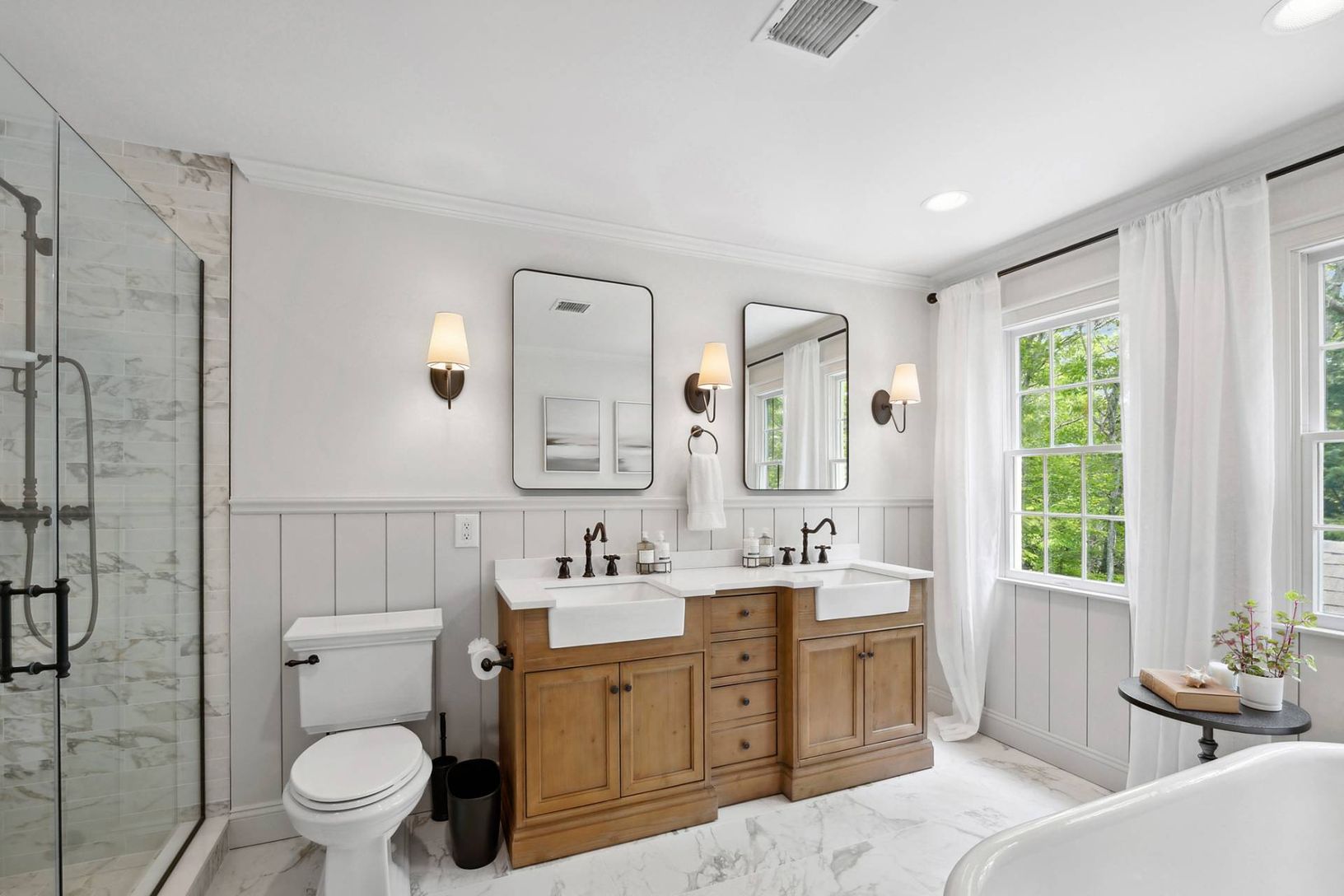 AVAILABLE MAY23-JUNE JUNE 18.....This quintessential Hamptons home features five bedrooms, three and a half baths, and plenty of living space for the perfect summer getaway. Entering into a large double-height living room with fireplace, dining area, and open kitchen, this home has it all. The first floor is equipped with a generous master suite, half bath, and guest bedroom, while the second floor has an additional master suite and two additi
