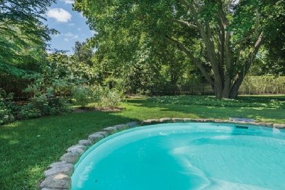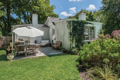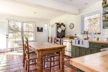 With gardens designed around the Zen of a circle, enter the gate and embrace country life in style with this chic and positively enchanting two bedroom, two bath brick cottage built in 1930 by an Island craftsman. There are luscious gardens laid out around an impressive maple tree, designed by Mario Nievera with roses, peonies, lavender, primrose and herbs, among other extensive plantings. There is a heated free-form pool and a pool house with