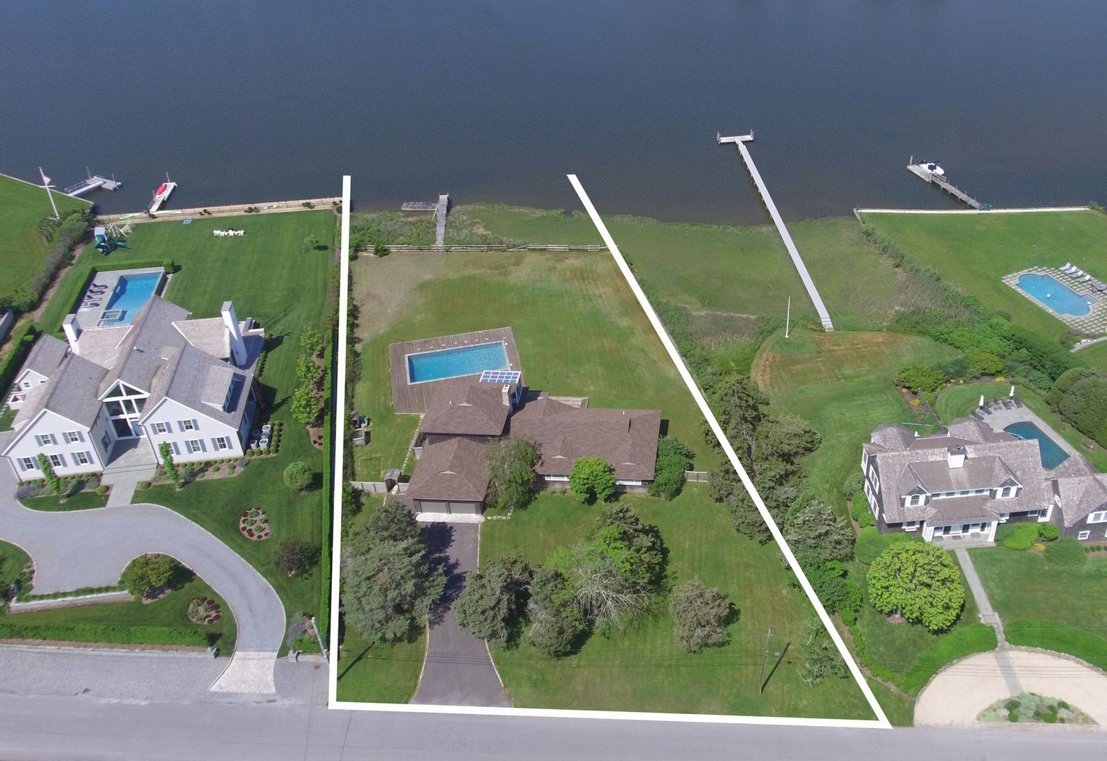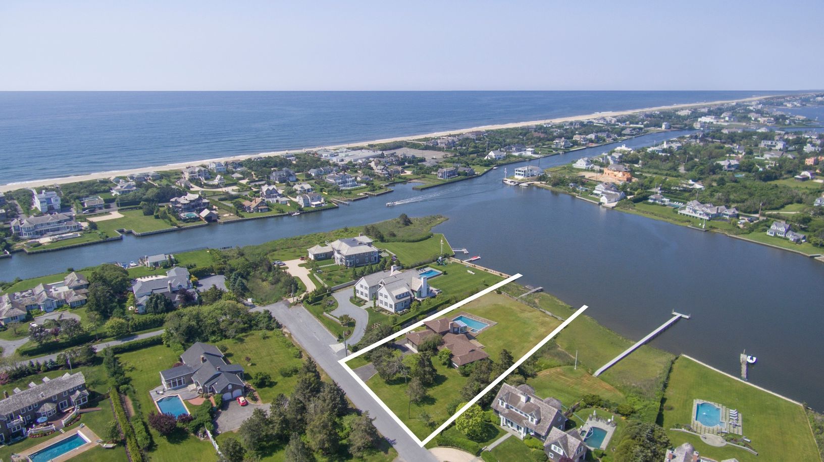 First time on the market. Perfectly situated 1.2 Acres on Ogden Pond with expansive sunset views. Property has an existing 3000 sq. ft. house, inground waterfront pool, & private boat dock. This is your opportunity to build your dream home in one of Quogues's most desirable locations.