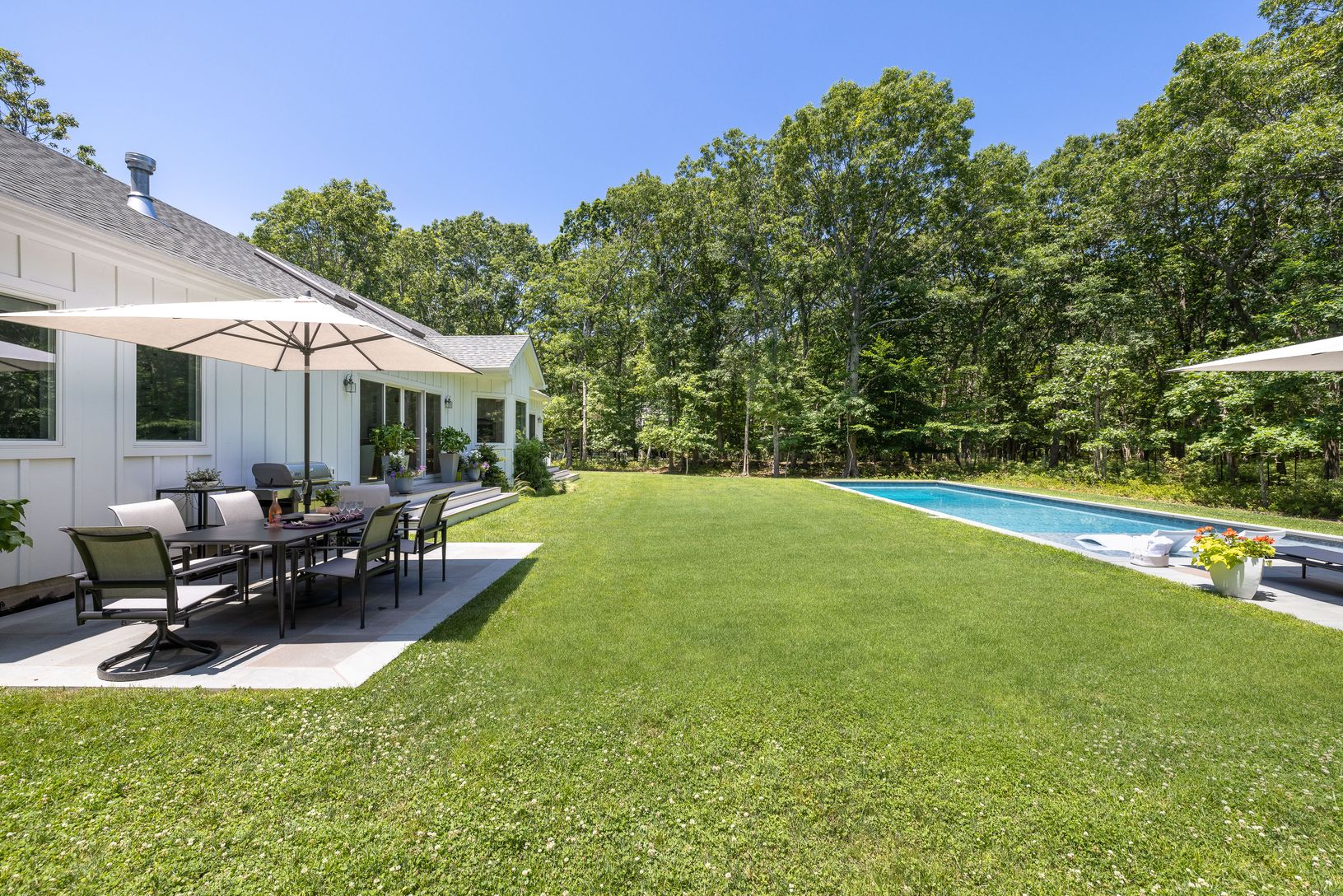 Recently built, this stunning home sited along a secluded and picturesque street just minutes from town is the quintessential Hamptons retreat. The stylishly furnished home features three bedrooms, three and a half bathrooms, and all of the modern amenities you'll need to enjoy your summer to the fullest. The bright and airy open layout showcases high ceilings, a gas fireplace, and glass sliders that lead to the beautiful backyard. The kitchen