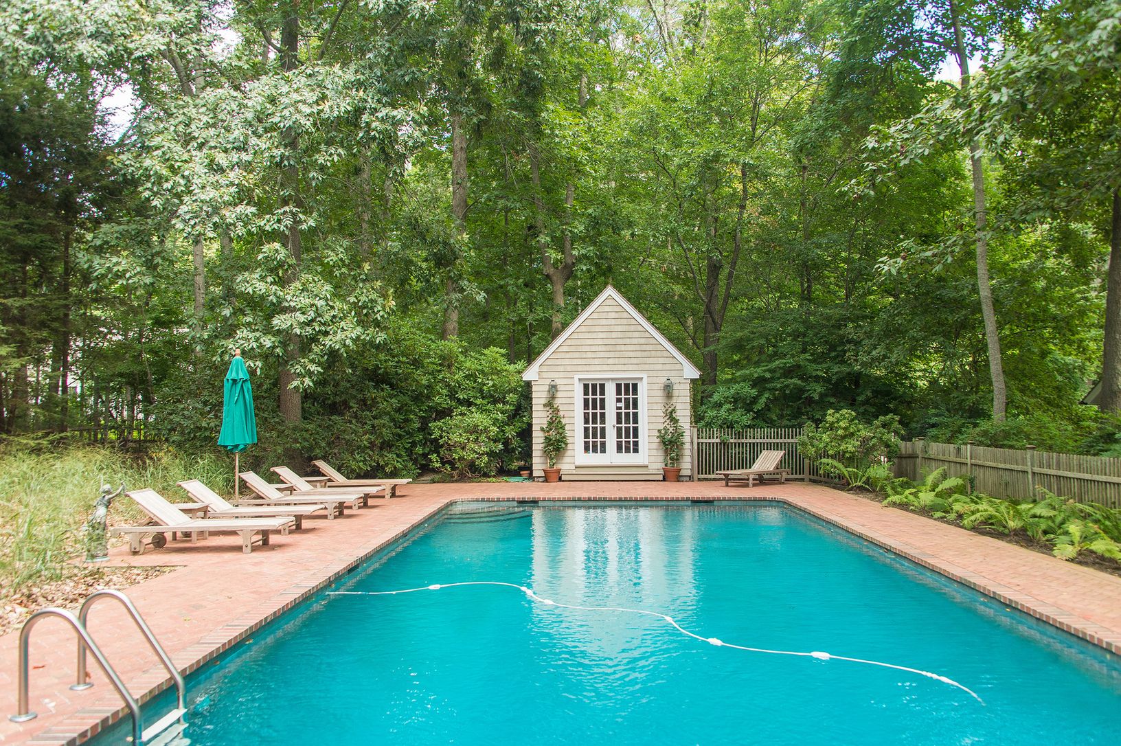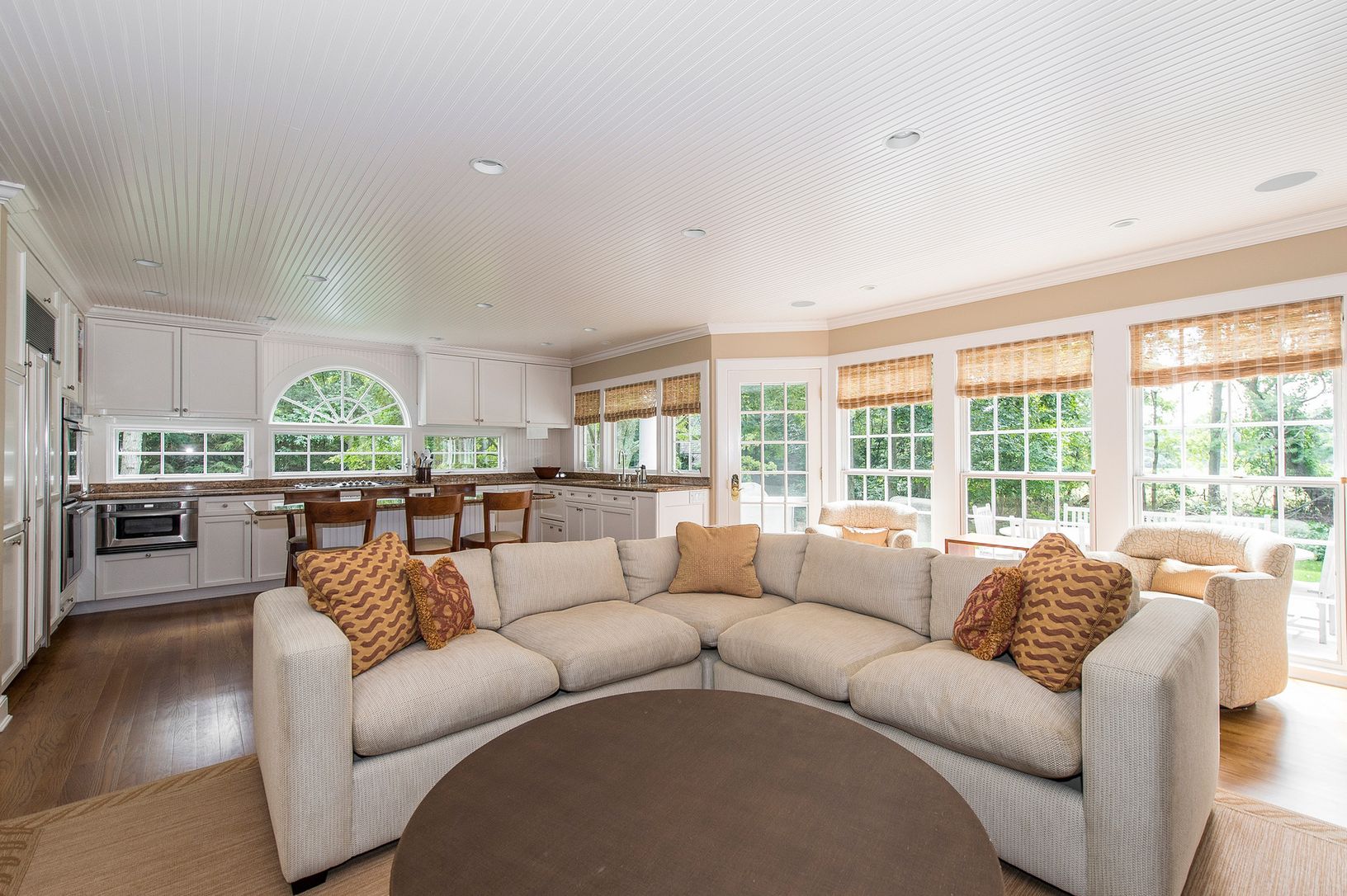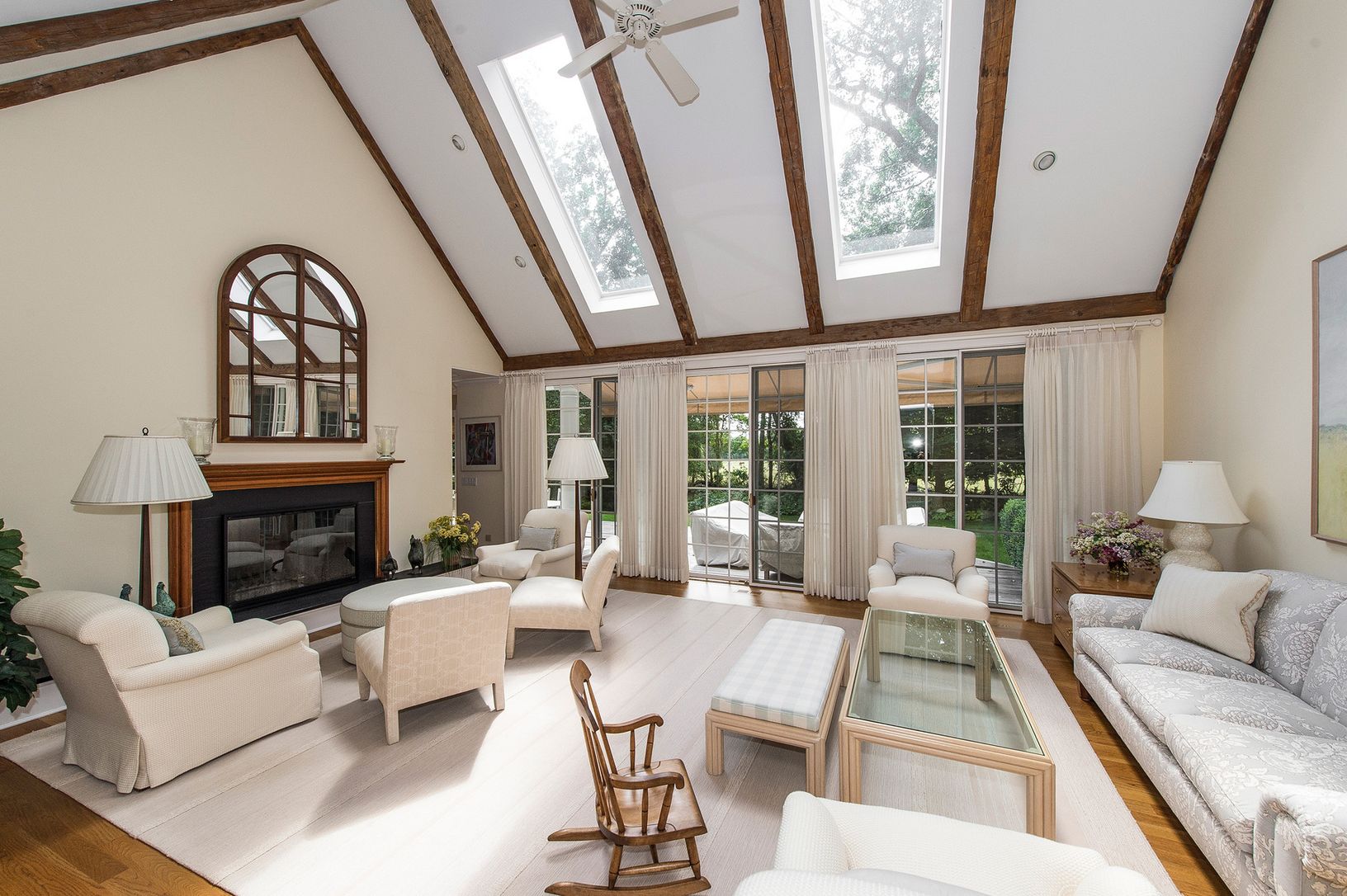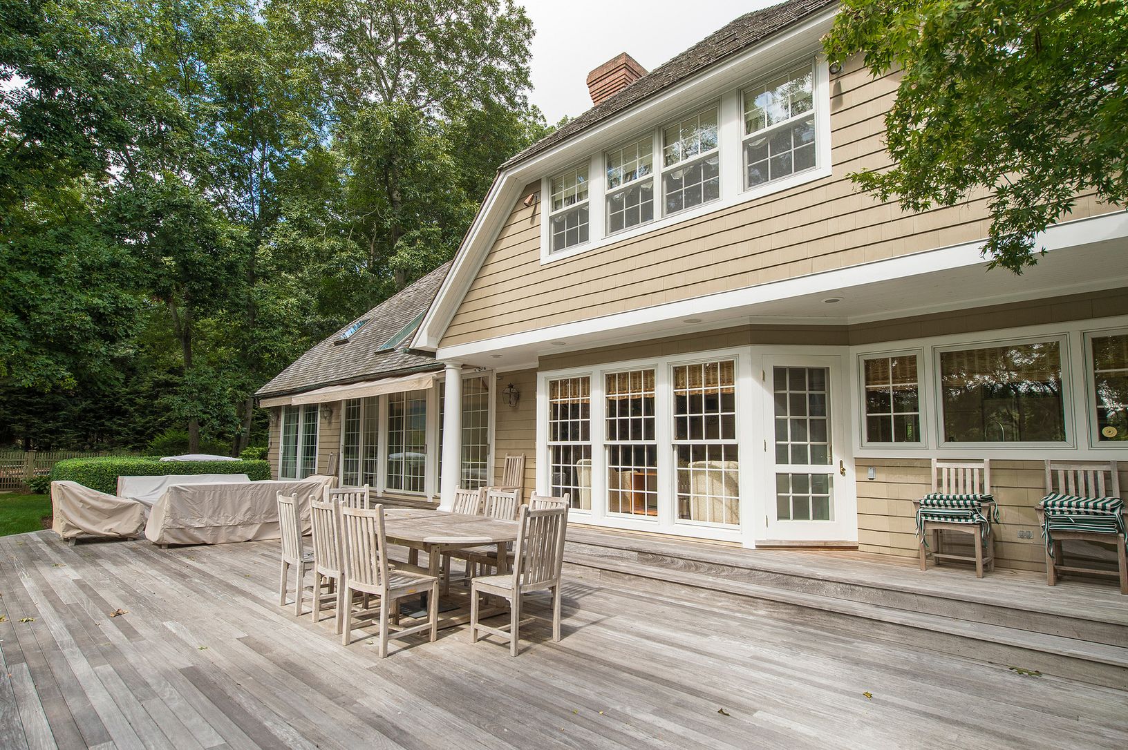 This Fleetwood designed traditional lies within moments of the heart of East Hampton Village in the midst of a beautiful Beech tree forest. Located on one of East Hampton's most prestigious streets, this handsome home offers a well thought out and open layout featuring a vaulted and beamed ceiling living room with a fireplace that is shared by the renovated kitchen. The first floor offers a spacious master with walk-in closet and bathroom with