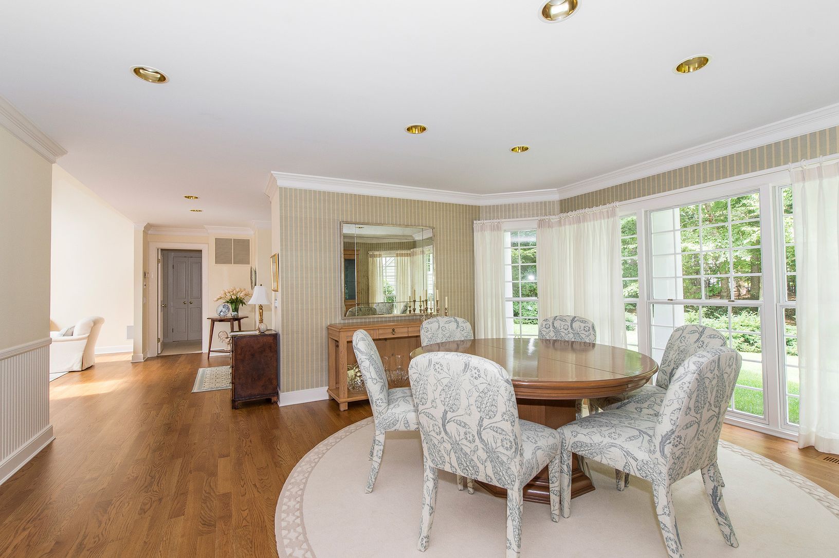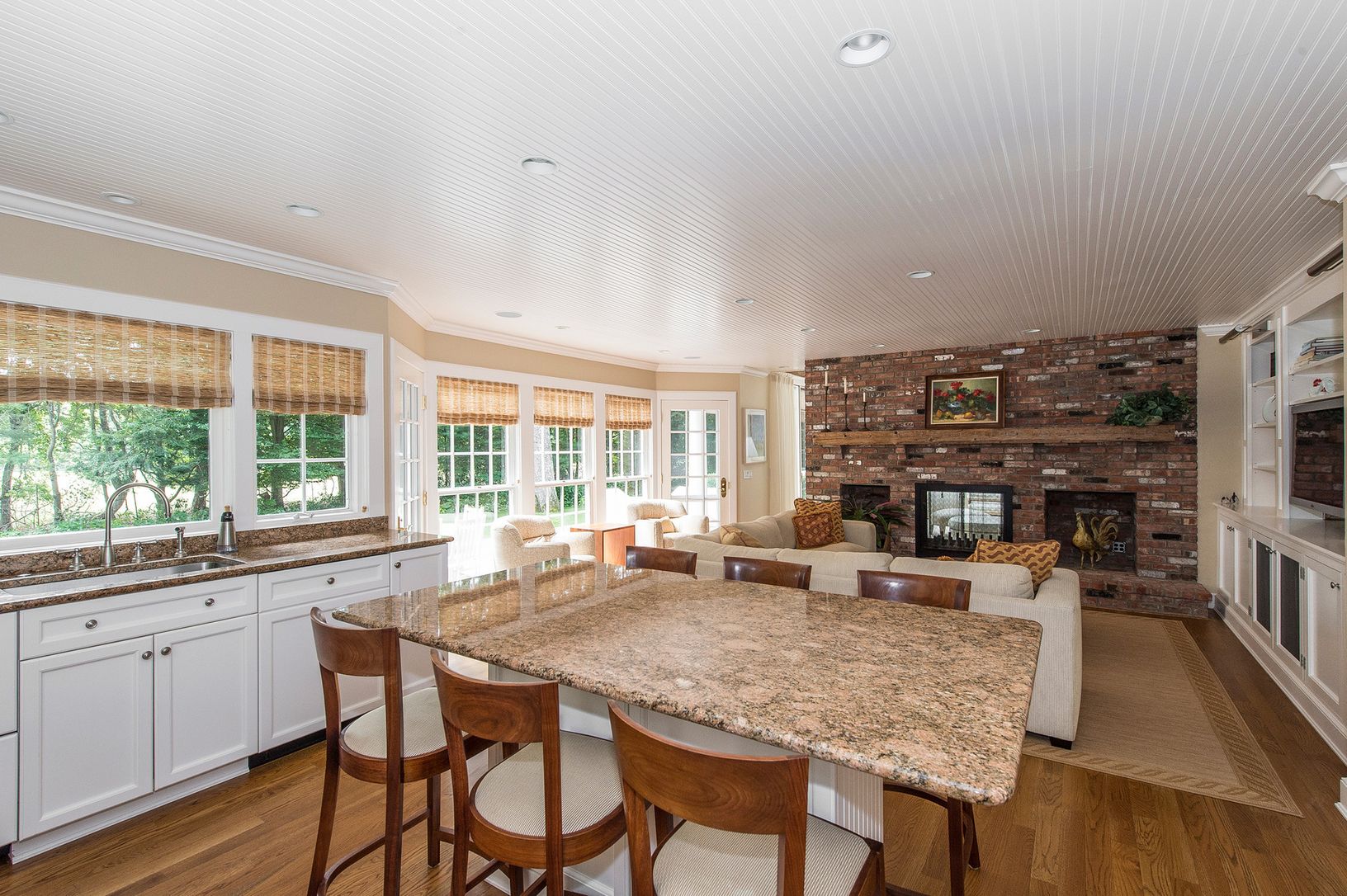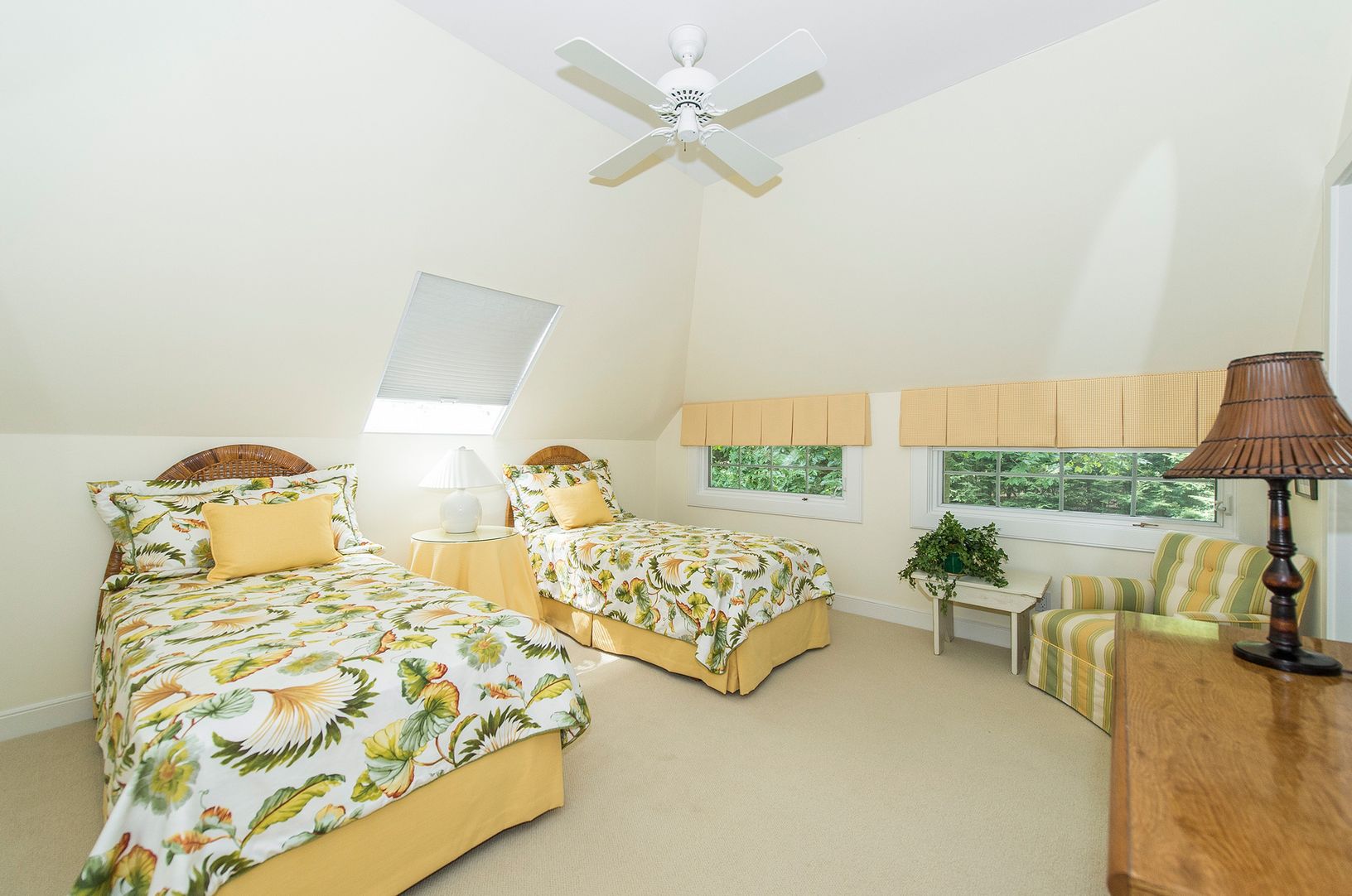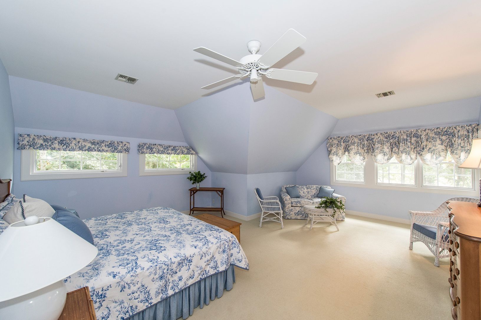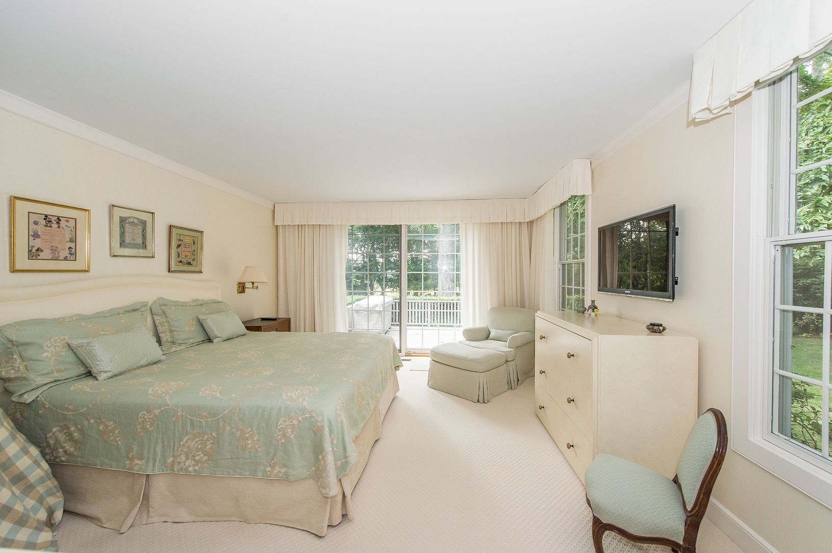 This Fleetwood designed traditional lies within moments of the heart of East Hampton Village in the midst of a beautiful Beech tree forest. Located on one of East Hampton's most prestigious streets, this handsome home offers a well thought out and open layout featuring a vaulted and beamed ceiling living room with a fireplace that is shared by the renovated kitchen. The first floor offers a spacious master with walk-in closet and bathroom with