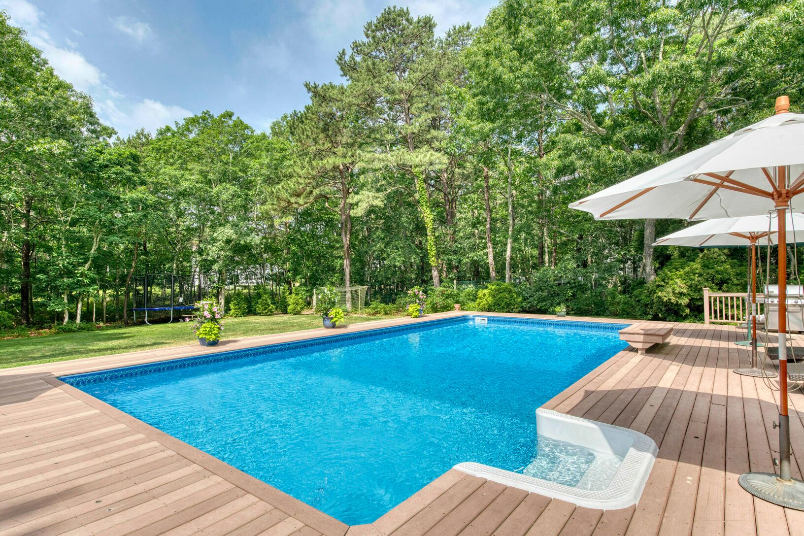 Rental Registration #: 22-967 Located on a cul-de-sac, close to shopping, Hampton Jitney bus stop, East Hampton indoor tennis and to the ocean. This beautiful home has two master suites, living room with fireplace, central air conditioning, heated pool and playground set in the back yard..