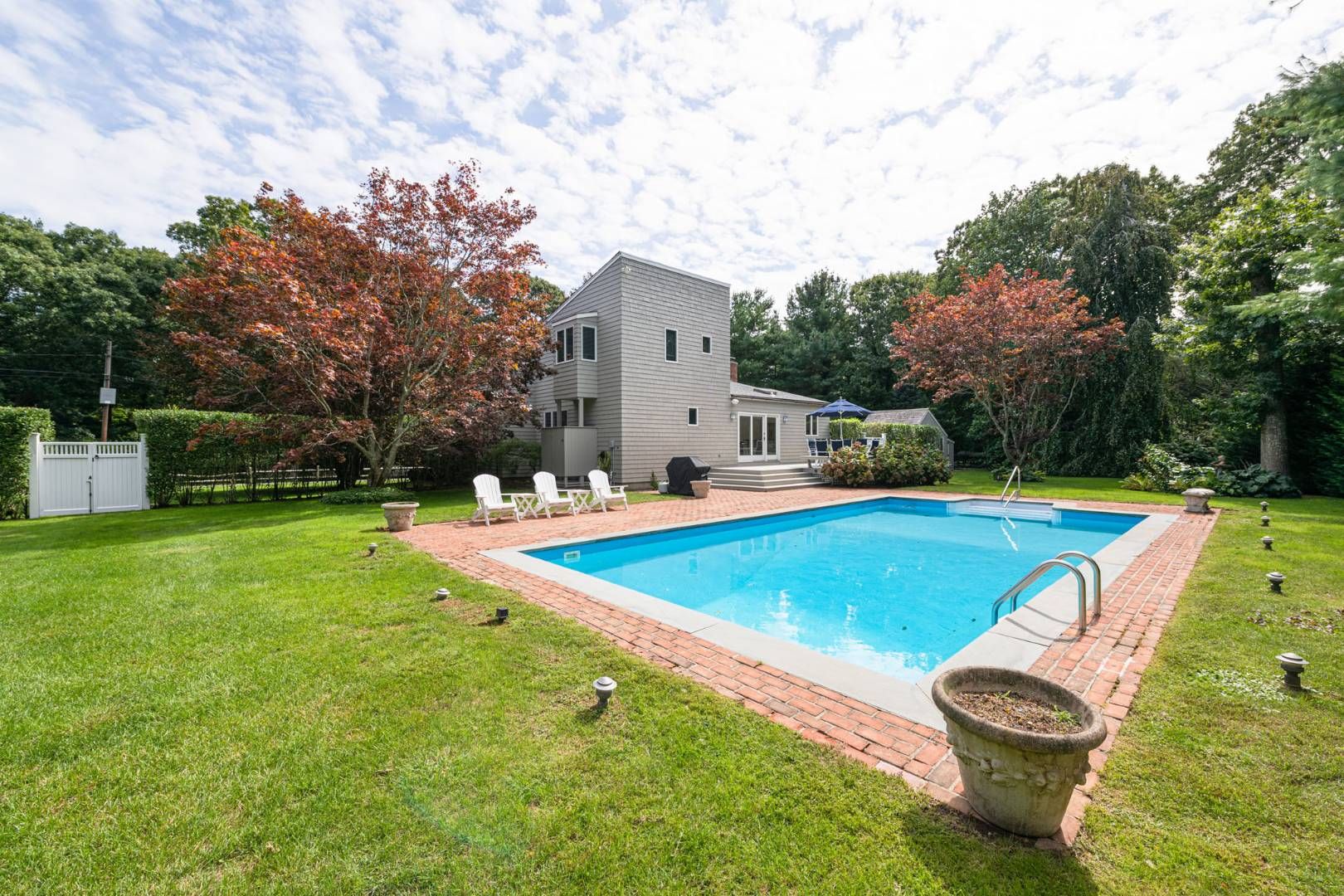 Located just around the corner (.4 miles) from Hands Creek Harbor in the Settler's Landing area of East Hampton's Northwest Woods, stands this cedar shingled Contemporary home on a shy half acre of property with four bedrooms, three baths and heated pool. Bursting with light from its high windows, skylights, and sliding glass doors, this custom-built cedar shingle residence has been meticulously maintained and expanded over the years by its on