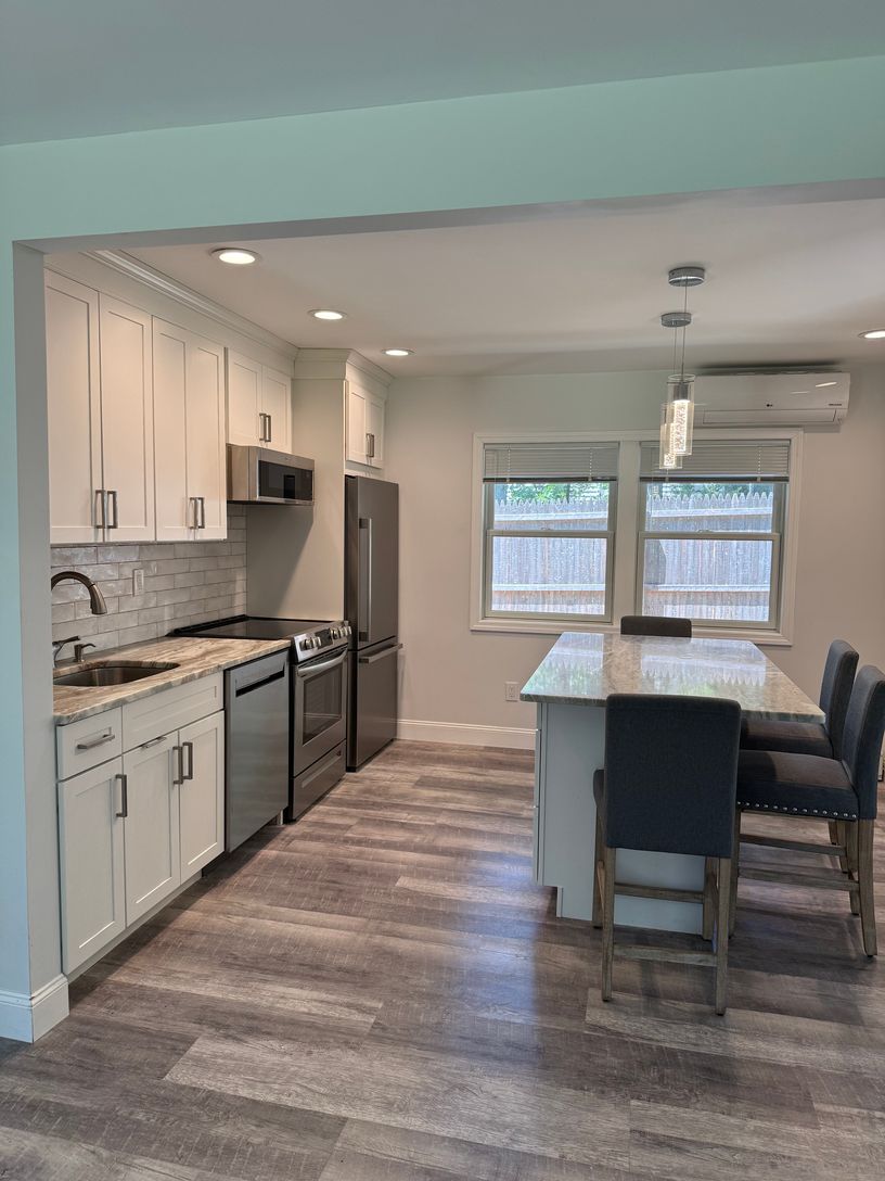 This lovely property is all newly renovated and ready for occupancy! Offering an open living floor plan, downstairs is a living room with fireplace, new kitchen with island, two bedrooms on the first floor with full bathroom and upstairs another bedroom and bonus living space with full bathroom. Outside enjoy the private yard and patio area with outdoor BBQ and dining. Central Air with split units and outdoor shower complete the offerings!