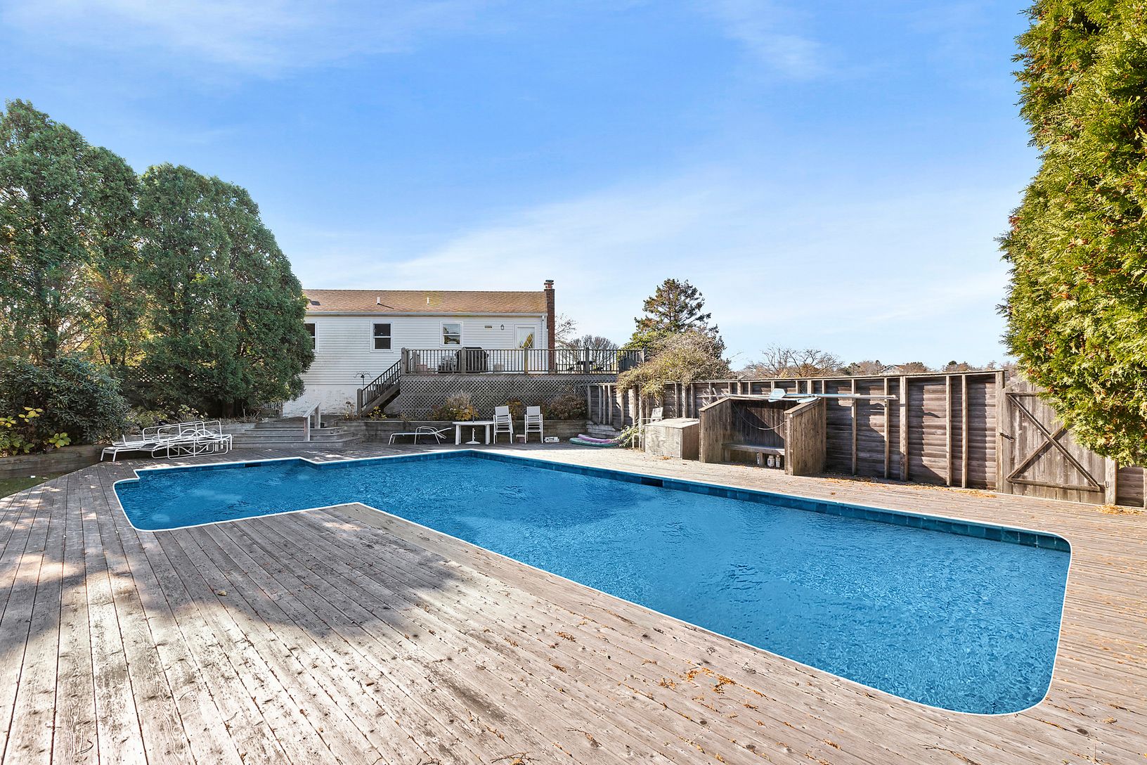 High ranch on 0.97 acre with four bedrooms, two baths, kitchen, living room, work out area, swimming pool (not heated), and wrap around upper decking. Detached one car garage, just about one mile to downtown Montauk, 1.2 miles to ocean beach, Montauk Downs State Park and everything Montauk has to offer.
