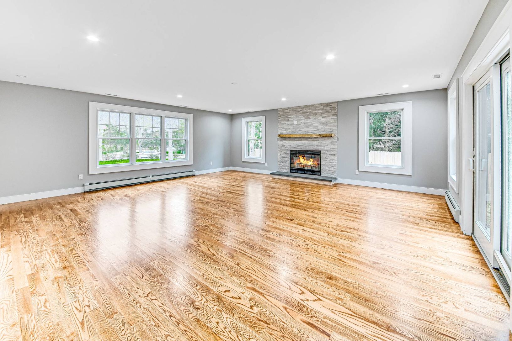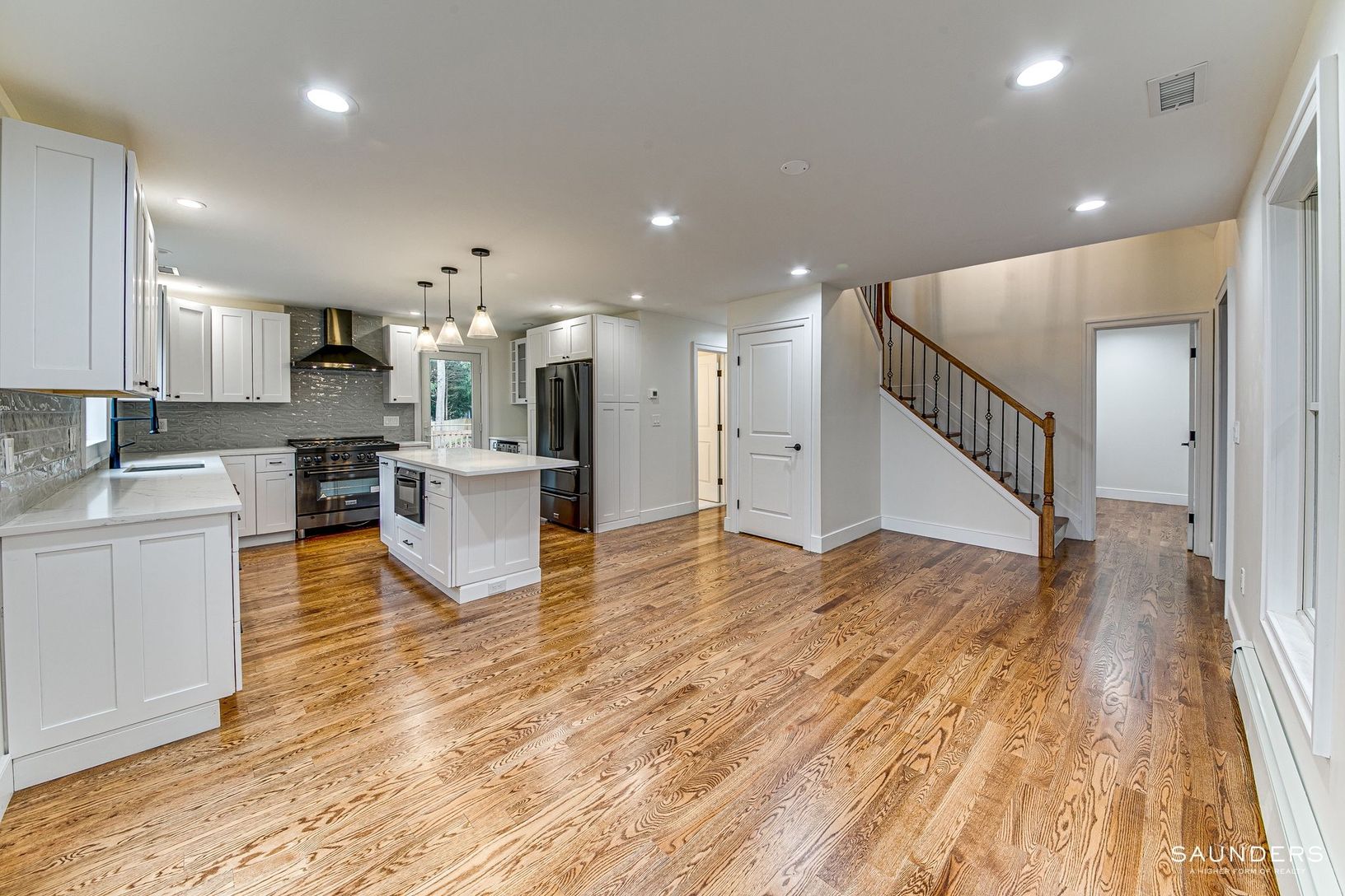 This 3000 sq foot contemporary home has been renovated to fit modern day living. The spacious combined dining and living room boasts one of the two blue slate fireplaces, hardwood floors with plenty of room for relaxing, dining and entertaining. The eat in kitchen features quartz countertops and top of the line new appliances. The primary bedroom includes a private bathroom, an additional fireplace and a walk in closet. Three spacious guest be