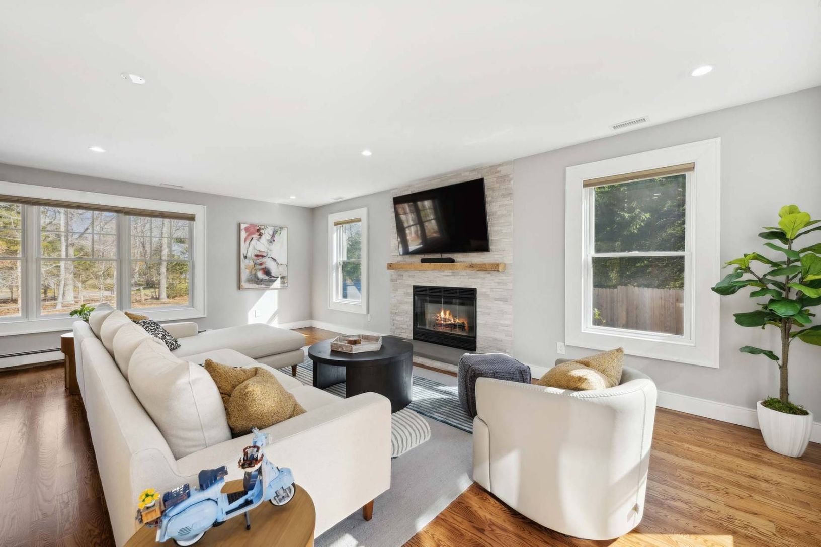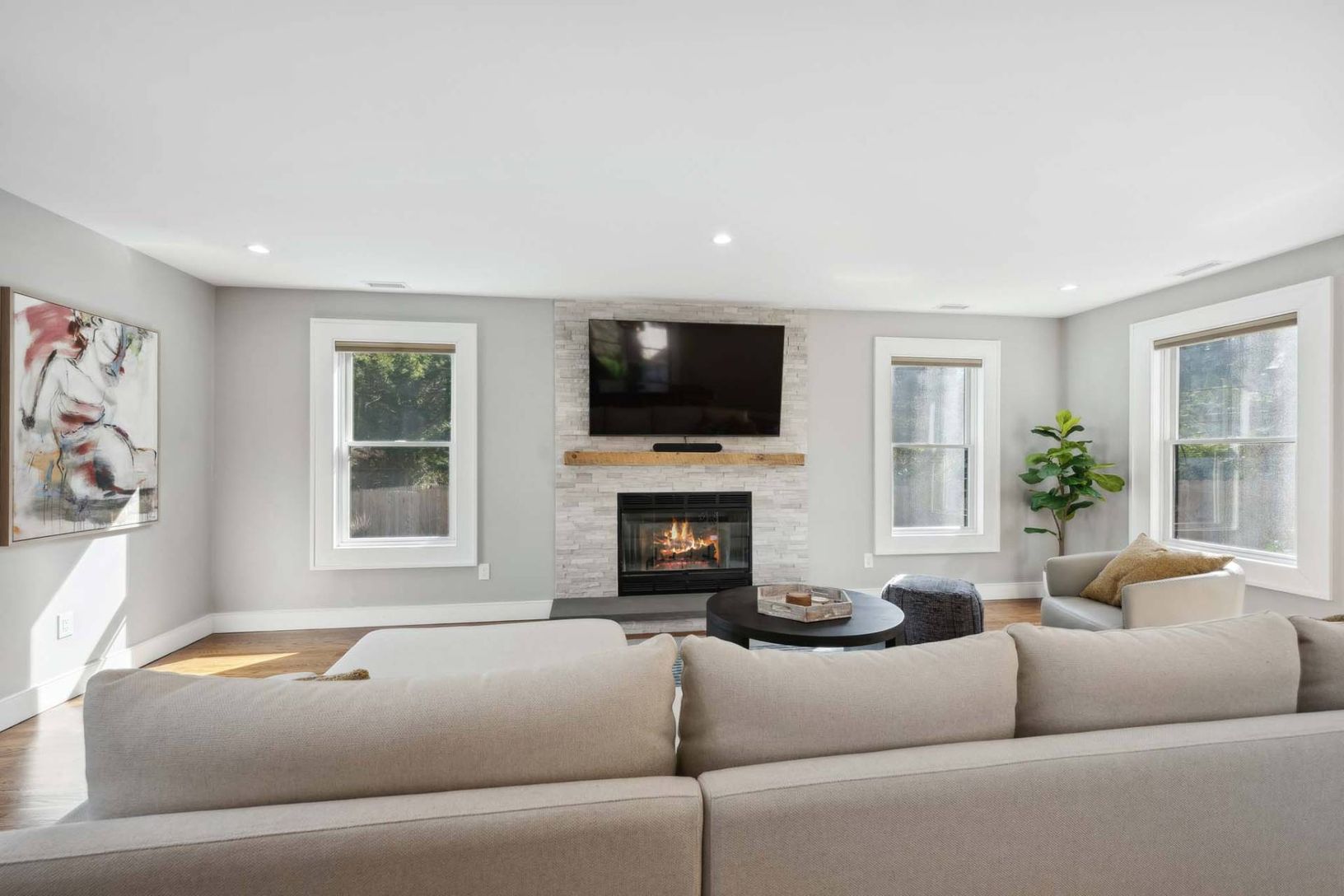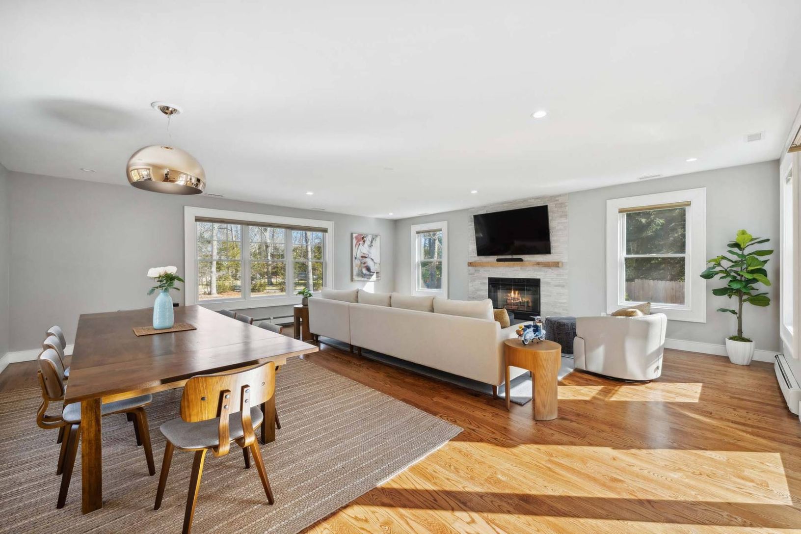 Be the first lucky renter to enjoy this stunning new construction home in East Hampton moments from the water. Experience the quintessential Hamptons summer lifestyle with this impeccably renovated 3,000 sq. ft. contemporary home, close to the water and ready for a luxurious Summer in the sun. Step inside to discover a spacious living and dining area, bathed in natural light and enhanced by the home's exquisite blue slate fireplace. Hardwood f