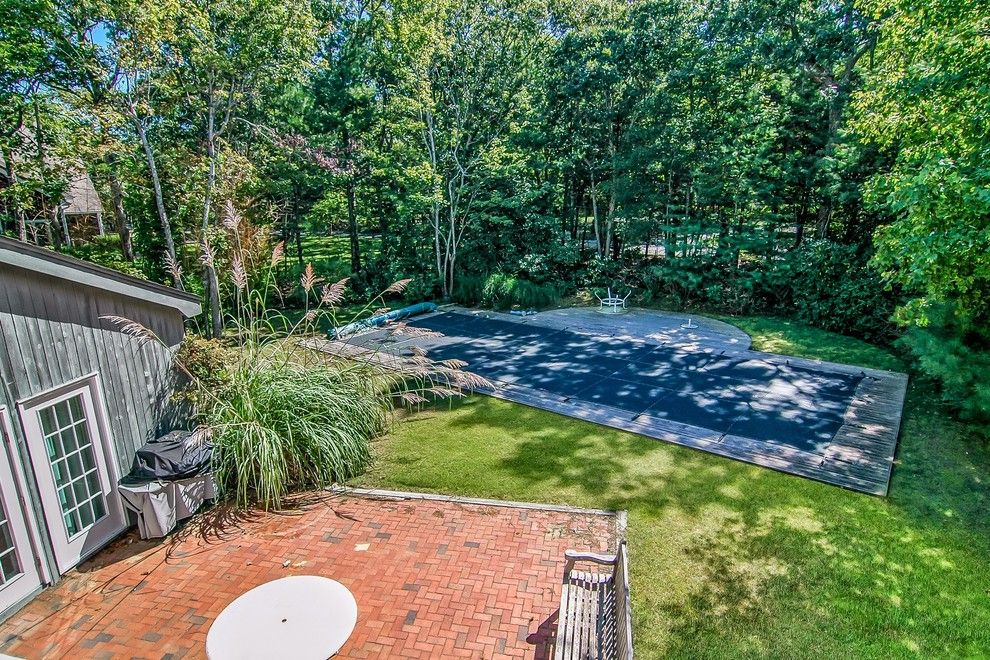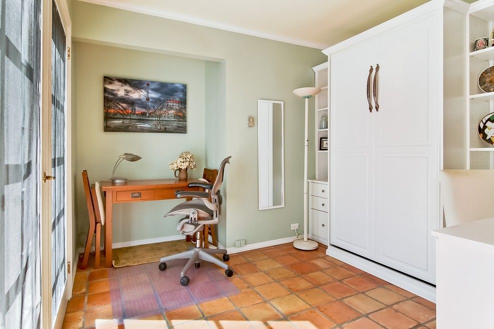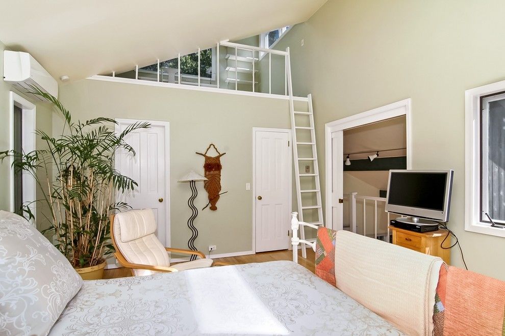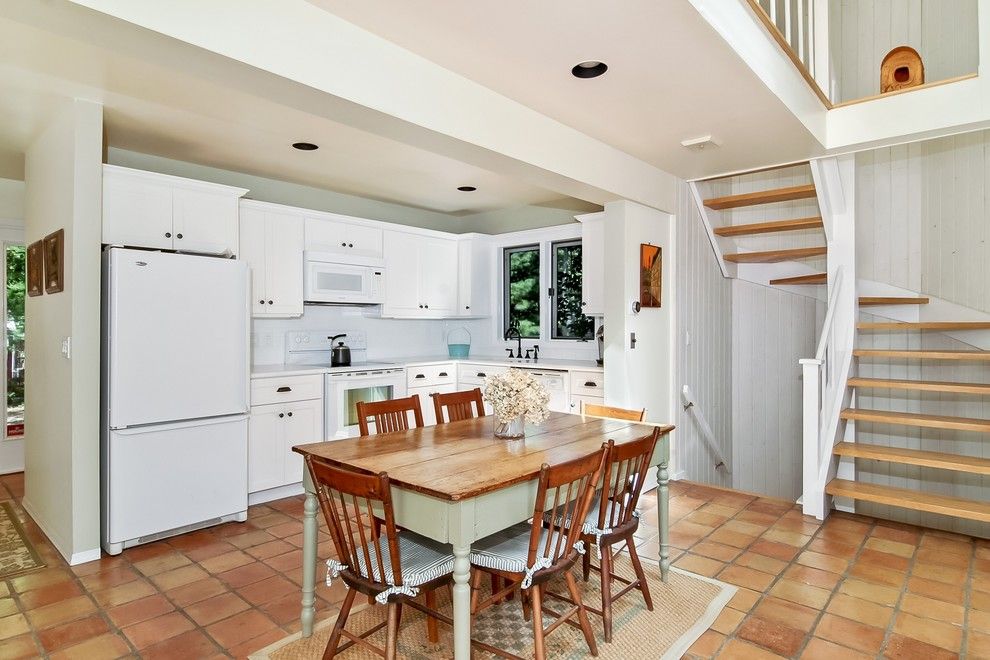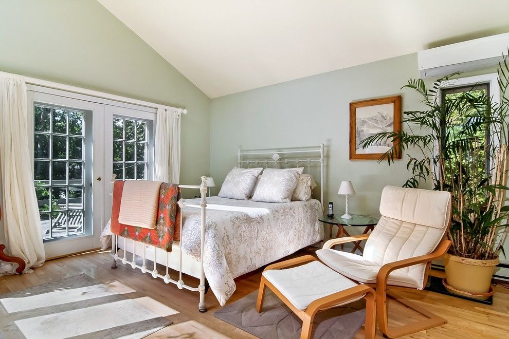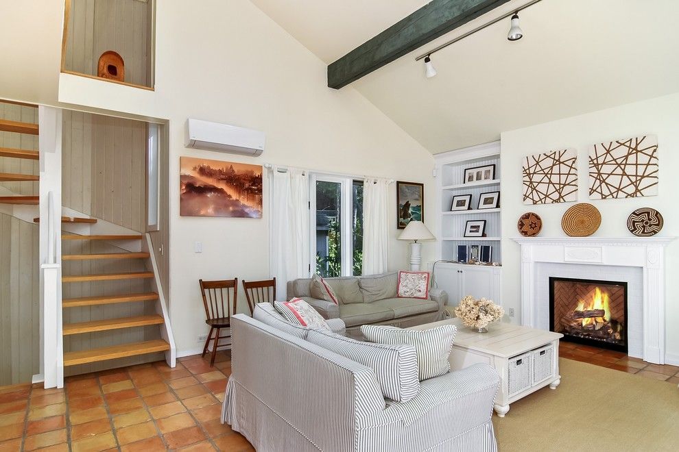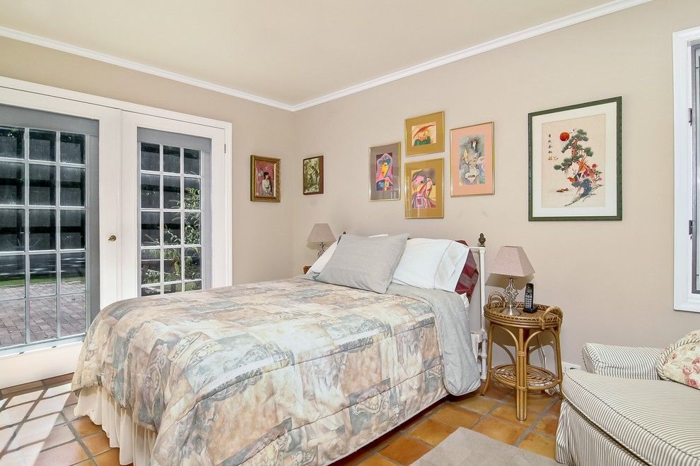 Set on a secluded corner lot, this lovely home boasts French doors and skylights throughout. Mexican terracotta floors, cathedral ceilings, newly renovated kitchen and gas fireplace add practicality and charm. The second floor is dedicated to the Master Suite and features a full bath with jetted tub, walk in closet, and French doors opening to a deck overlooking the pool and mature gardens. The main floor features two guest bedrooms, one of w