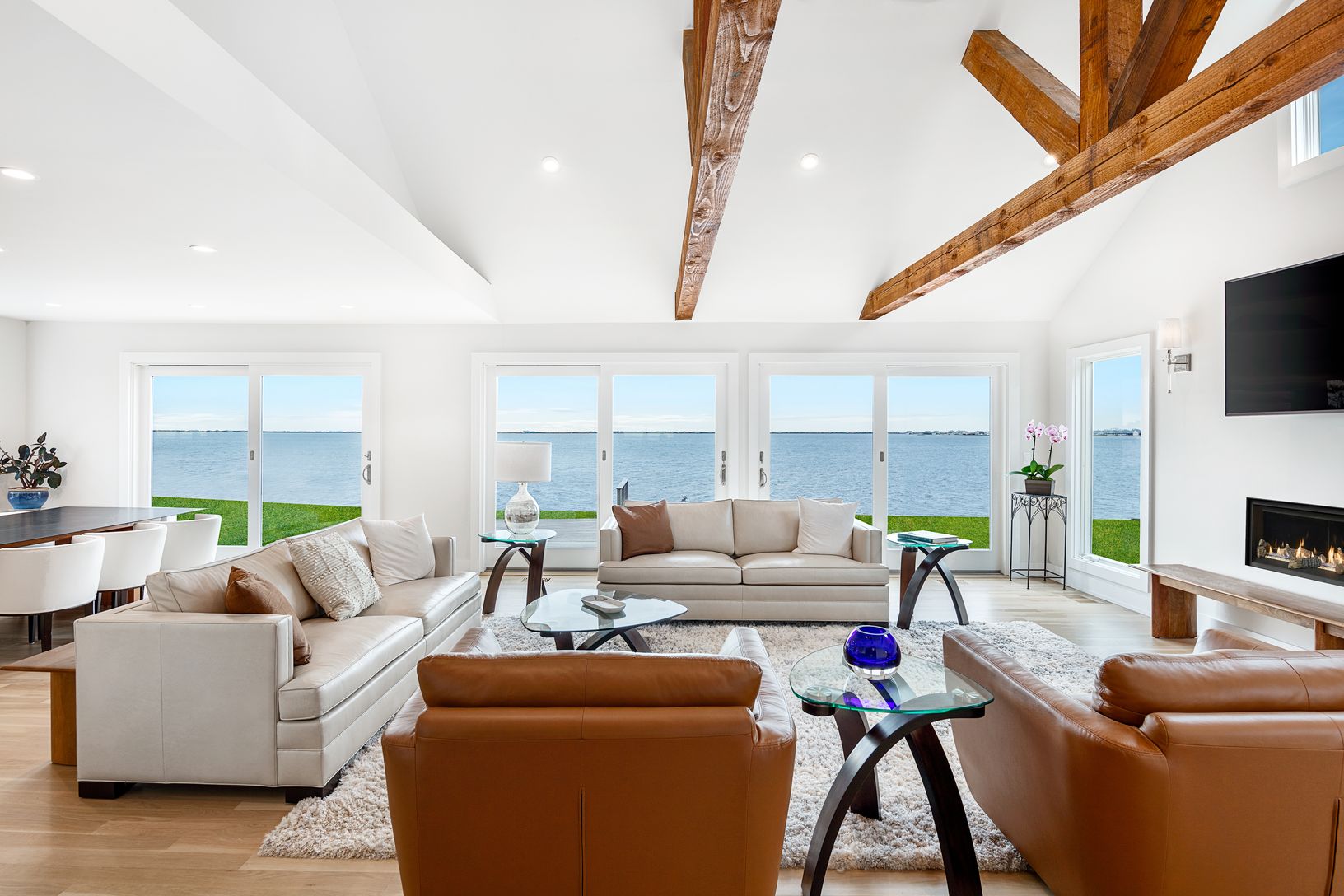 This newly constructed home is situated on .55 waterfront acres in the heart of Hampton Bays in a non-flood zone or "X Flood Zone". Walk right into the 4BR 3BA main house and you will immediately see panoramic views of the Shinnecock Bay through the back door sliders leading out to the deck of this fully bulk headed backyard. Above the two car garage you will find a spacious studio with a full bath attached. This property has plenty of space t