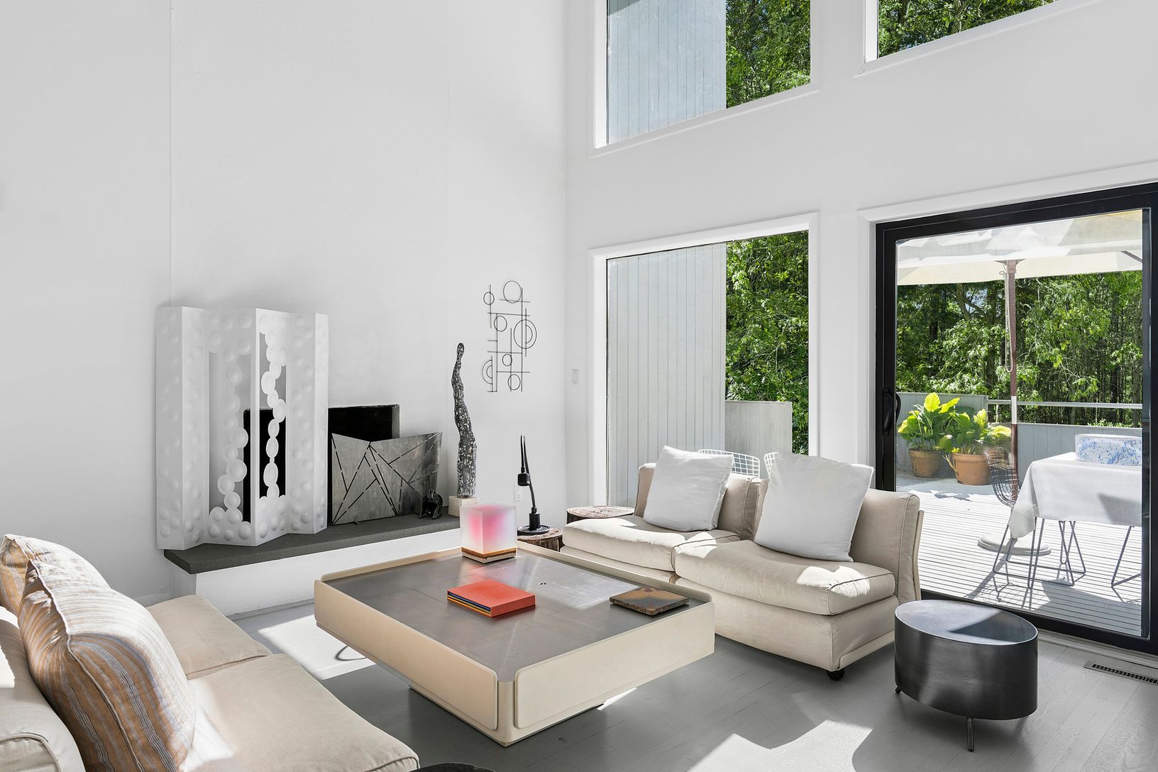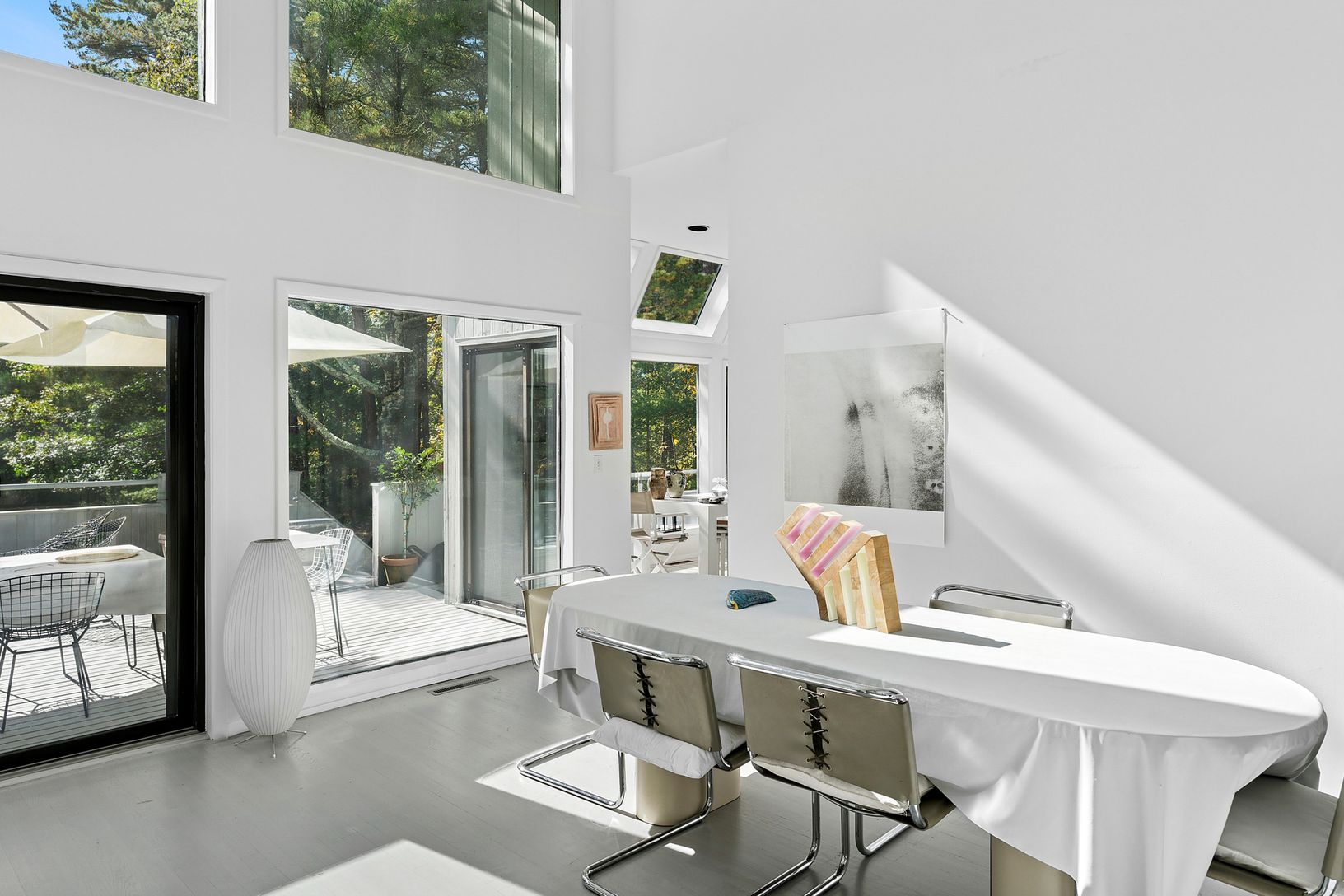 Bathed in natural light and defined by its striking façade, this 2,500 SF East Hampton retreat offers three bedrooms, two and a half baths, and endless potential. With massive double-height windows & skylights, the open, airy layout flows seamlessly to the outdoors, where a sun-drenched deck overlooks the in-ground pool with possible room for tennis.