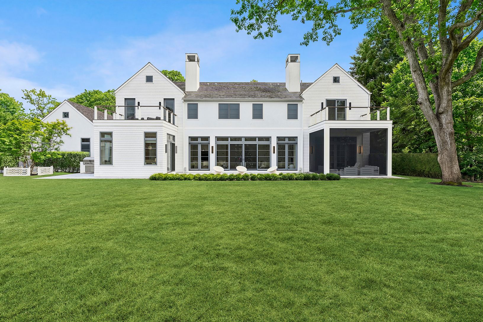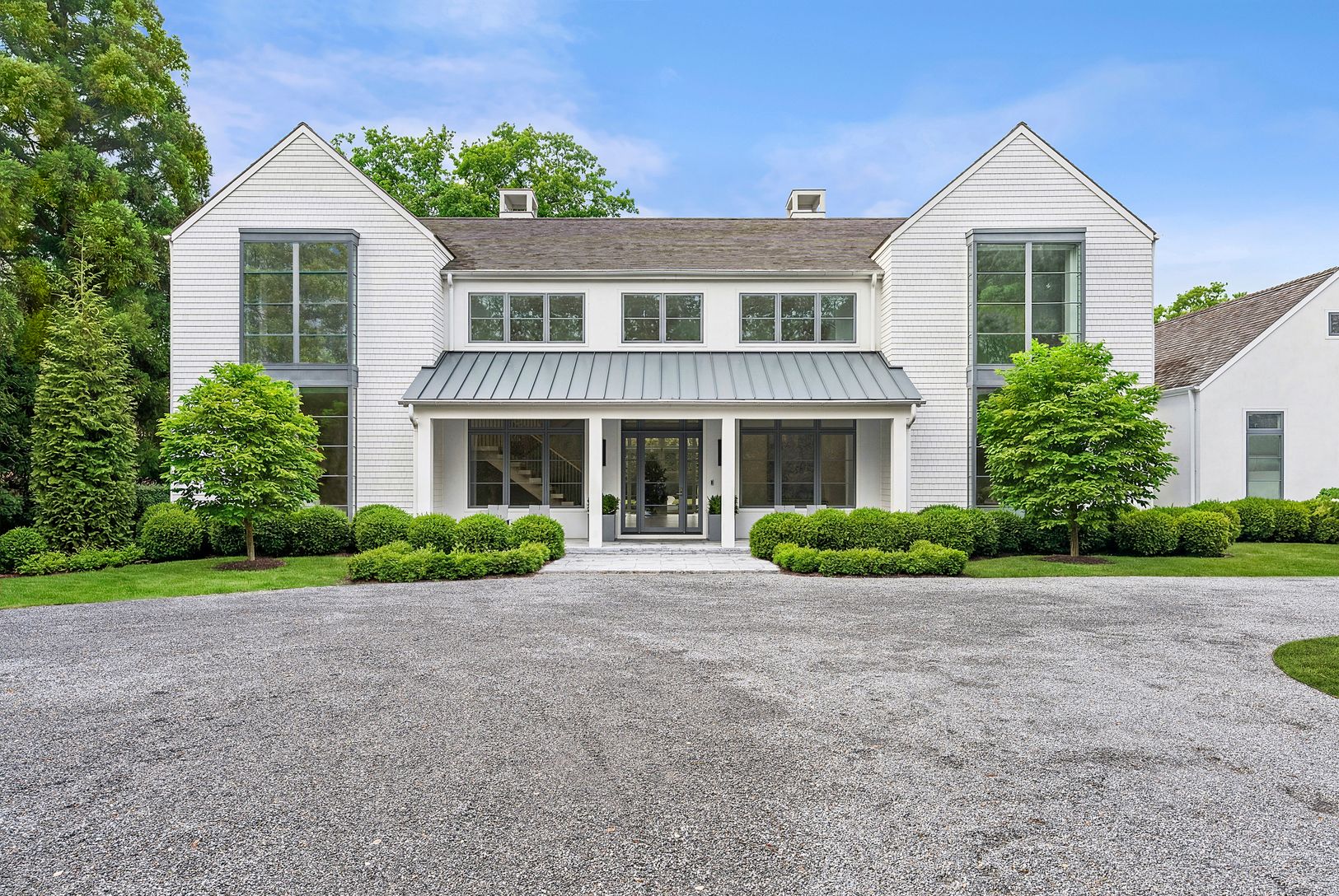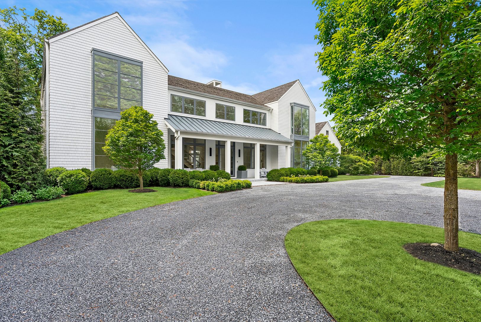 Set behind gates on a pristine acre in Wainscott south. This newly constructed Modern offers refined luxury just moments from the ocean. Surrounded by mature specimen trees, the property delivers rare privacy, scale, and resort-style living. Spanning 9,000± square feet with 7 bedrooms, 8 full baths, and 2 powder rooms. A dramatic double-height foyer leads to sun-filled living spaces where walls of glass invite the outdoors in. The chef's ki