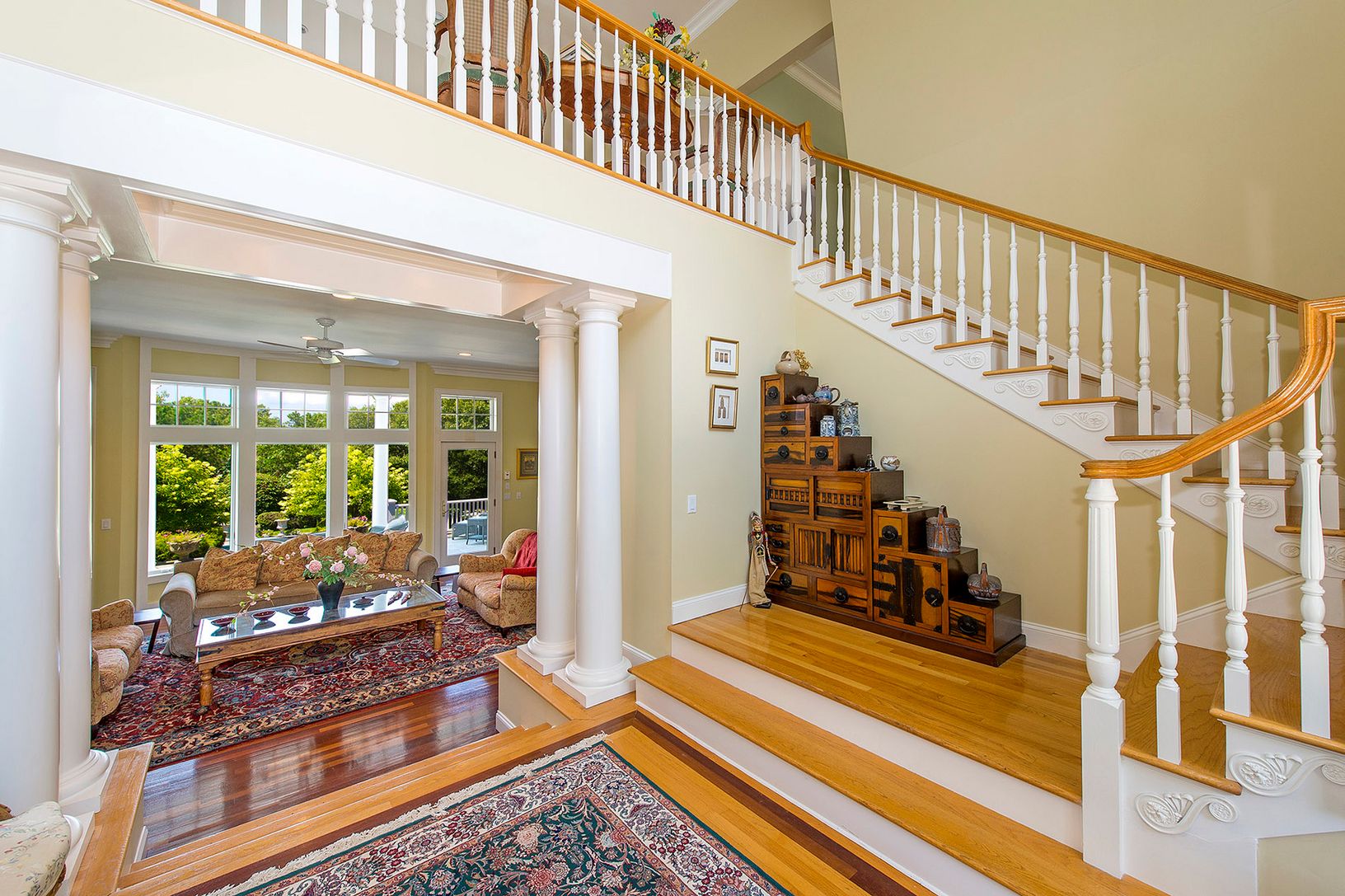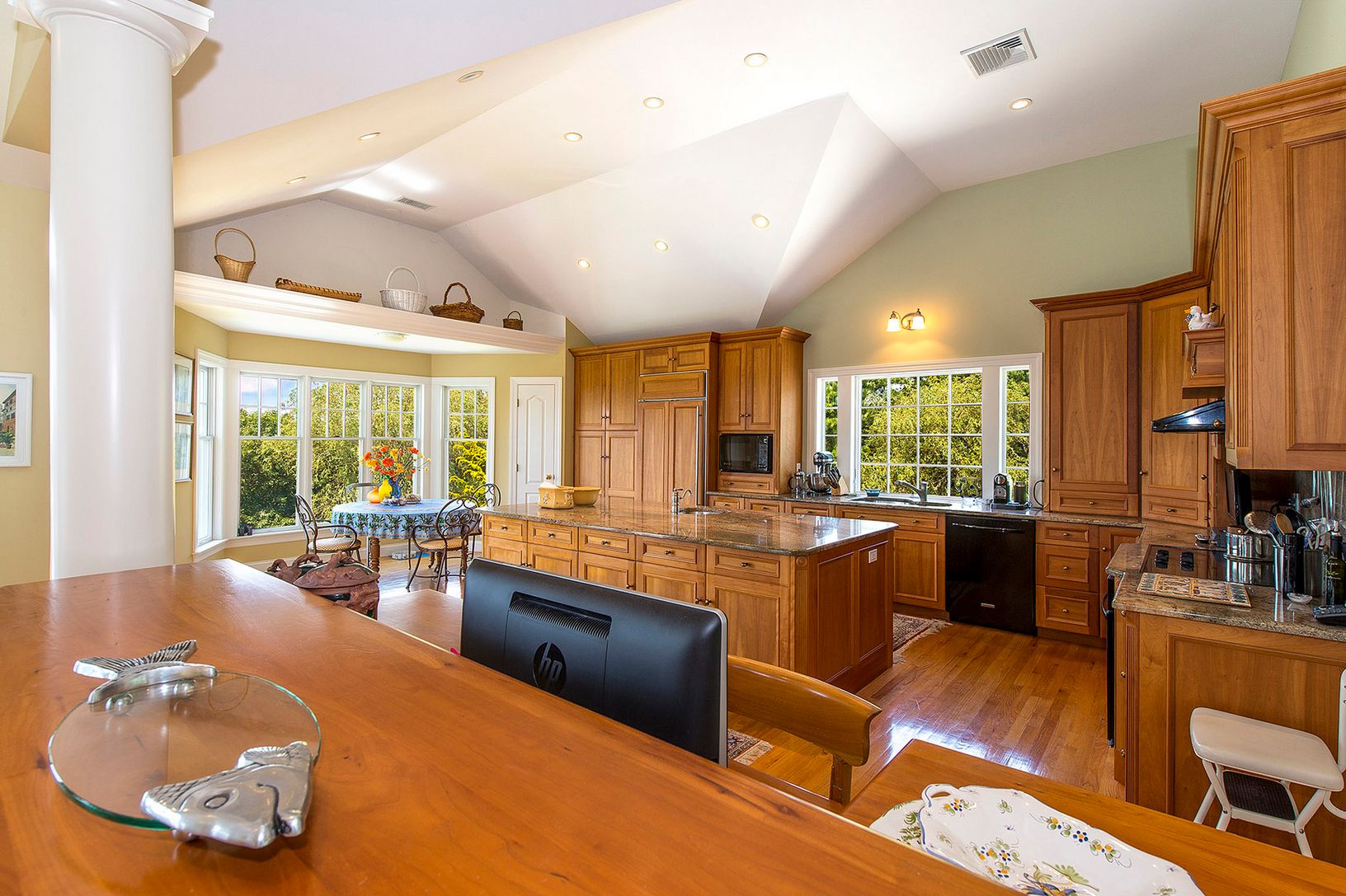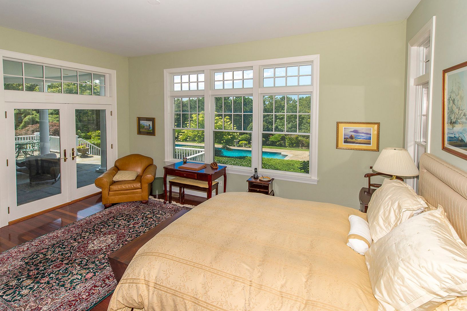 Stately Southampton traditional on 1.85 acres surrounded by 50 acres of county reserve. Enter through the double height foyer and ascend to see a magnificent 180 degree Peconic Bay view in this unique upside down construction. The upstairs boasts an open floor plan with gourmet kitchen, formal dining and great room as well as the oversized master suite. Three sets of French doors lead to a the second-story wrap-around deck providing great l