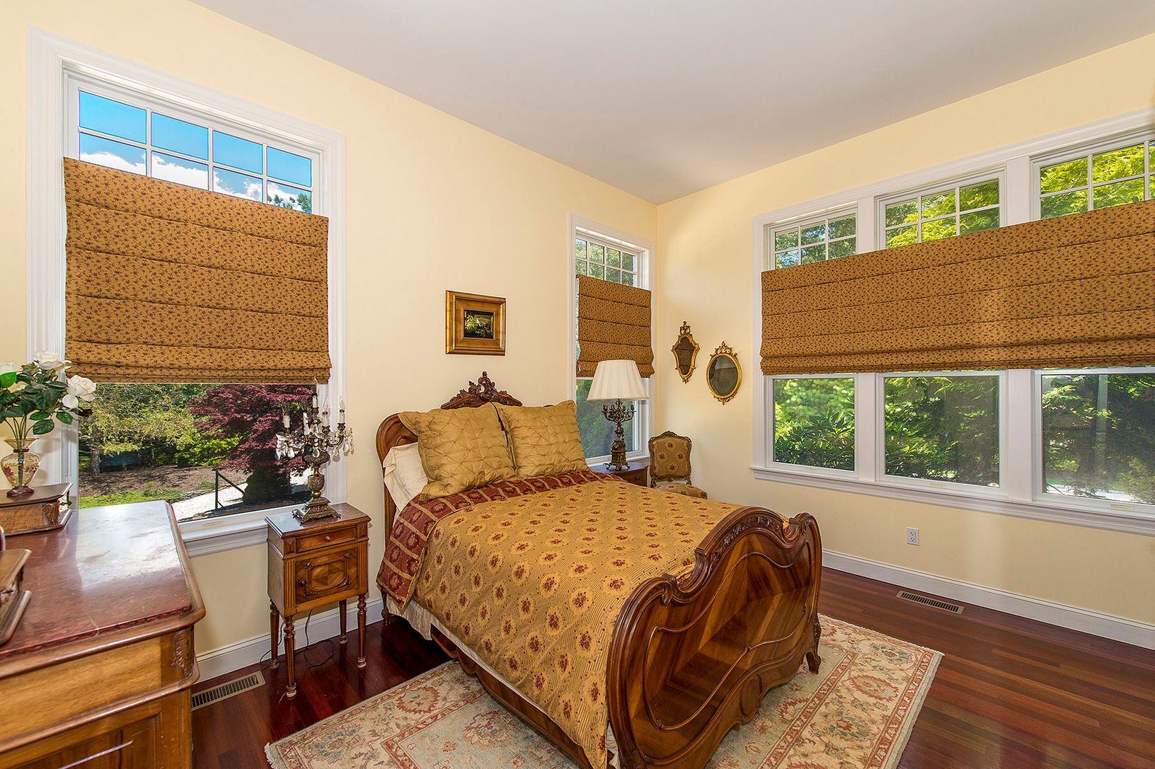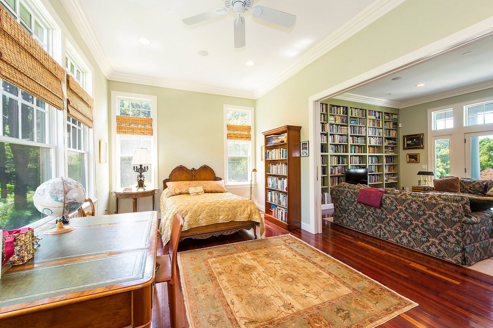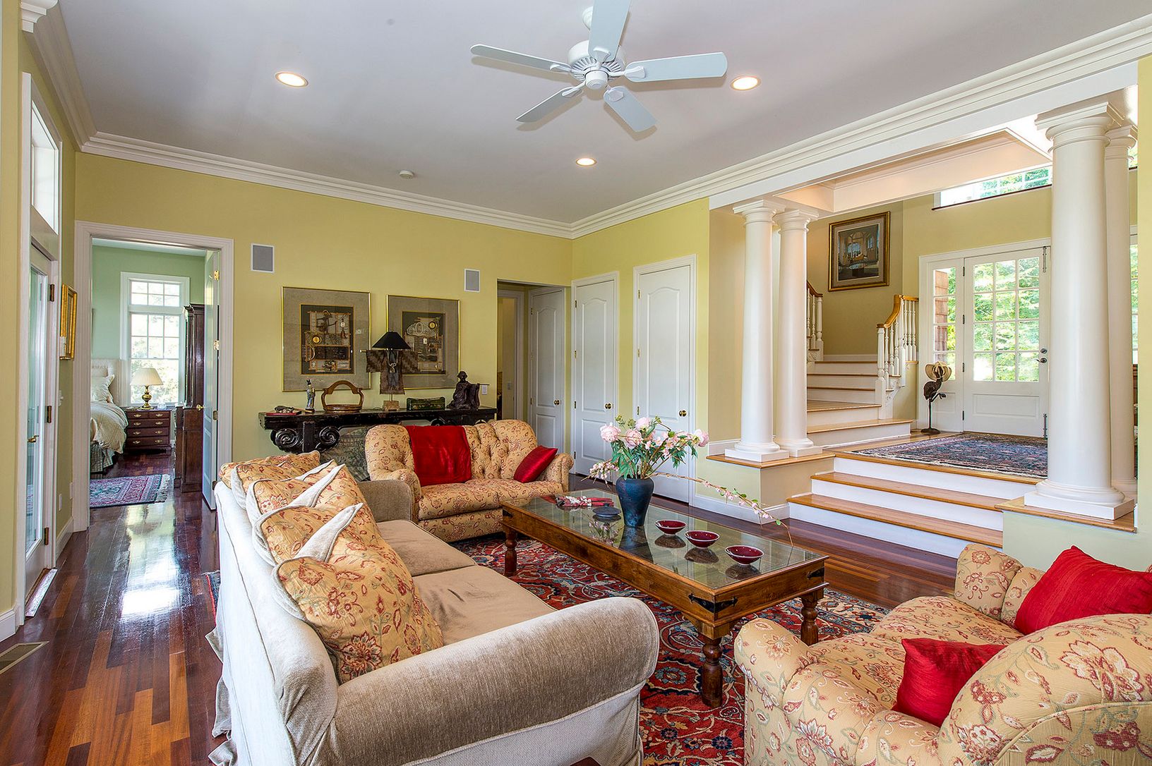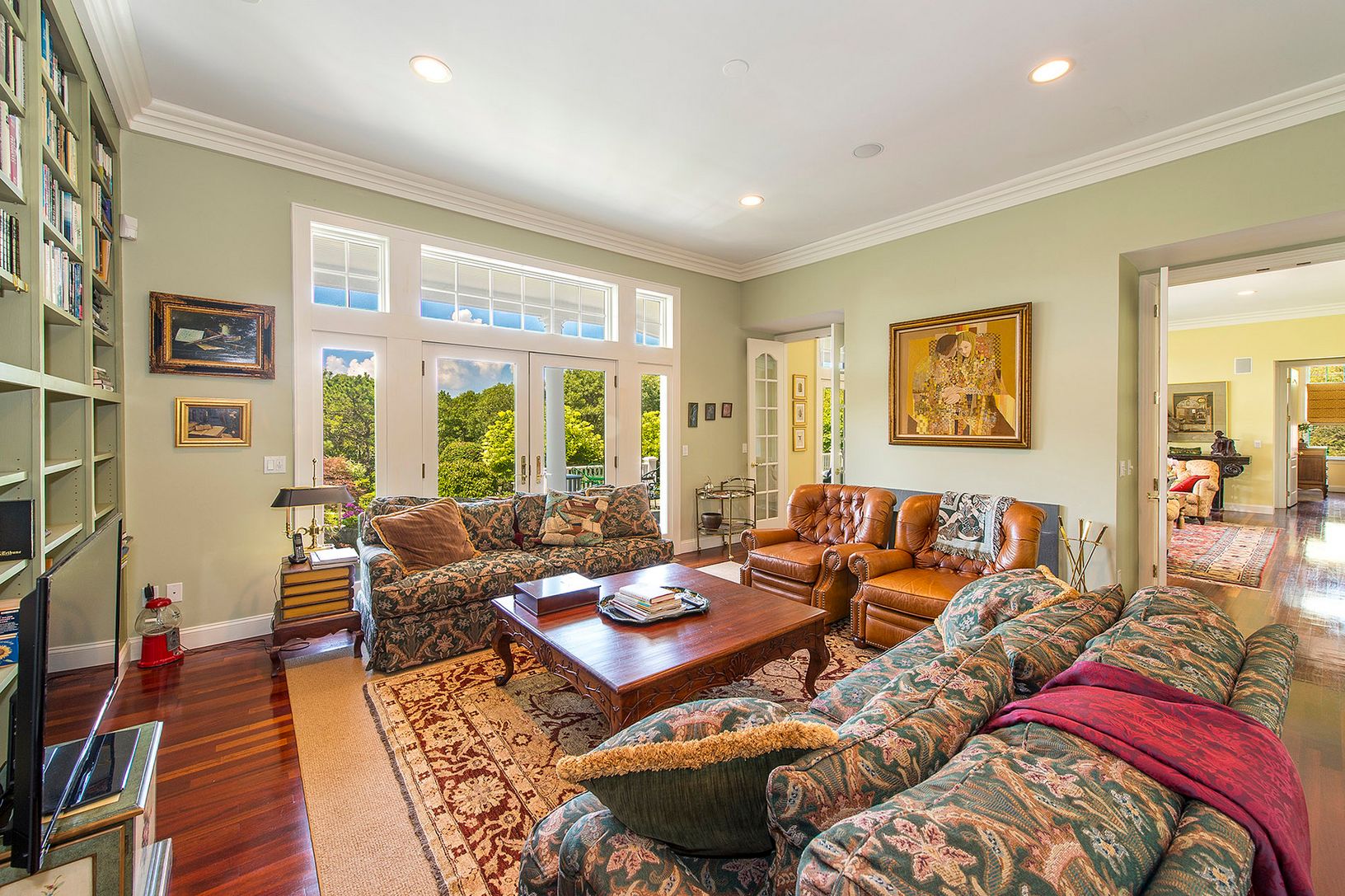 Stately Southampton traditional on 1.85 acres surrounded by 50 acres of county reserve. Enter through the double height foyer and ascend to see a magnificent 180 degree Peconic Bay view in this unique upside down construction. The upstairs boasts an open floor plan with gourmet kitchen, formal dining and great room as well as the oversized master suite. Three sets of French doors lead to a the second-story wrap-around deck providing great l