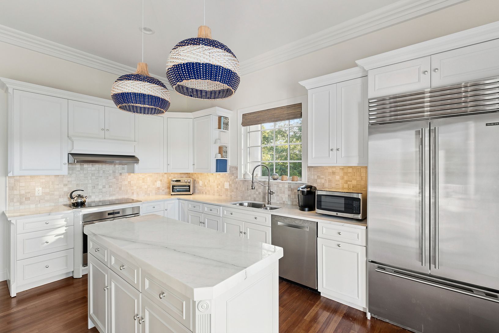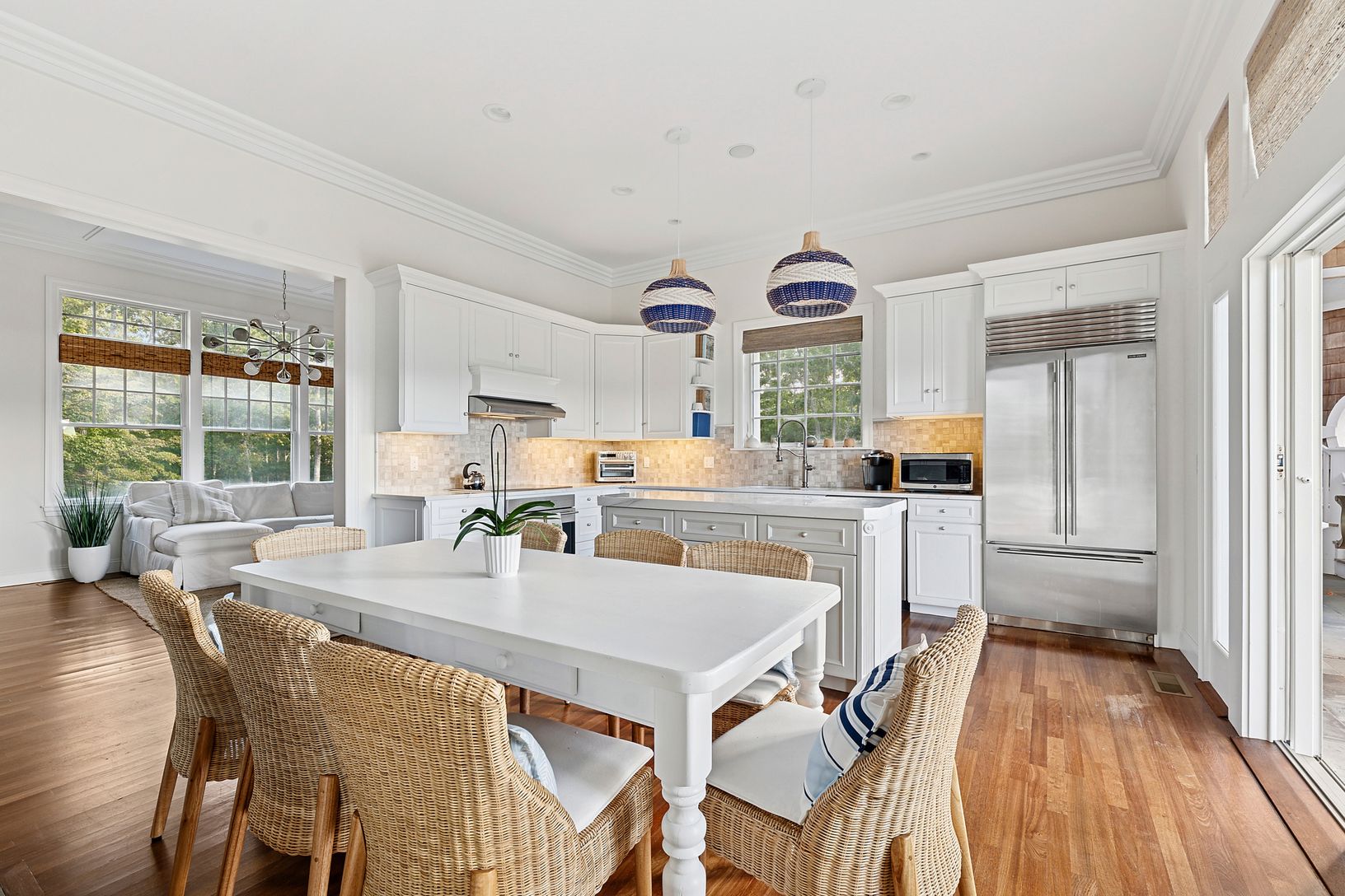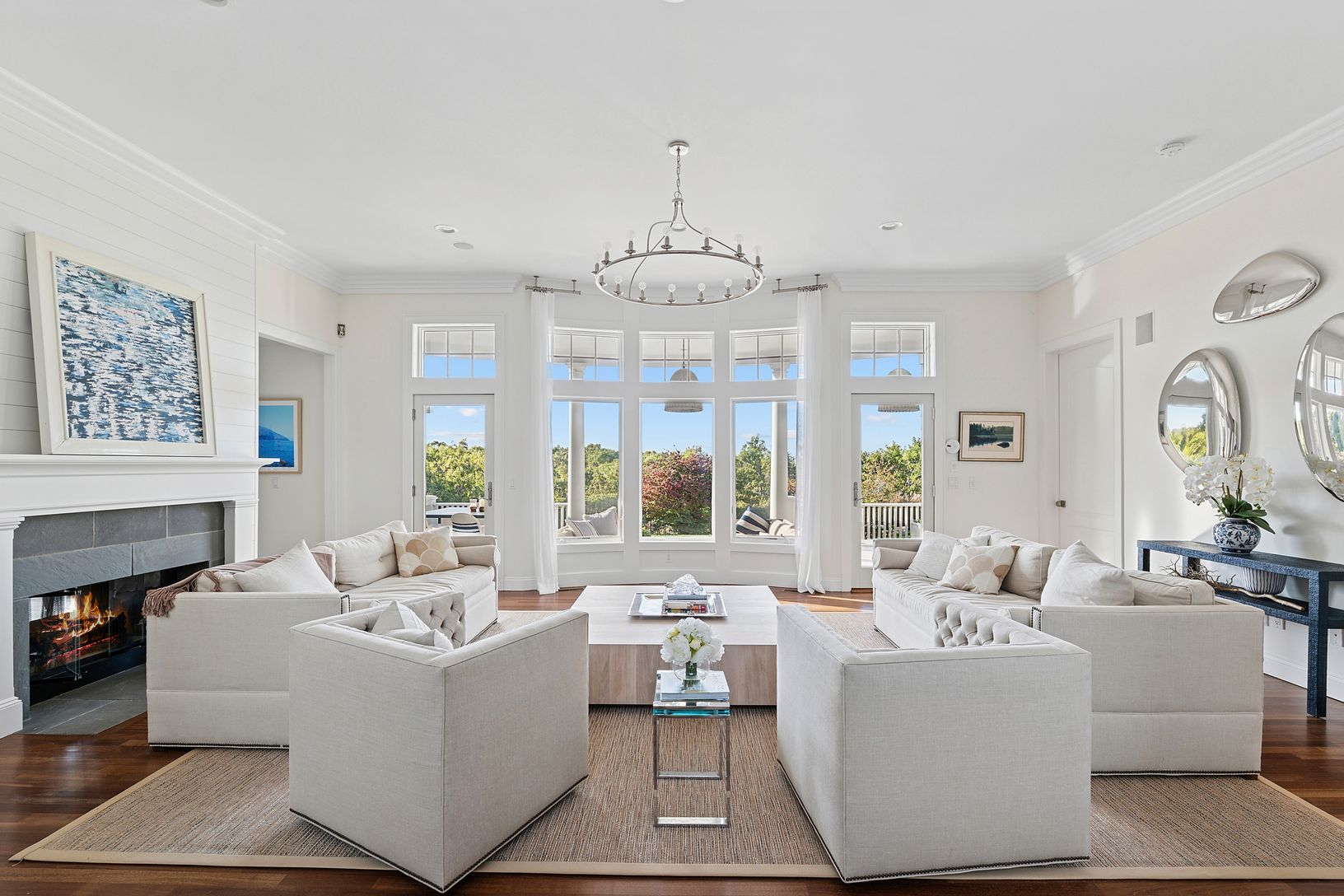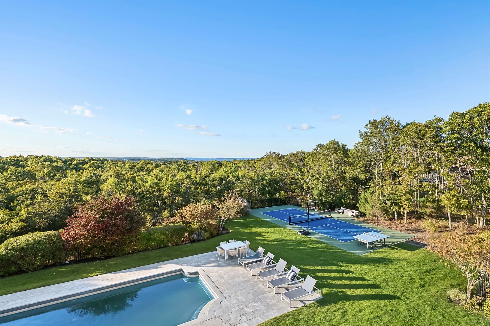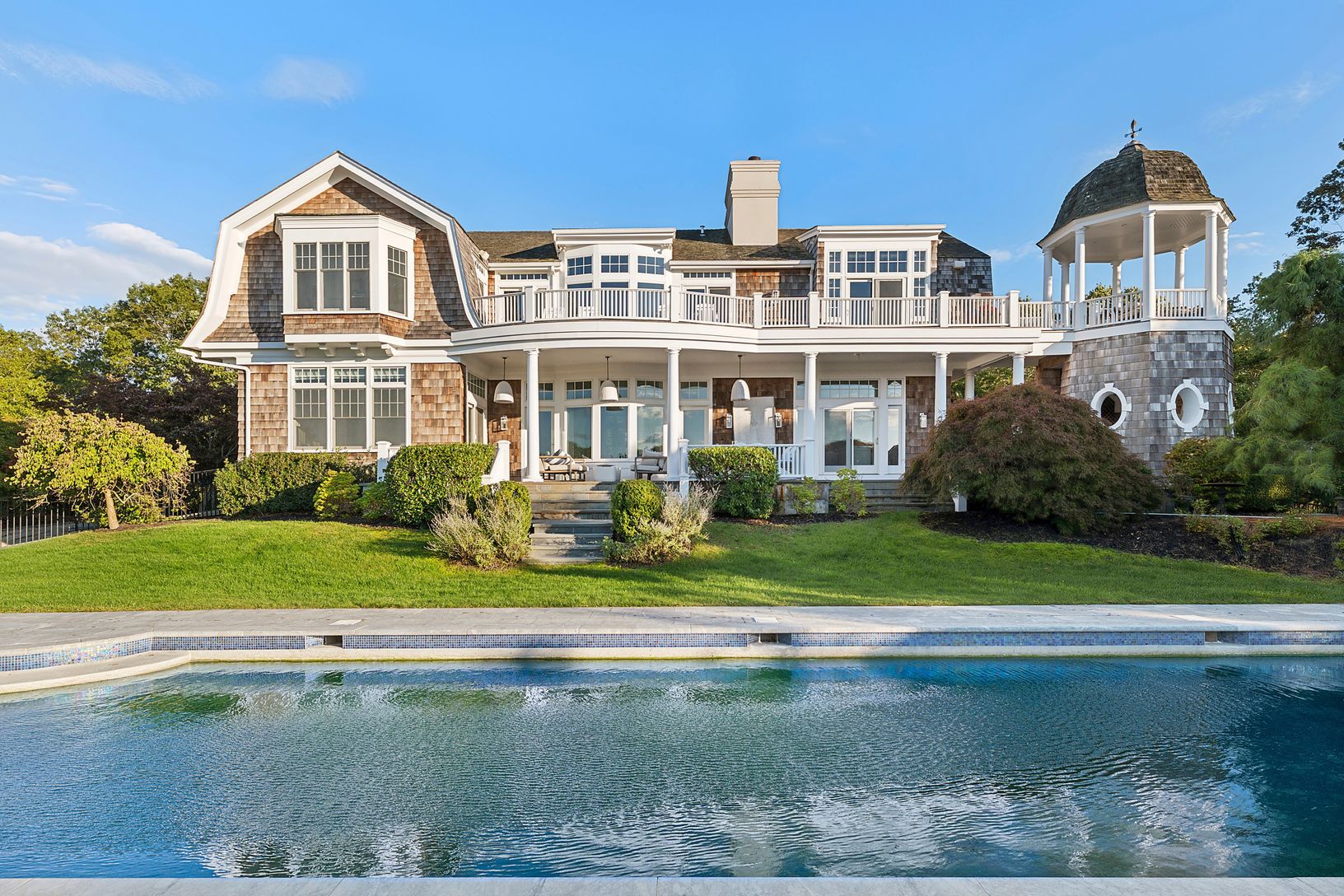 On 1.85 acres surrounded by 50 acrs of county reserve. Enter thought the double height foyer and ascend to see the magnificent 180 degree Peconic Bay view in this unique upside down construction. The upstairs boasts an open floor plan with gourmet kitchen, formal dining and great room as well as the oversized primary suite. Three sets of French doors lead to a second-story- wrap- around deck providing great light to this grand home. Magnificen