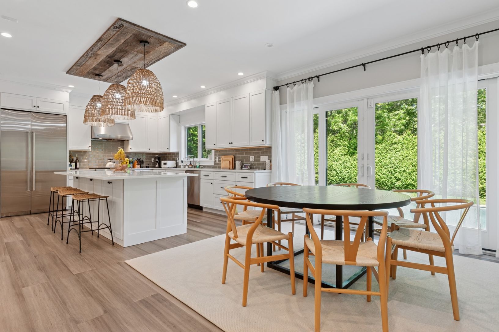 Located on a quiet cul-de-sac in the coveted East Hampton Village Fringe, 15 Wood Lot Lane is a pristine, turnkey residence built in 2018. Offering approximately 3,700 sq ft including a finished lower level, this modern home blends refined design with effortless Hamptons living. The open-concept layout features a chef's kitchen with premium Sub-Zero and Wolf appliances, sun-filled living and dining spaces, and a gas fireplace. Four generously