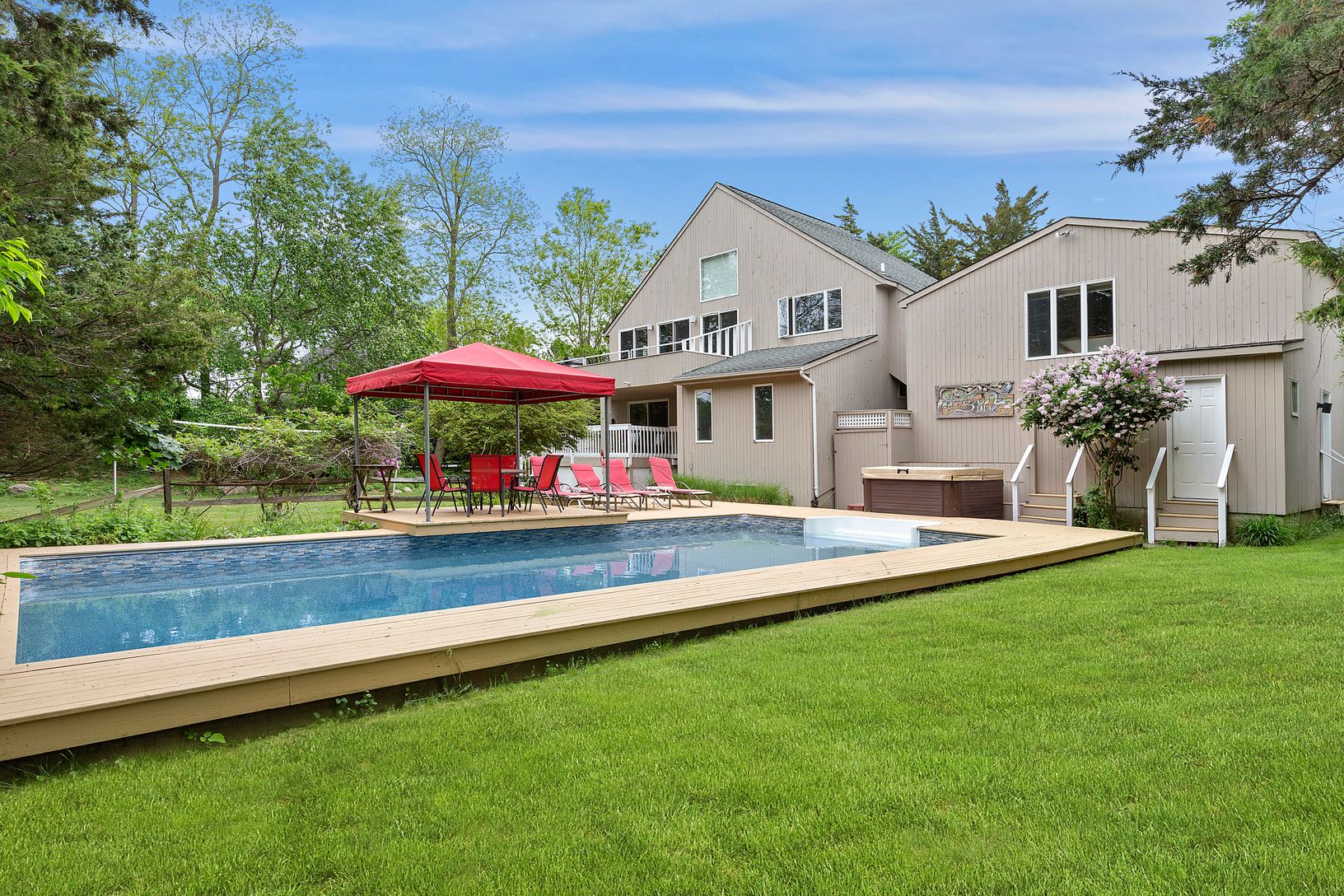 A perfect location and a perfect property in the Water Mill countryside. The three-story postmodern home is sited on 0.70± acre lot among the bucolic farm fields of Water Mill North. Deerfield Road is a picturesque lane by the gorgeous Mill Pond, a scenic setting convenient to Water Mill, Southampton, Bridgehampton, and Sag Harbor villages as well as ocean beaches including Flying Point, Ocean Road Beach, and not too far from Sagg Main Ocean B