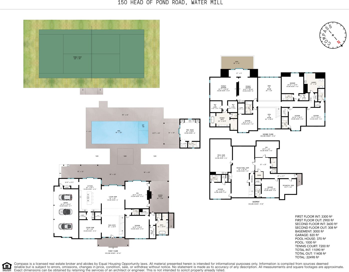 Introducing stunning new construction at 150 Head of Pond Road in Water Mill. This gated property is set on a private road on 2.27 acres of open land and is a newly completed, ready to move in, classically designed 8-bedroom residence is designed with both comfort and aesthetics in mind and represents a wonderful example of modern construction. There is 11,090+/- square feet of living space on three levels. Walk in to a dramatic, soaring entry