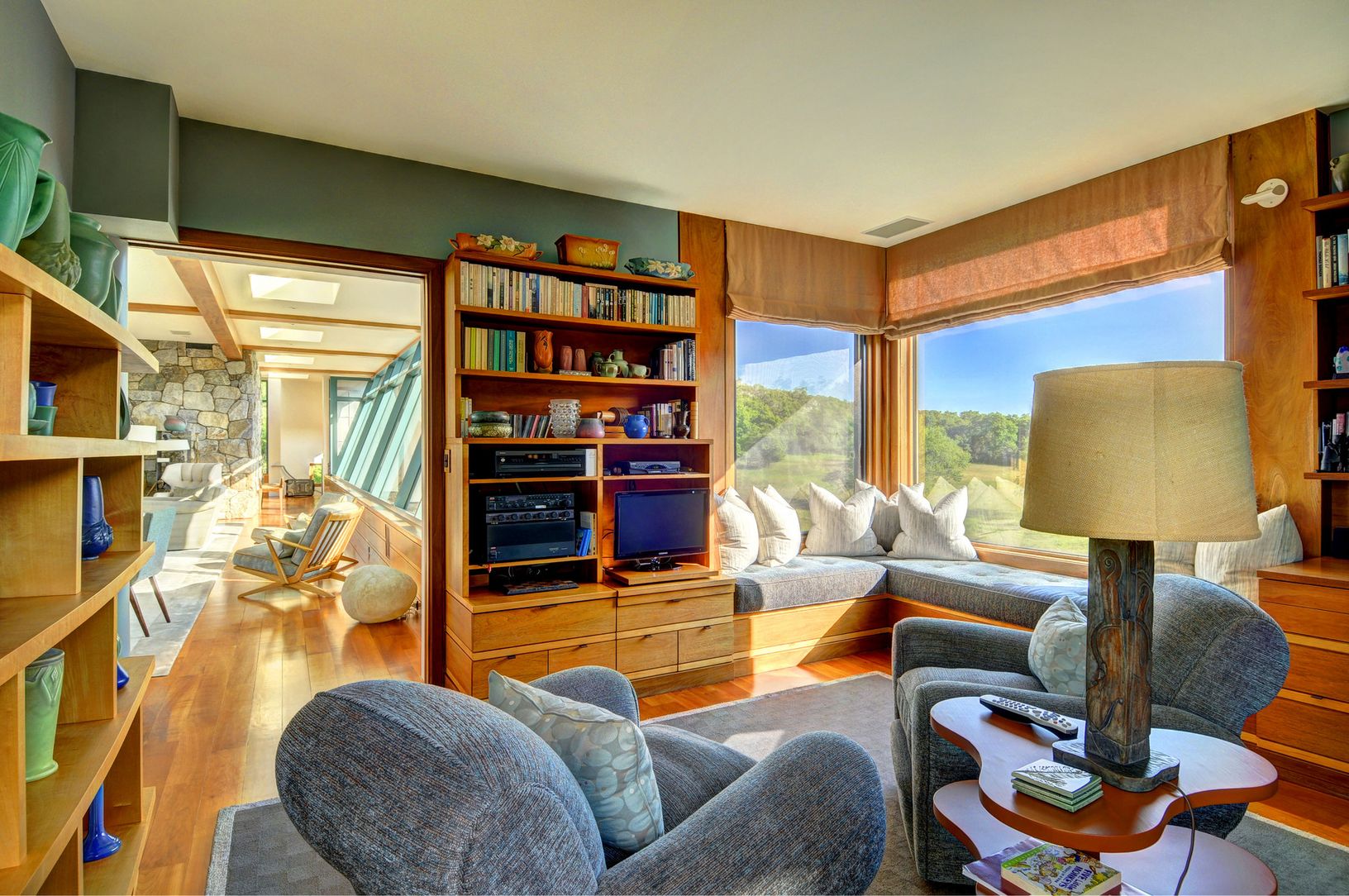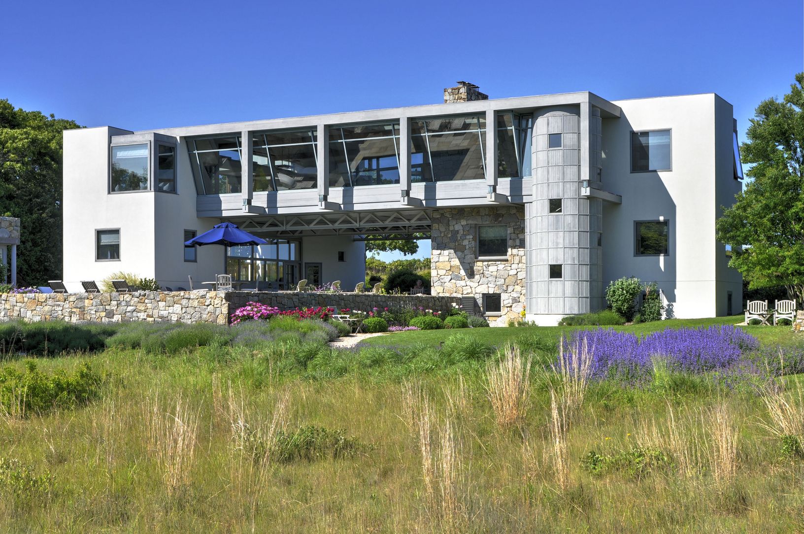 Rental Registry #19-597. This Robert Barnes design is a modern bayfront masterpiece and is nestled in the East Hampton dunes where they meet Amagansett north with sweeping open bay views and private beach access. This "castle by the bay" is sited on 1.25 acre parcel yet is surrounded by a 10+ acre protected meadow on 2 sides offering spectacular views that seem to go on forever. The house's long, rectangular glass walled living room and din