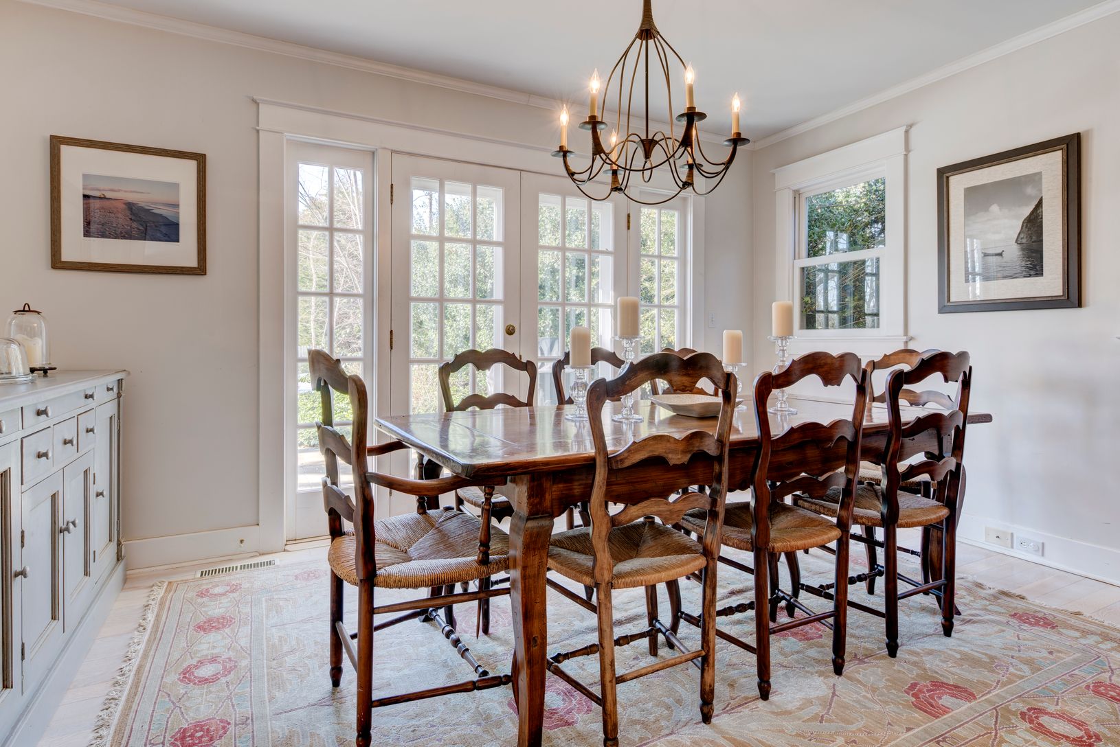 This charming 1920s traditional residence in the heart of Bridgehampton offers the perfect combination of historic charm and modern luxury. Upon entering, you are greeted by a warm, welcoming living room with wood burning fireplace and a little nook with desk for working from home. Adjacent, the separate dining room is perfect for hosting intimate gatherings. The beautifully renovated kitchen has high end appliances and plenty of counter space