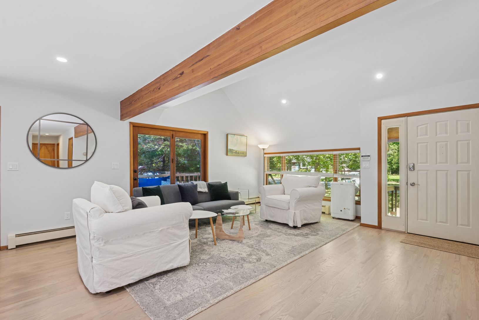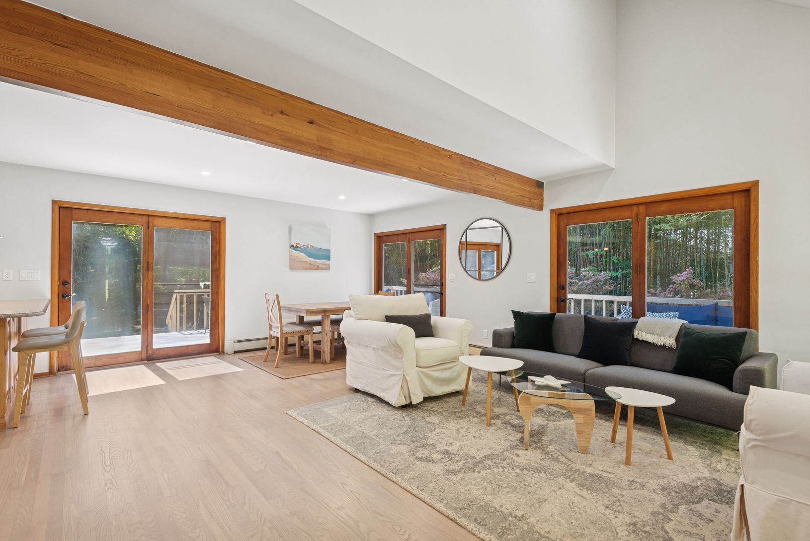 This beautifully renovated 3-bedroom, 2-bath home is located in the highly sought-after Clearwater Beach community of East Hampton. This bright and stylish retreat features modern finishes, an open floor plan, and plenty of natural light throughout. The spacious living area flows seamlessly into the updated kitchen with stainless steel appliances and granite countertops, perfect for entertaining or relaxed coastal living. Step outside to a lar