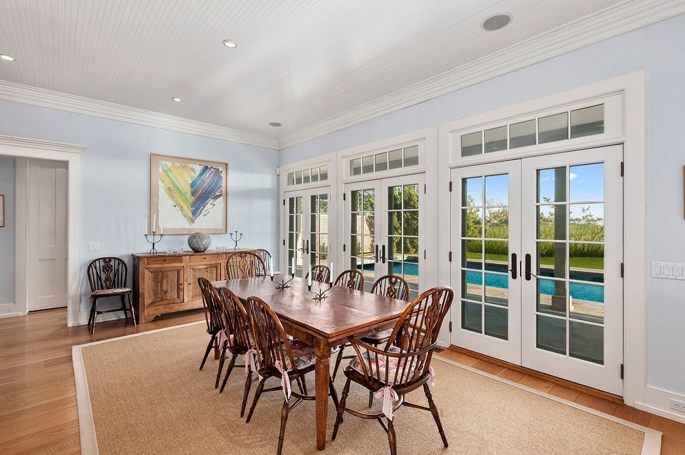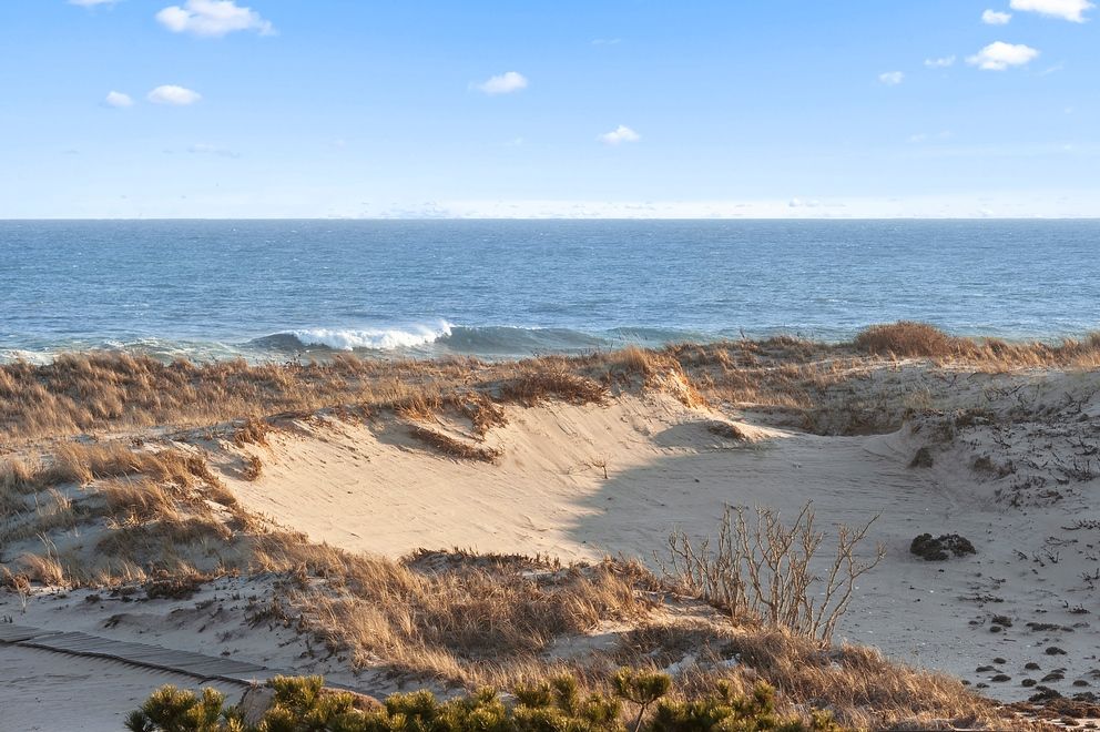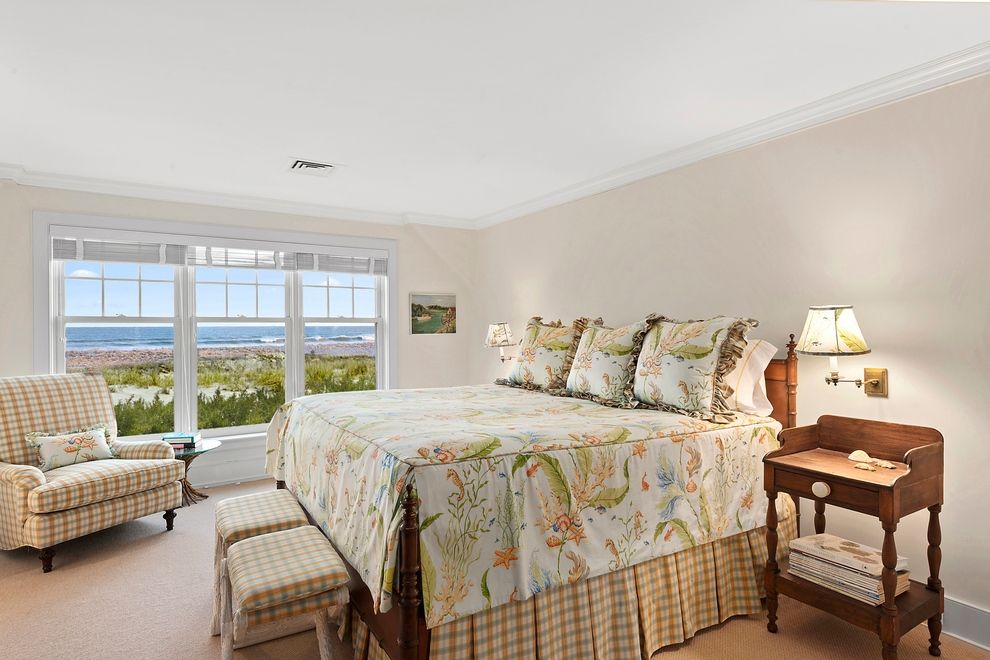 A classic shingle style "beach house" has just come to market on world renowned Meadow Lane. The late architect Francis Fleetwood, designed this home for casual seaside living while taking advantage of the first and second floor ocean views as well as sweeping unobstructed Shinnecock Bay views. The home offers an open floor plan with rooms boasting French doors all of which open out to the Oceanside bluestone terrace, swimming pool and the pr