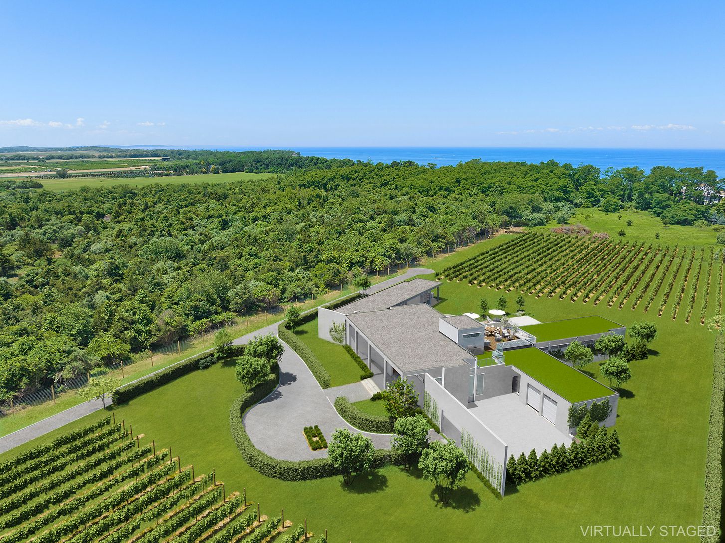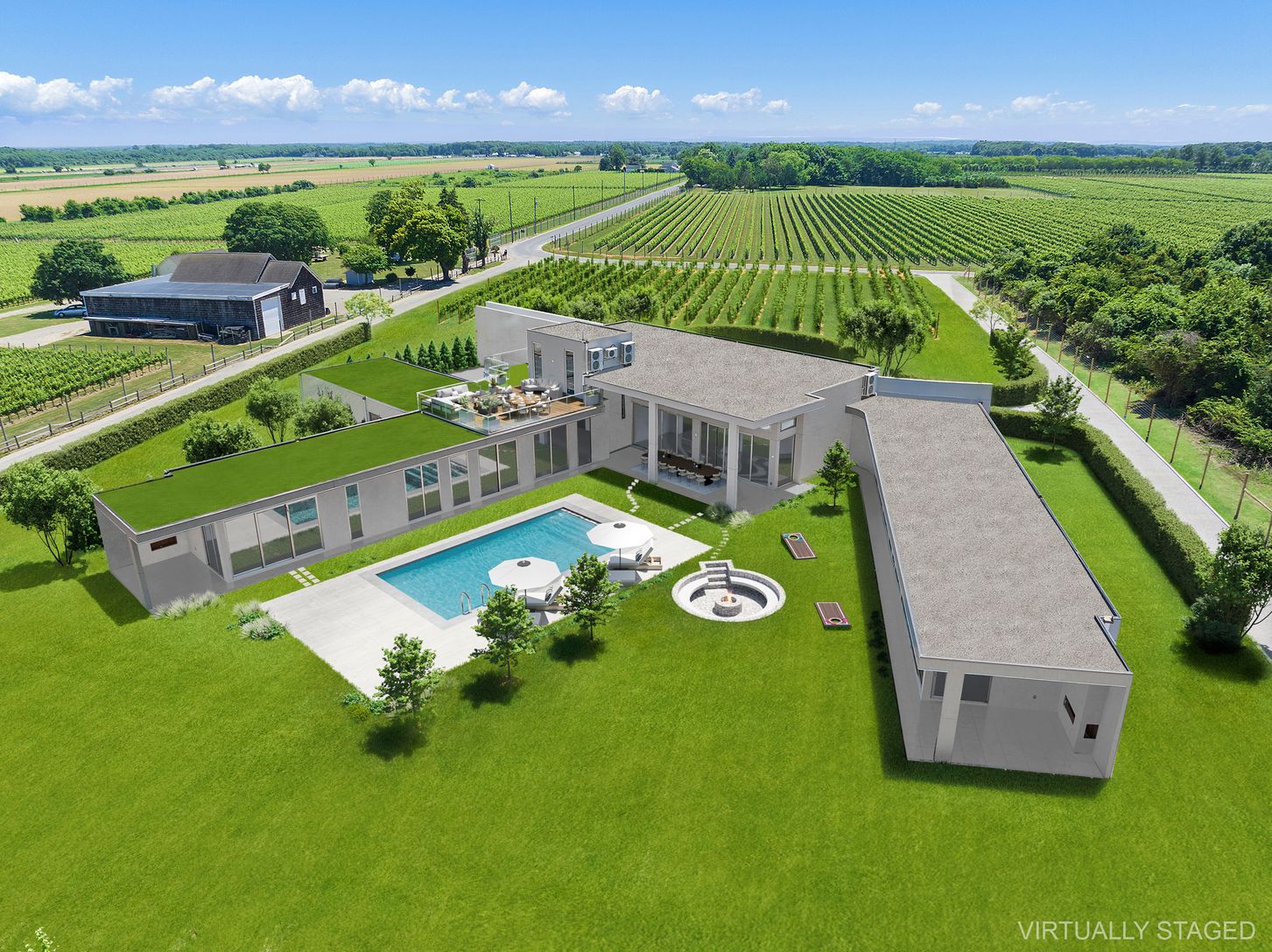 Ultra Modern Meets The North Fork In This Amazing 7,700 Square Foot (includes garage space) Sun Drenched Home By Sprecht Architects Located On Oregon Road Where It Is Nestled Among Vineyards. Featuring 14' Ceiling height, 12' High Windows & Sliders Throughout, 6 Ensuite Bedrooms, Spacious Open Layout, Ideal For Entertaining, Gunite Pool, Custom Sunken Fire-Pit, Rooftop Lounge With Outdoor Kitchen/Wetbar. State Of The Art Modern, High End A