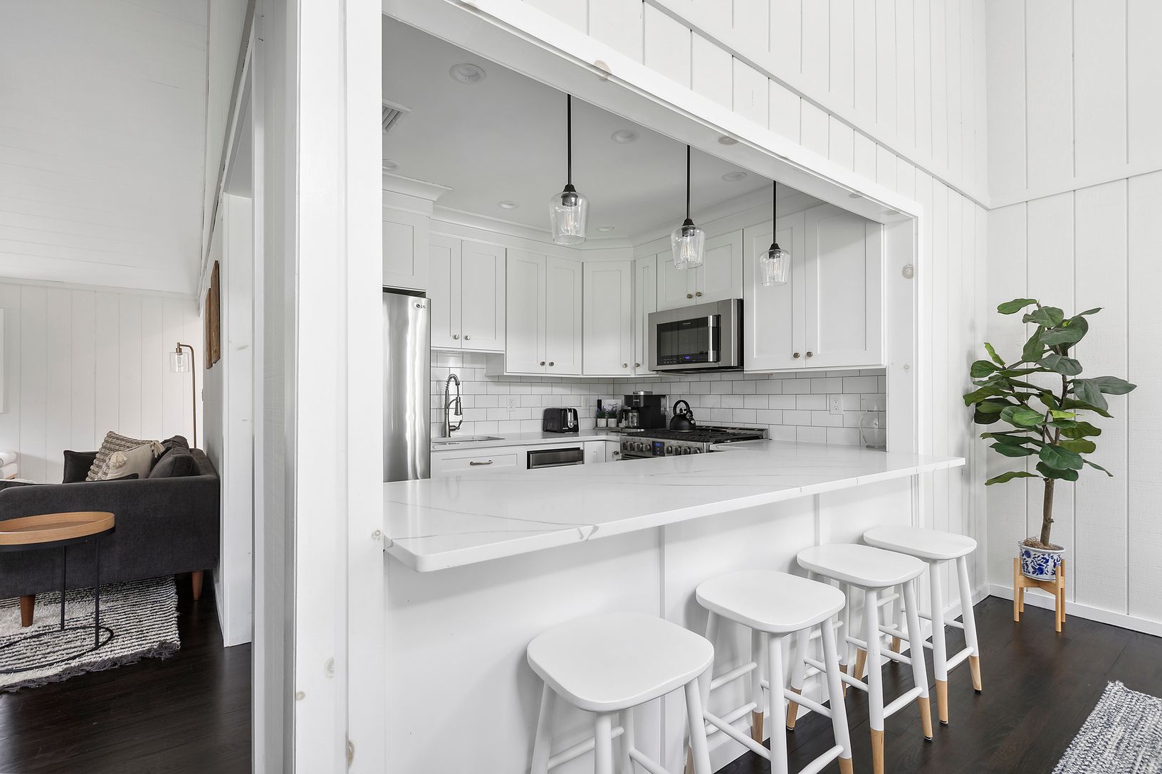 Just one house off the water, this immaculate 3-bedroom, 2-bath home offers the perfect blend of luxury and coastal charm. The living room and kitchen feature soaring cathedral ceilings, creating an airy, open atmosphere, complemented by a tall brick fireplace for cozy evenings by the fire.